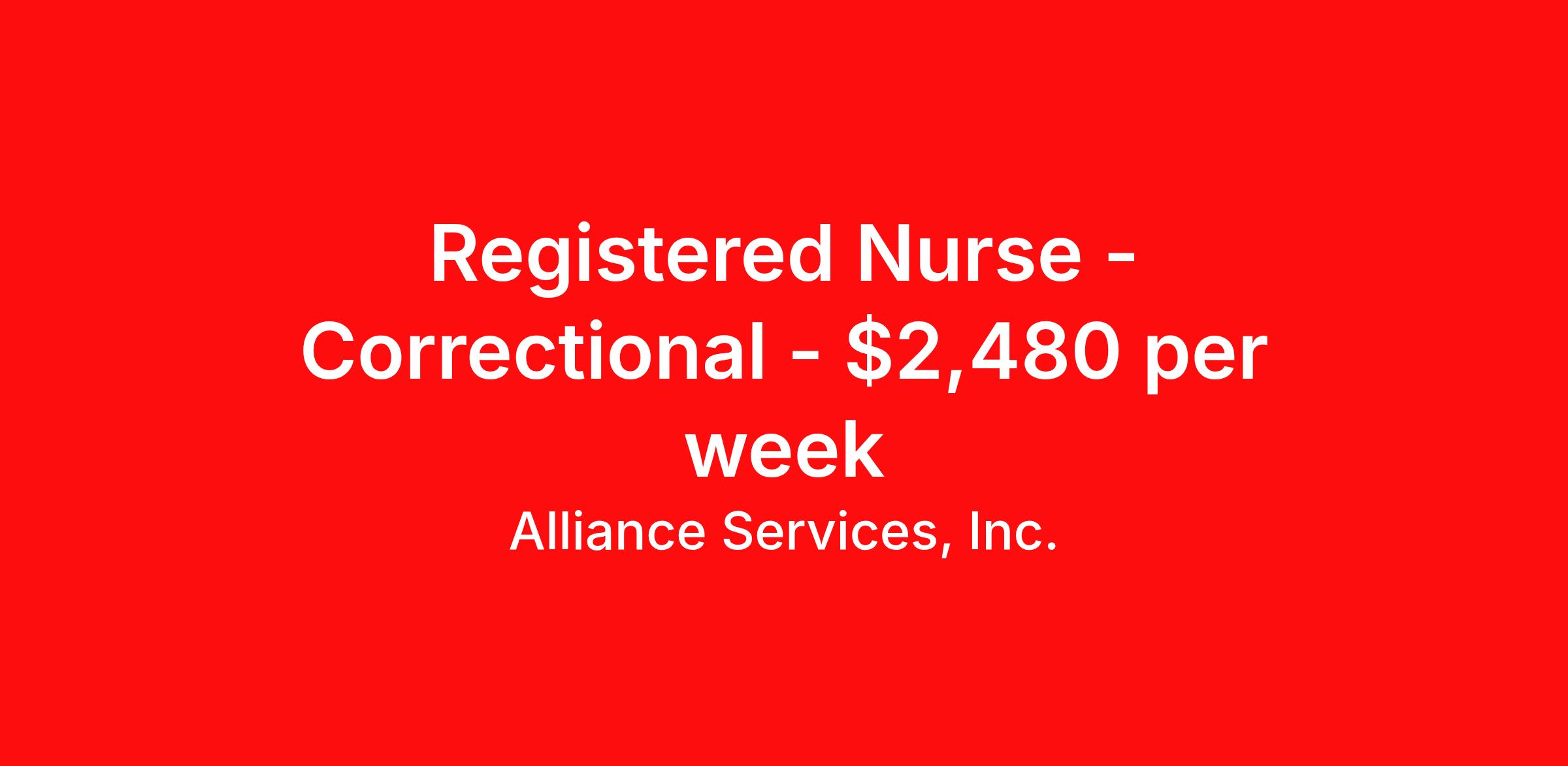 Alliance Services, Inc. is seeking a travel nurse Correctional for a travel nursing job in Portage, Wisconsin. Job Description & Requirements Specialty: Correctional Discipline: RN Start Date: 04/20/2026 Duration: 25 weeks 40 hours per week Shift: 8 hours, days Employment Type: Travel Estimated Gross Weekly Pay: $ 2480.00 Opportunity: RN - Corrections Job Details: • Work 36 hours per week • 12-hour day shifts from 6:00 AM to 6:30 PM • Every other weekend and holiday required • Provide nursing care in a correctional facility setting • Must be comfortable working in a secure environment with incarcerated individuals • Deliver comprehensive medical care including medication administration, wound care, and health assessments • Document patient care according to correctional healthcare standards • Collaborate with medical team and correctional staff to ensure safe patient care delivery Facility: This correctional healthcare facility provides comprehensive medical services to incarcerated individuals, maintaining high standards of care while operating within a secure environment. The facility focuses on delivering quality healthcare services including routine medical care, emergency response, and specialized treatment programs. The organization emphasizes professional nursing practice while ensuring compliance with correctional healthcare regulations and safety protocols. Location: Portage, WI Portage offers a peaceful small-town atmosphere in south-central Wisconsin, situated along the Wisconsin River with beautiful natural surroundings and outdoor recreation opportunities. The area provides an excellent work-life balance with access to lakes, parks, and trails, while being conveniently located between Madison and Wisconsin Dells for additional amenities and entertainment options. About Alliance Services: Alliance services, Inc. wants you on our team! As a nurse-founded, nurse-owned, minority-owned travel-nurse agency, it is our first priroity to ensure that we offer top pay and an outstanding employee experience from start to finish. Making sure that you receive the most generous pay package possible, and a career-enhancing clinical experience at the destination of your choice. Our dedicated recruiters are committed to providing excellent service to you and foster a greater sense of belonging as not just an employee, but as a valued member of our extended family. Industry Leading Benefits: Weekly pay via direct deposit and accessible payroll support 401k with 100% matching Monthly reimbursement for health insurance Maximum non-tax stipends available including lodging, meals and incidentals 24/7 On-call support Alliance Services, Inc. Job ID 60539694. Pay package is based on 8 hour shifts and 40 hours per week (subject to confirmation) with tax-free stipend amount to be determined. About Alliance Services, Inc. Alliance Services is a woman-owned, minority-owned, nurse-owned, and veteran-owned healthcare staffing agency headquartered in West Bend, serving Milwaukee, Southeast WI, and other areas in the Midwest and across the country. Our company was founded in 2000 by a U.S. Army veteran and Registered Nurse determined to provide cost-effective staffing services to healthcare systems and offer competitive pay, flexibility, and outstanding benefits to her fellow nurses. Since then, Alliance has grown exponentially. Today, we service many of Wisconsin’s largest healthcare systems and employ hundreds of highly skilled Nurse Practitioners, Registered Nurses, Licensed Practical Nurses, Certified Nursing Assistants, Medical Assistants, CBRF-certified professionals, and many more. We’re not just an RN job placement agency or a travel RN company – we’re a true partner to the candidates we work with, as well as the hospitals and care facilities we staff for. Our mission is to redefine healthcare staffing by fostering a greater sense of belonging. At Alliance, you’re not just a number, you’re a valued member of our extended family. We’re different from your average healthcare employment agency. Our company’s core values – which we live and work by every day – help set us apart. ACCOUNTABILITY: We take ownership of our actions, decisions, and commitments. By holding ourselves and our professionals accountable, we not only ensure the highest standards in healthcare staffing, but also build a foundation of trust with our professionals and healthcare partners. HONESTY & COMMUNICATION: We prioritize transparent and open lines of communication to seamlessly connect healthcare professionals with assignments that match their skill sets and preferences. By fostering clear and timely exchanges, we enhance collaboration, build trust, and ensure the best possible outcomes for all parties involved. COMPASSION: Compassion is the heartbeat of our service. We approach every interaction with kindness, understanding and genuine care. This inspires our healthcare professionals to do the same, fostering a patient-centered and ethical approach to healthcare. JOY IN SERVICE: Our dedicated team takes care of the administrative aspects so our healthcare professionals and facilities can focus on what they do best: providing exceptional patient care and finding clinical fulfillment and joy in their work. Our professionals love what they do. Benefits Medical benefits Dental benefits Vision benefits Weekly pay Referral bonus