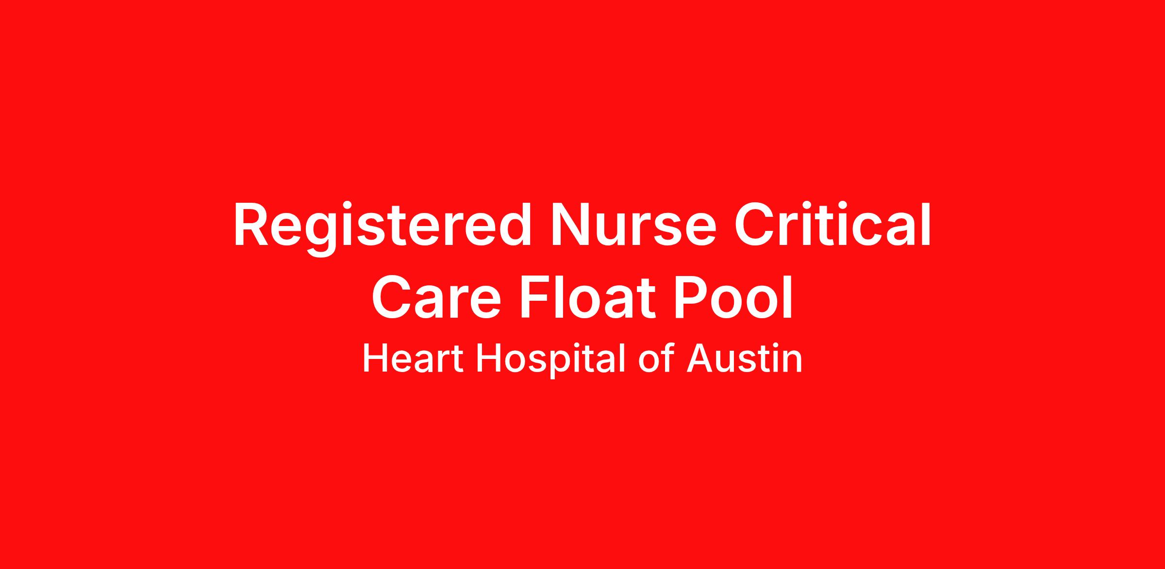 Stroke response times nearly half of the national average. Cutting-edge SPOT Technology that detects sepsis earlier than the human eye. An Enhanced Surgical Recovery program that reduces opioid prescriptions and post-surgical readmissions. As a national learning health system, we're transforming care delivery, advancing clinical outcomes, and empowering our nursing teams in a collaborative effort to give people a healthier tomorrow. Join us! Job Summary and Qualifications As a Registered Nurse in the Critical Care Facility Float Pool, you will be responsible for performing patient assessments, developing a plan of care, implementing and evaluating care. You will be responsible for directing, monitoring and evaluating the care delegated to non-licensed personnel on the team. · You will perform and document patient assessments at the time of the admission · You will create a plan of care, including discharge plans, revise the plans based on the patients’ response to treatment and regularly evaluate plans for effectiveness · You will document the outcomes of nursing interventions and patient responses · You will provide educational materials to patients and families on care and treatments · You will administer medications and complete treatments according to hospital policy · You will perform venipuncture, administer and maintain IV fluids and IV medications · You will review all new physician orders, ensure that orders are carried out and documented correctly, and verify that other departments are notified of orders and services · You will notify the Charge Nurse and/or physician of changes in patient status · You will provide accurate and relevant patient information reports to the on-coming shift to ensure continuity of care Experience · 2 years of nursing experience in an Intensive Care Unit and/or Emergency Department Education · Associates Degree in Nursing (ADN) from accredited Nursing program, or Bachelor of Science in Nursing (preferred) License and Certifications · Current State of Texas Registered Nurse license or Compact Registered Nursing License. If Compact License Texas license must be obtained within 90 days of hire · Basic Life Support (BLS) required as per St. David’s Healthcare policy · Advanced Cardiovascular Life Support (ACLS) certification required as per St. David’s Healthcare policy – within 12 months of hire · National Institutes of Health Stroke Scale (NIHSS) certification required per St. David’s Healthcare Policy – within 90 days of hire Benefits Heart Hospital of Austin, offers a total rewards package that supports the health, life, career and retirement of our colleagues. The available plans and programs include: Comprehensive benefits for medical, prescription drug, dental, vision, behavioral health and telemedicine services Wellbeing support, including free counseling and referral services Time away from work programs for paid time off, paid family leave, long- and short-term disability coverage and leaves of absence Savings and retirement resources , including a 401(k) Plan with a 100% match on 3% to 9% of pay (based on years of service), Employee Stock Purchase Plan, flexible spending accounts, preferred banking partnerships, retirement readiness tools, rollover support and financial wellbeing counseling Education support through tuition assistance, student loan assistance, certification support, dependent scholarships and a partnership with Galen College of Nursing Additional benefits for fertility and family building, adoption assistance, life insurance, supplemental health protection plans, auto and home insurance, legal counseling, identity theft protection and consumer discounts Learn more about Employee Benefits Note: Eligibility for benefits may vary by location. Heart Hospital of Austin , a proud member of St. David's HealthCare, stands as a leading 72-bed facility renowned for its exceptional performance in cardiovascular care. Specializing in the diagnosis and treatment of cardiovascular disease, the hospital provides a comprehensive 24-hour emergency department to address urgent health needs. With innovative programs like the Executive Wellness Program and the Advanced Heart Failure Program, including cutting-edge therapies such as extracorporeal membrane oxygenation (ECMO) and the left ventricular assist device (LVAD), patients receive world-class treatment. Boasting six operating rooms—three of which are hybrid—alongside three catheterization labs and expert electrophysiology services, Heart Hospital of Austin is equipped to handle complex cardiovascular cases effectively. With an impressive track record as a 12-year recipient of Merative's (formerly PINC AI) 50 Top Cardiovascular Hospitals award and recognition from Healthgrades as Texas's No. 1 cardiac program for six consecutive years, the hospital is a beacon of excellence. Additionally, it hosts one of the largest non-academic cardiovascular research programs globally, solidifying its commitment to advancing heart health for patients everywhere. HCA Healthcare has been recognized as one of the World’s Most Ethical Companies® by the Ethisphere Institute more than ten times. In recent years, HCA Healthcare spent an estimated $3.7 billion in cost for the delivery of charitable care, uninsured discounts, and other uncompensated expenses. "The great hospitals will always put the patient and the patient's family first, and the really great institutions will provide care with warmth, compassion, and dignity for the individual."- Dr. Thomas Frist, Sr. HCA Healthcare Co-Founder Join a family that cares about every stage in your career! We are interviewing candidates for our Registered Nurse Critical Care Float Pool opening. Apply today and a member of our Talent Acquisition team will reach out. We are an equal opportunity employer. We do not discriminate on the basis of race, religion, color, national origin, gender, sexual orientation, age, marital status, vetera
