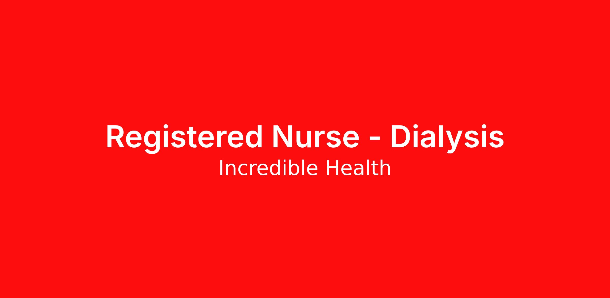 Hospitals on Incredible Health are actively hiring and accepting applications in the Easton, MD area for the following position: Registered Nurse - Dialysis. Nurses with experience in any of the following areas are strongly encouraged to apply: Acute dialysis, Catheter, graph and fistula care, Collect blood vials, Hemodialysis, or Peritoneal dialysis. Shift(s) available: day shift Job types available: full time, part time, and per diem Employer features: 401(K) & Matching, Adoption Assistance, Career Advance Program, Child Care Benefits, Family Care Benefits, Paid Parental Leave, Tuition Assistance Qualifications: RN Diploma degree or higher from an accredited school of nursing Active and unencumbered Registered Nurse license in the state of Maryland Benefits: Healthcare coverage: Medical, Dental, Vision 401K Paid Time Off Tuition Assistance
