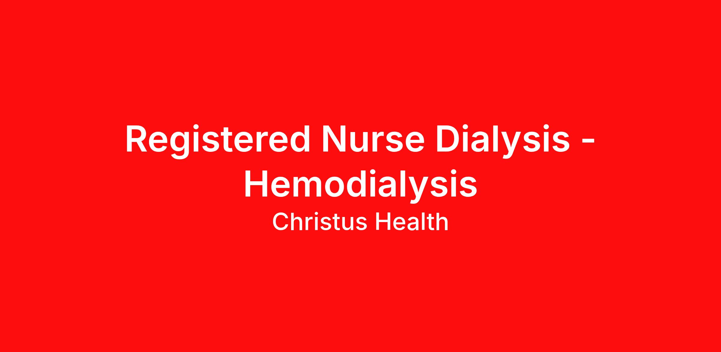 Description Summary: A Registered Professional Dialysis Nurse is responsible for the delivery of safe, high-quality patient care through the processes of assessment, diagnosis, planning, implementation, and evaluation. This role actively participates in the development and implementation of individualized care plans for each patient, providing both direct and indirect care throughout the dialysis treatment process, including pre- and post-treatment assessments and the administration of prescribed medications. In addition, the Registered Professional Dialysis Nurse ensures the safe and efficient operation of dialysis equipment and supplies in accordance with hospital and departmental policy, applying principles of stewardship to minimize waste, optimize use of resources, and preserve the integrity of supplies and equipment. Documentation in the medical record must be accurate, timely, and reflective of both patient outcomes and prudent resource management. By combining clinical excellence with responsible stewardship, this role supports the delivery of high-value, sustainable dialysis care. Responsibilities: Meets expectations of the applicable OneCHRISTUS Competencies: Leader of Self, Leader of Others, or Leader of Leaders. Demonstrates appropriate hand hygiene, use of PPE, and facility hygiene, including cleaning and disinfection of work surfaces and equipment—pre-treatment, intra-treatment, and post-treatment. Operates all available dialysis equipment and supplies based on safety, effectiveness, and cost in accordance with organizational policy to provide expected patient outcomes; documents in the medical record and records change appropriately. Follows policy and procedure in performance of water treatment procedures and testing; properly demonstrates electrolyte addition to acid concentrate per physician order. Provides documented pre- and post-dialysis nursing assessments that include but are not limited to: patient weight and fluid removal calculations, lung sounds and presence of edema, vital signs, review of current labs, and assessment and care of the dialysis access. Obtains pre- and post-dialysis lab specimens per physician order and organizational policy. Initiates, monitors, and terminates each dialysis treatment per organizational policy and procedure. Follows organizational policy and procedure in response to dialysis-related complications, emergencies, and technical issues. Nurses are required to obtain approval from leadership identified per organizational policy, for lab culture collection from dialysis catheters via the House Supervisor prior to specimen collection. Follows organizational policy and procedure in the administration of all medications during dialysis, including as-needed (PRN) medications, blood and blood products, and erythropoiesis-stimulating agents (ESAs). Ensures patients are transported in a timely manner to and from dialysis treatments to minimize delays in care and maintain treatment schedules. Nurses should transport patients themselves when necessary to prevent delays in care or to ensure timely discharge. Participates in the development and implementation of an individualized plan of care for each patient. Verifies the safety of each dialysis treatment by performing and documenting required equipment safety checks, including acid and bicarb expiration dates and chlorine/chloramine testing before every treatment and Minncare residual testing as needed. Responsible for accurately entering charges for each patient they provide care for, ensuring timely and complete documentation of billable services in accordance with departmental procedures. Manages time so that workflow is efficient and consistent. Perform other duties as assigned. Job Requirements: Education/Skills Associate's degree in nursing required Bachelor's degree in Science in Nursing (BSN) preferred Experience 1 year of dialysis experience required 1 year of acute clinical experience as a registered nurse preferred Intensive Care Unit (ICU), Critical Care Unit (CCU), Emergency Room (ER), or Medical Surgical (Med Surg) experience is preferred Clinical patient care experience in a relevant setting preferred Licenses, Registrations, or Certifications RN license in the state of employment or compact required BLS required ACLS required PALS required at CHRISTUS Children's Hospital In accordance with the CHRISTUS Health License, Certification and Registration Verification Policy, all Associates are required to obtain the required certifications for their respective positions within the designated time frame. Work Schedule: 7AM - 7PM Work Type: Full Time