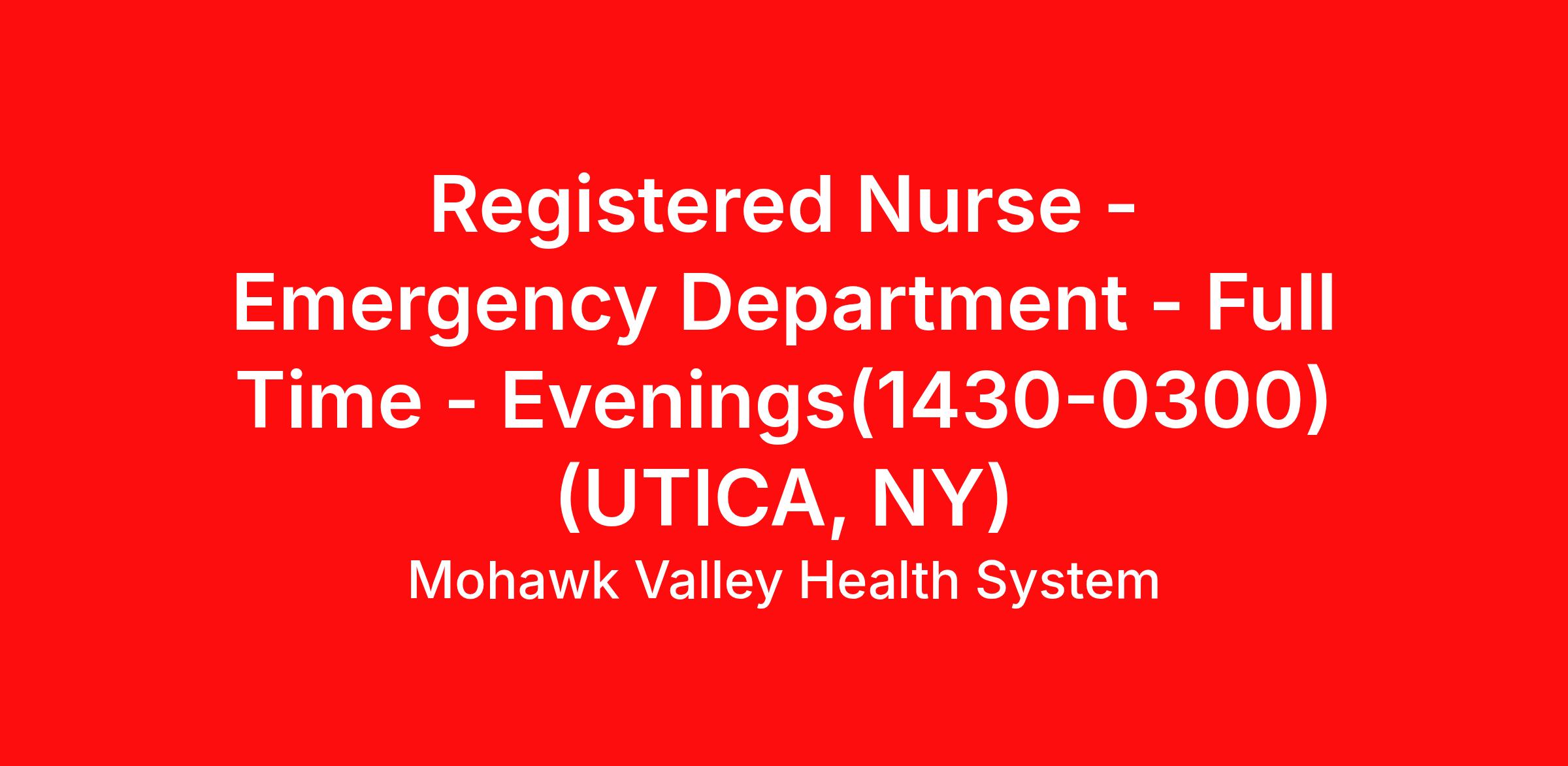 Job Summary The Registered Nurse promotes and restores patient's health by completing the nursing process: collaborating with Physicians and multidisciplinary team members: providing support to patients, visitors and families. Responsible for assessing, planning, promoting and evaluating quality patient care. The Registered Nurse provides teaching to patients, families and the public. The Registered Nurse will follow the mission, vision, values, policies and procedures of Mohawk Valley Health System. Core Job Responsibilities Identify patient care requirements establishing personal rapport with patients and families and understanding of plan of care throughout the patient’s experience. Establish a compassionate environment by providing emotional, psychological, and spiritual support to patients, friends and families. Promote patient independence by establishing patient care goals; teaching patient, friends and family to understand disease process, medications, and self-care skills, and provide time to answer questions. Assure quality care by adhering to therapeutic standards measuring health outcomes against patient care goals and standards; making or recommending adjustments to the patient’s needs. The nurse is responsible and accountable for individual nursing practice and determines the appropriate delegation of tasks consistent with the nurse's obligation to provide optimum patient care. Ensure operation of equipment by completing preventive maintenance requirements following manufacturer’s instructions troubleshooting malfunctions, calling for repairs; maintaining equipment, inventories, and evaluating equipment and techniques. Protect patients, employees by adhering to infection control policies and protocols, medication administration and controlled substance regulations. Utilize universal precautions and practice at all times. Maintain a safe and clean working environment by complying with procedures rules, and regulations; calling for assistance from health care staff. Document patient care service by charting in patients’ medical records accurately and timely in accordance with licensure and regulatory/hospital standards. Maintain continuity of care with the nursing team by communicating plan of care and follow through with multidisciplinary team ensuring that patient administration of care for all services provided are organized, planned and delivered. Maintain patient confidence and protect operations by keeping information confidential. Maintain nursing supplies inventory checking stock to determine inventory and PAR level; anticipating needs supplies; placing and expediting orders for supplies, verifying receipt of supplies; using equipment and supplies; using equipment to accomplish job. Maintain professional and technical knowledge by attending educational workshops, mandatory in-services; reviewing professional publications; establishing personal networks; participating in professional societies. The nurse participates in the advancement of the profession through contributions to practice, education, administration, and knowledge development. Engage in quality improvement initiatives including continuing education, participation in hospital-wide and unit specific teams, identifying nursing practice areas for quality improvement and safe outcomes. Maintain a cooperative relationship among the healthcare team by communicating information; responding to request; building rapport; participating in team problem solving. Provide service excellence to patients and their families/visitors that meets or exceeds patient expectations through offering empathetic and compassionate patient-centered care. Professionally manage patient and family/visitor needs and concerns using AIDET and positive service recovery methods. Respond to patient requests and makes active referrals to subject matter expert/decision maker who can fulfill the patient request Provide culturally sensitive care. Meet all MVHS and department competencies and training requirements. Perform other duties as required. Education/Experience Requirements REQUIRED: Graduate of an accredited nursing program with an associate’s degree. PREFERRED: Bachelor of Science in Nursing from accredited nursing program or higher degree. One or more years of experience in related setting. Licensure/Certification Requirements REQUIRED: Current New York State licensure as a Registered Nurse PREFERRED: Basic Life Support certification. Disclaimer Qualified applicants will receive consideration for employment without regard to their age, race, religion, national origin, ethnicity, age, gender (including pregnancy, childbirth, et al), sexual orientation, gender identity or expression, protected veteran status, or disability. Successful candidates might be required to undergo a background verification with an external vendor. Job Details Req Id 97202 Department EMERGENCY DEPT Shift Evenings Shift Hours Worked 12.50 FTE 0.9 Work Schedule NYSNA - 12 HR Employee Status A1 - Full-Time Union 2004 - NYSNA Pay Range $40 - $56 per hour
