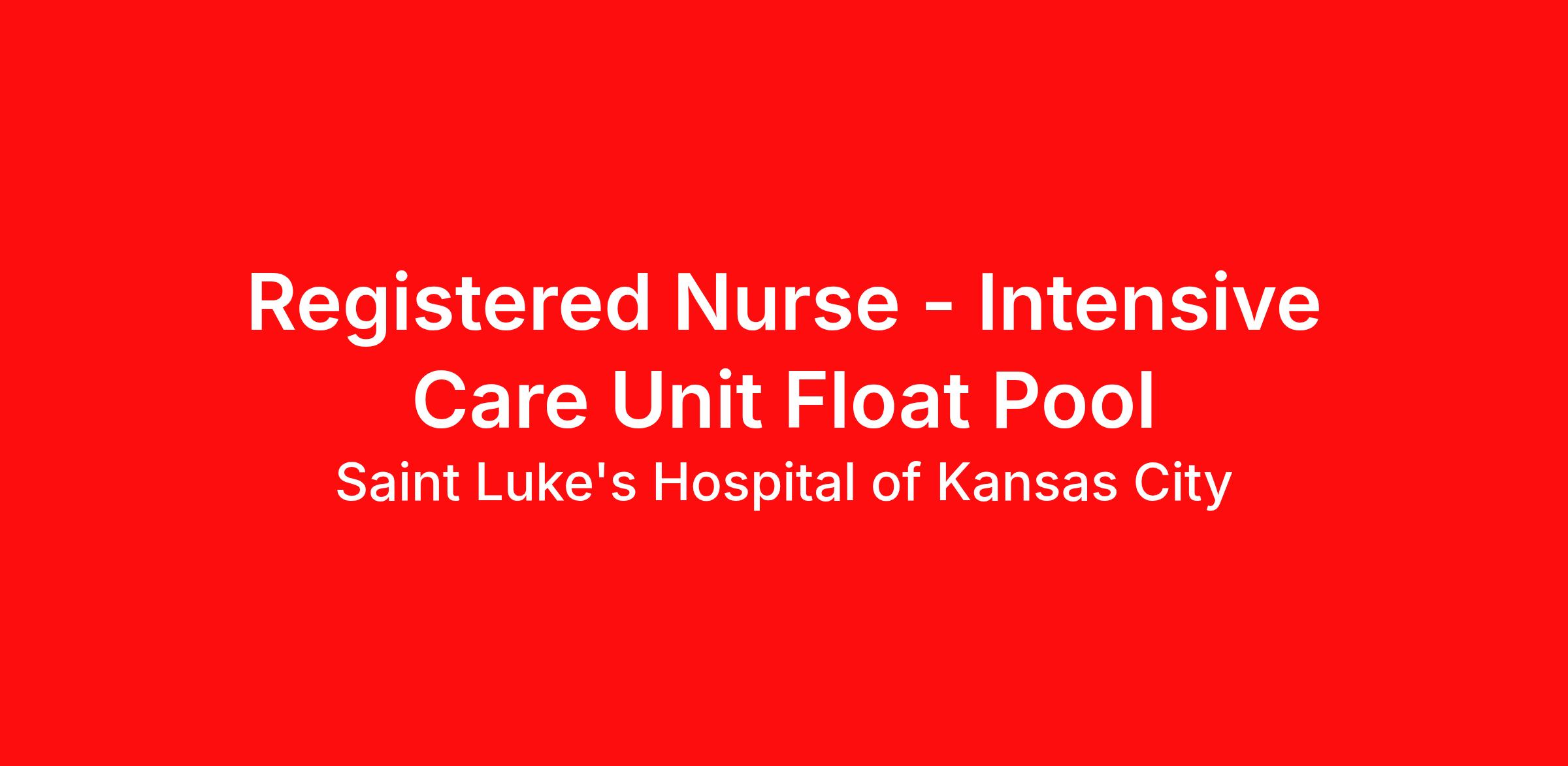Job Description Are you an RN looking for an opportunity to gain experience with lots of opportunities in continuing education? Apply Now Saint Luke's Hospital is looking for a talented Registered Nurse to join the dynamic Intensive Care Unit Float Pool . Position: Registered Nurse (RN) - High Acuity Float Pool Schedule: Full Time, 36 hours, Nights Supportive leadership team, with Nursing Assistants to assist Intensivists and NP's work alongside RNs during shifts, Respiratory Therapy available at night Extra incentives available for picking up additional shifts You will have the opportunity to provide care to variety of conditions, acuity levels, and treatment plans, by floating to our 4 metro hospital location ICU's including, Cardiac ICU, Cardiovascular ICU, Med Surg/Trauma ICU, and Neurosurgical ICU . Accountable for utilizing the nursing process. Responsible for performing patient care delegating patient care tasks and for supervision of other patient care staff. Responsible for coordinating the plan of care for a group of assigned patients and consulting with other members of the health care team when indicated to ensure optimal patient outcomes. This clinical nurse demonstrates proficiency and abides by policies rules guidelines and procedures. LI-MS2 Job Requirements Applicable Experience: 2 years Advanced Cardiac Life Support RQI - Resuscitation Quality Improvement (RQI), Basic Life Support RQI - Resuscitation Quality Improvement (RQI), Registered Nurse (MO) Multi-State - National Council of State Boards of Nursing (NURSYS), Trauma Nurse Core Course - Healthstream - Healthstream Bachelor's Degree Job Details Full Time Night (United States of America) The best place to get care. The best place to give care . Saint Luke's 12,000 employees strive toward that vision every day. Our employees are proud to work for the only faith-based, nonprofit, locally owned health system in Kansas City. Joining Saint Luke's means joining a team of exceptional professionals who strive for excellence in patient care. Do the best work of your career within a highly diverse and inclusive workspace where all voices matter. Join the Kansas City region's premiere provider of health services. Equal Opportunity Employer.