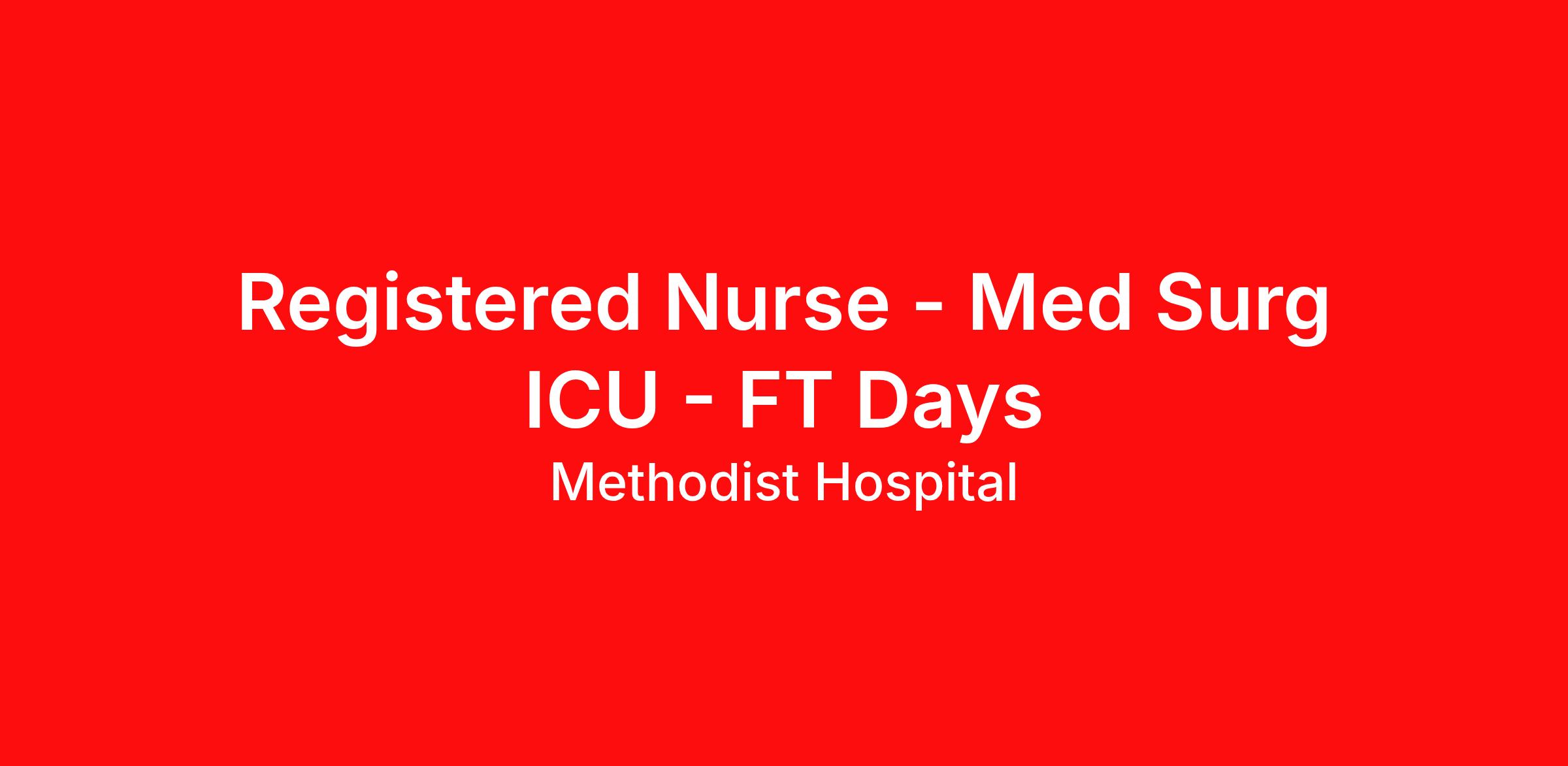 Introduction Do you want to be appreciated daily? Our nurses are celebrated for being on the front line, empathetic for patients. At Methodist Hospital our nurses set us apart from any other healthcare provider. We are seeking a(an) Registered Nurse - Med Surg ICU - FT Days to join our healthcare family. Benefits Methodist Hospital, offers a total rewards package that supports the health, life, career and retirement of our colleagues. The available plans and programs include: Comprehensive medical coverage that covers many common services at no cost or for a low copay. Plans include prescription drug and behavioral health coverage as well as free telemedicine services and free AirMed medical transportation. Additional options for dental and vision benefits, life and disability coverage, flexible spending accounts, supplemental health protection plans (accident, critical illness, hospital indemnity), auto and home insurance, identity theft protection, legal counseling, long-term care coverage, moving assistance, pet insurance and more. Free counseling services and resources for emotional, physical and financial wellbeing 401(k) Plan with a 100% match on 3% to 9% of pay (based on years of service) Employee Stock Purchase Plan with 10% off HCA Healthcare stock Family support through fertility and family building benefits with Progyny and adoption assistance. Referral services for child, elder and pet care, home and auto repair, event planning and more Consumer discounts through Abenity and Consumer Discounts Retirement readiness, rollover assistance services and preferred banking partnerships Education assistance (tuition, student loan, certification support, dependent scholarships) Colleague recognition program Time Away From Work Program (paid time off, paid family leave, long- and short-term disability coverage and leaves of absence) Employee Health Assistance Fund that offers free employee-only coverage to full-time and part-time colleagues based on income. Learn more about Employee Benefits Note: Eligibility for benefits may vary by location. At Methodist Hospital, our nurses play a vital part. We know that every nurse’s path and purpose is unique. Do you want to create your own personal career path in nursing? HCA Healthcare is your career destination! Our scale makes it possible for nurses to create the career path that fits their life – for life – and empowers their passion for patient care. Apply today for our Registered Nurse - Med Surg ICU - FT Days opportunity. Job Summary and Qualifications The Registered Nurse coordinates and delivers high quality, patient-centered care in accordance with the nature and specific requirements of the department, and consistent with the scope and standards of practice for the relevant state and specialty. In collaboration with medical providers and other members of the care team, the RN provides individualized, comprehensive, and compassionate care using established nursing models such as “Assess, Perform, Teach, and Manage.” The RN serves as an advocate for patients/families/caregivers and models a commitment to the organization’s vision/mission/values to support an unparalleled patient experience and clinical outcomes that contribute to overall departmental performance. Performs procedures, monitoring, or other functions as ordered by the medical provider(s). Documents the administration of care in the patient medical record in a timely and thorough manner. Teaches patients/families/caregivers about patient medical condition, patient status, treatment plan, medications and possible side effects, and follow-up measures. Translates complex medical terminology to ensure complete understanding. Teaches patients/families/caregivers about any non-medicinal follow-up measures, such as healthy diet and exercise, disease prevention, and/or other lifestyle changes. Prepares patients and families/caregivers for future self-management. Manages evidence-based practices and continuous process improvement initiatives to meet and exceed quality measures and enhance the exceptional care provided to patients. Manages the quality of care by collaborating with a multidisciplinary team to coordinate, evaluate, customize, and deliver a holistic patient treatment plan that promotes and supports recovery. What qualifications you will need: Graduate of an accredited diploma, associates, or baccalaureate degree registered nursing program. Minimum of six (6) months of clinical experience as a licensed Registered Nurse Current Registered Nurse License in the State of Texas or Multi-State Compact License (Employees with RN Compact License are required to obtain Texas RN License within 60 days of hire date) Current American Heart Association BLS Certification Methodist Hospital opened in 1963 as the first hospital in the now internationally acclaimed South Texas Medical Center. With over 900 beds, Methodist Hospital offers a broad range of specialties including cardiology, oncology, bone marrow transplants, emergency medicine, neurosciences, maternity care, gynecology and orthopedics. We are proud to be the largest provider of the lifesaving ECMO Program in San Antonio, are home to the largest robotics program in the world, and our Adult Blood Cancer and Stem Cell Transplant unit has become the first program to receive FACT Accreditation in North America. As the flagship hospital, and most comprehensive medical care facility of Methodist Healthcare, we appreciate the support and recognition we receive from the community. We’ve recently been named the No.1 Best Regional Hospital by the U.S. News and World Report for 2019-20. We pride ourselves on providing the highest quality of care possible for our patients, which is proven by our consecutive Grade A Leapfrog Hospital Safety scores. In addition, Methodist Hospital not only received a Primary Stroke Center designation from The Joint Commission, but has also received a Comprehensive Stroke Center Certification 