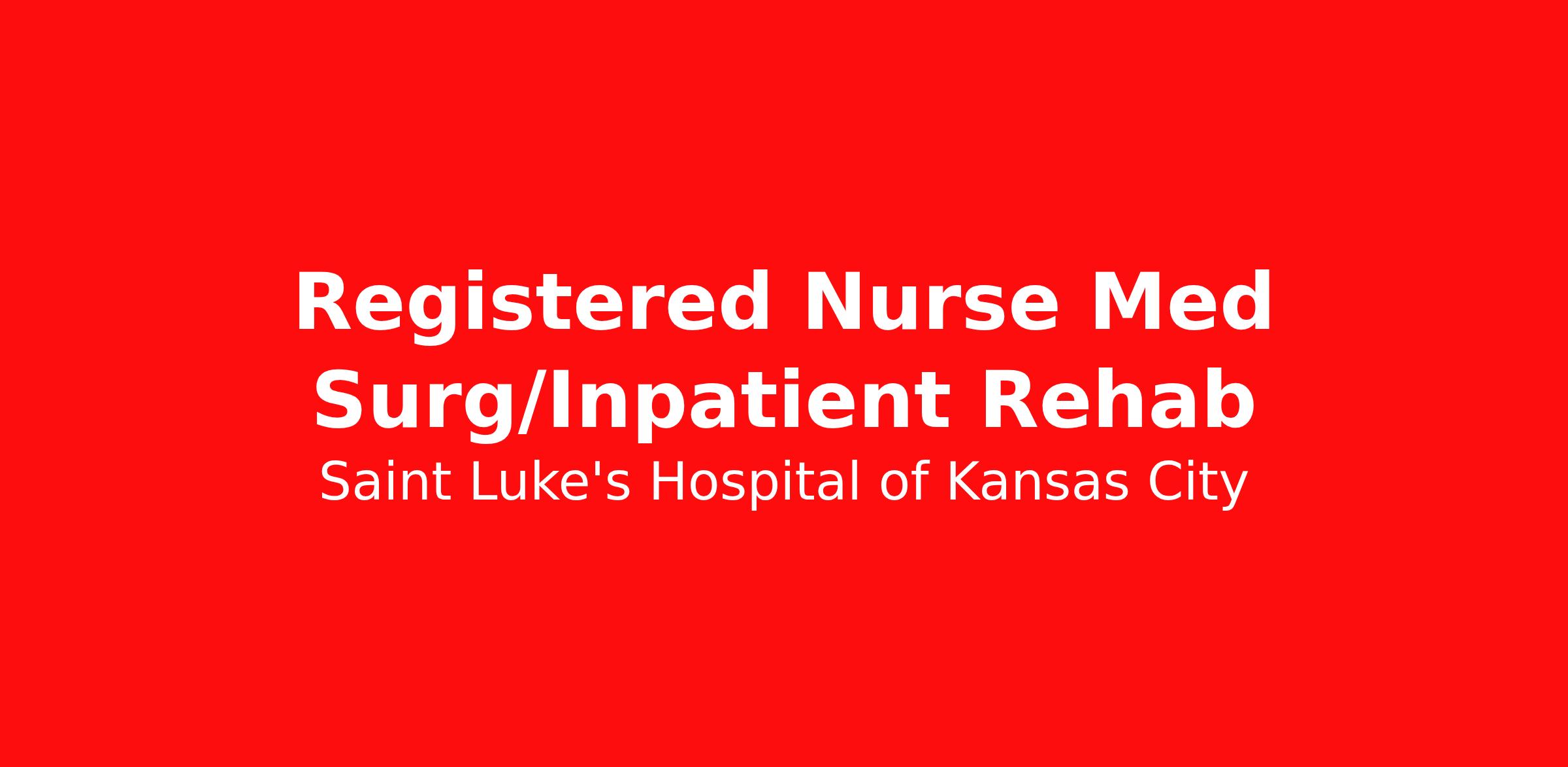 Job Description Registered Nurse Med Surg/Inpatient Rehab Part time days 24 hours per week Benefits Eligible Rotate weekends/Holidays Job Requirements Applicable Experience: Less than 1 year Basic Life Support - American Heart Association or Red Cross, Registered Nurse - Various Associate Degree Job Details Part Time Day (United States of America) The best place to get care. The best place to give care . Saint Luke's 12,000 employees strive toward that vision every day. Our employees are proud to work for the only faith-based, nonprofit, locally owned health system in Kansas City. Joining Saint Luke's means joining a team of exceptional professionals who strive for excellence in patient care. Do the best work of your career within a highly diverse and inclusive workspace where all voices matter. Join the Kansas City region's premiere provider of health services. Equal Opportunity Employer.