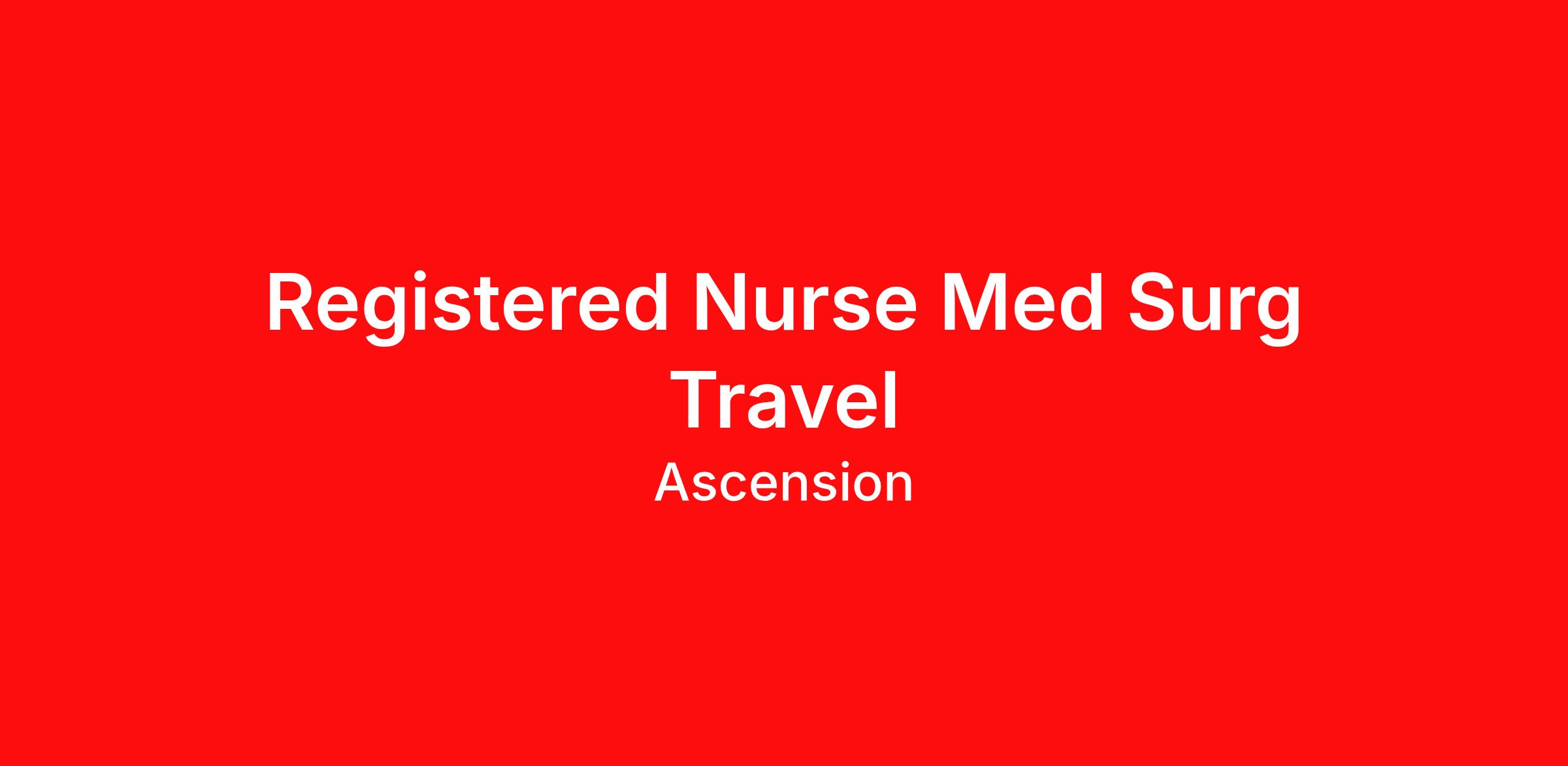 Your future role at a glance Location: Local and national travel options are available depending on need. Facility: Multiple Ascension acute care hospitals Department: Associate Travel Program - Med Surg Schedule: M ultiple shifts available | 36 to 48 hours per week Gross Rate up to $3,122 per week ATP Life at Ascension: Where purpose meets opportunity Ascension is a leading nonprofit Catholic health system with a culture and associate experience grounded in service, growth, care and connection. We empower our 99,000 associates to bring their skills and expertise every day to reimagining healthcare, together. Recognized as one of the Best 150 Places to Work in Healthcare and a Military-Friendly Gold Employer, you’ll find an inclusive and supportive environment where your contributions truly matter. Benefits that help you thrive Comprehensive health coverage: medical, dental, vision, prescription coverage and HSA/FSA options Financial security & retirement: employer-matched 403(b), planning and hardship resources, disability and life insurance Time to recharge: pro-rated paid time off (PTO) and holidays Career growth: Ascension-paid tuition (Vocare), reimbursement, ongoing professional development and online learning Emotional well-being: Employee Assistance Program , counseling and peer support, spiritual care and stress management resources Family support: parental leave, adoption assistance and family benefits Other benefits: optional legal and pet insurance, transportation savings and more Benefit options and eligibility vary by position, scheduled hours and location. Benefits are subject to change at any time. Your recruiter will provide the most up-to-date details during the hiring process. How you’ll make an impact in this role Provide direct nursing care following established policies and protocols. Implement, monitor, and record patient care plans and conditions. Coordinate multidisciplinary care and carry out physician and nursing orders. Assess and manage patient discharge planning with the healthcare team. What minimum requirements you’ll need Licensure / Certification / Registration: BLS Provider obtained within 1 Month (30 days) of hire date or job transfer date required. American Heart Association or American Red Cross accepted. Registered Nurse obtained prior to hire date or job transfer date required. Must have compact RN license or state RN license relevant to travel assignment location prior to start of assignment. Education: Diploma from an accredited school/college of nursing required. Work Experience: One year of RN experience in an acute care setting required. Equal employment opportunity employer Ascension provides Equal Employment Opportunities (EEO) to all associates and applicants for employment without regard to race, color, religion, sex/gender, sexual orientation, gender identity or expression, pregnancy, childbirth, and related medical conditions, lactation, breastfeeding, national origin, citizenship, age, disability, genetic information, veteran status, marital status, all as defined by applicable law, and any other legally protected status or characteristic in accordance with applicable federal, state and local laws. For further information, view the EEO Know Your Rights (English) poster or EEO Know Your Rights (Spanish) poster. Fraud prevention notice Prospective applicants should be vigilant against fraudulent job offers and interview requests. Scammers may use sophisticated tactics to impersonate Ascension employees. To ensure your safety, please remember: Ascension will never ask for payment or to provide banking or financial information as part of the job application or hiring process. Our legitimate email communications will always come from an @ascension.org email address; do not trust other domains, and an official offer will only be extended to candidates who have completed a job application through our authorized applicant tracking system. E-Verify statement Employer participates in the Electronic Employment Verification Program. Please click here for more information.