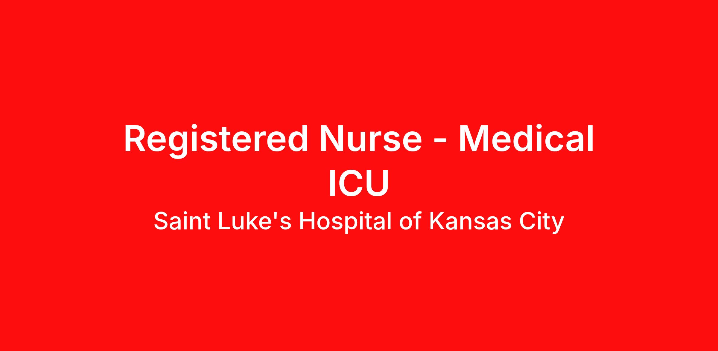 Job Description Are you an RN looking for an opportunity to gain experience in a high acuity facility in the ICU, with lots of continuing education? Apply Now ICU Registered Nurse (RN) opportunity in Lee's Summit at Saint Luke's East Hospital. Full Time: 36 hours/ week : 6:45pm - 7:15am Supportive leadership team, with Nursing Assistants to assist Intensivists and NP's work alongside RNs during shifts, Respiratory Therapy available at night Extra incentives available for picking up additional shifts Functions independently and accountable for utilizing the nursing process. Coordinates the care for a group of patients with the Multidisciplinary Team. Delegates tasks appropriately. Identifies hospital resources. Serves as a clinical resource for new employees. Demonstrates positive formal or informal leadership within unit or department. LI-MS2 Job Requirements Applicable Experience: 1 year Advanced Cardiac Life Support - American Heart Association or Red Cross, Basic Life Support - American Heart Association or Red Cross, Registered Nurse - Various Associate Degree - Nursing Job Details Full Time Night (United States of America) The best place to get care. The best place to give care . Saint Luke's 12,000 employees strive toward that vision every day. Our employees are proud to work for the only faith-based, nonprofit, locally owned health system in Kansas City. Joining Saint Luke's means joining a team of exceptional professionals who strive for excellence in patient care. Do the best work of your career within a highly diverse and inclusive workspace where all voices matter. Join the Kansas City region's premiere provider of health services. Equal Opportunity Employer.