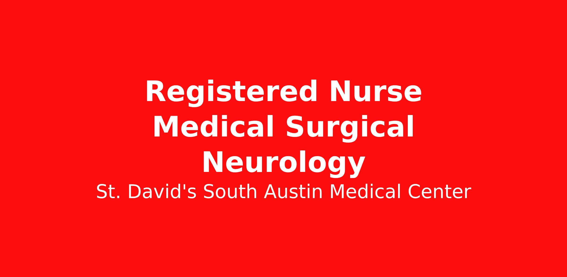 As the nation’s largest private employer of Registered Nurses, we’re honored by the trust of over 100,000 nurses and committed to supporting safe, high-quality care for which they can practice. That’s why more than 80% of our hospitals earn an A or B Leapfrog safety grade, rank in the top 5% nationally for patient outcomes through Health Grades, or are recognized as Magnet or Pathway to Excellence facilities. Join us! Job Summary and Qualifications As a Registered Nurse, you will be responsible for delivering high-quality, patient-centered care in line with the requirements of the department and the standards of practice for the relevant state and specialty. Collaborating with medical providers and the care team, you will provide personalized, comprehensive, and compassionate care, following established nursing models such as "Assess, Perform, Teach, and Manage." You will also act as an advocate for patients, families, and caregivers, embodying the organization's vision, mission, and values to ensure an outstanding patient experience and positive clinical outcomes. What you will do in this role: Assess the patient's condition during admission and each scheduled shift, promptly identifying and reporting any changes in patient status. Perform procedures, monitoring, or other functions as ordered by the medical provider(s), and ensure thorough and timely documentation of care administration in the patient's medical record. - Administer prescribed medications, monitor the patient for therapeutic response, and take appropriate action in the event of an unintended response to the medication. Provide exceptional care by responding promptly to patient requests, proactively anticipating patient needs, and resolving them. Educate patients, families, and caregivers about the patient's medical condition, treatment plan, medications, possible side effects, and follow-up measures, ensuring complete understanding by translating complex medical terminology. What qualifications you will need: NIH Stroke Scale must be obtained within 90 days of employment start date (RN) Registered Nurse must be obtained within 60 days of employment start date Associate Degree Basic Cardiac Life Support must be obtained within 30 days of employment start date Benefits St. David's South Austin Medical Center, offers a total rewards package that supports the health, life, career and retirement of our colleagues. The available plans and programs include: Comprehensive benefits for medical, prescription drug, dental, vision, behavioral health and telemedicine services Wellbeing support, including free counseling and referral services Time away from work programs for paid time off, paid family leave, long- and short-term disability coverage and leaves of absence Savings and retirement resources, including a 401(k) Plan with a 100% match on 3% to 9% of pay (based on years of service), Employee Stock Purchase Plan, flexible spending accounts, preferred banking partnerships, retirement readiness tools, rollover support and financial wellbeing counseling Education support through tuition assistance, student loan assistance, certification support, dependent scholarships and a partnership with Galen College of Nursing Additional benefits for fertility and family building, adoption assistance, life insurance, supplemental health protection plans, auto and home insurance, legal counseling, identity theft protection and consumer discounts Learn more about Employee Benefits Note: Eligibility for benefits may vary by location. "There is so much good to do in the world and so many different ways to do it."- Dr. Thomas Frist, Sr. HCA Healthcare Co-Founder St. David's South Austin Medical Center , is a 368‑bed acute care hospital within St. David’s HealthCare , offering comprehensive specialty and sub‑specialty services. Key programs include a nationally accredited oncology program featuring the region’s only adult Transplant and Cellular Therapy Program; a Level II trauma center; advanced cardiac, stroke, and orthopedic services; full‑service maternity and newborn care; and four community emergency centers in Bee Cave and Bastrop. The facility is affiliated with the Texas Institute for Robotic Surgery , providing advanced robotic capabilities for orthopedics, open heart and lung procedures, complex GI surgery, surgical oncology, general and colorectal surgery, and urology. It was also among the first hospitals in Central Texas to integrate CT imaging with robotics for early lung cancer detection. HCA Healthcare has been recognized as one of the World's Most Ethical Companies® by the Ethisphere Institute more than ten times. In recent years, HCA Healthcare spent an estimated $3.7 billion in cost for the delivery of charitable care, uninsured discounts, and other uncompensated expenses. Be a part of an organization that leverages our size to make a real impact in our industry! Our Talent Acquisition team is reviewing applications for our Registered Nurse Medical Surgical Neurology opening. Submit your application today and help advance the practice of nursing. We are an equal opportunity employer. We do not discriminate on the basis of race, religion, color, national origin, gender, sexual orientation, age, marital status, veteran status, or disability status.