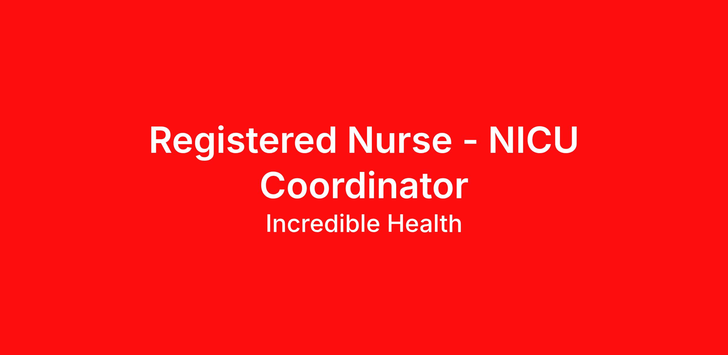 Hospitals on Incredible Health are actively hiring and accepting applications in the Macon, GA area for the following position: Registered Nurse - NICU Coordinator. Nurses with experience in any of the following areas are strongly encouraged to apply: Assistant Nurse Manager, CNO, Carseat testing, Catheter insertion/maintenance, Charge, Clinical Nurse Coordinator, Cooling, Director, ECMO, ETT/ventilator management, Manager, NICU Level III, NICU Level IV, NRP certified, Supervisor, Tube feeding management, or VP. Shift(s) available: day shift, night shift, and mid shift Job types available: full time, part time, and per diem Employer features: Academic medical center, Best Places to Work recognition, Community hospital, Level 1 trauma center, Level 2 trauma center, Level 4 trauma center, Magnet recognized, Offers sign on bonus, Teaching Hospital, Tuition Assistance, U.S. News best hospital Qualifications: RN Diploma degree or higher from an accredited school of nursing Active and unencumbered Registered Nurse license in the state of Georgia Benefits: Healthcare coverage: Medical, Dental, Vision 401K Paid Time Off Tuition Assistance Salary: $59,030 to $77,630 /year