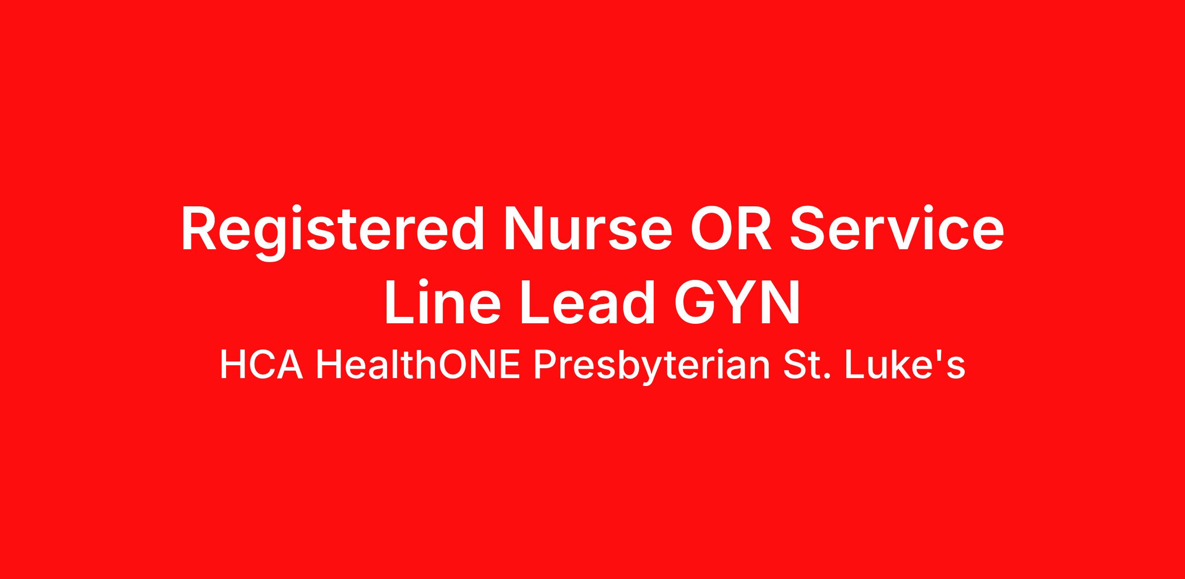 Hourly Wage Estimate: $43.57 - $62.29 / hour Learn more about the benefits offered for this job. The estimate displayed represents the typical wage range of candidates hired. Factors that may be used to determine your actual salary may include your specific skills, how many years of experience you have and comparison to other employees already in this role. The typical candidate is hired below midpoint of the range. Introduction $20,000 Sign On Bonus Available to Eligible New Hires Do you currently have an opportunity to make a real impact with your work? With over 2,000 sites of care and serving over 31.2 million patient interactions every year, nurses at HCA HealthONE Presbyterian St. Luke's have the opportunity to make a real impact. As a(an) Registered Nurse OR Service Line Lead GYN you can be a part of change. Benefits HCA HealthONE Presbyterian St. Luke's, offers a total rewards package that supports the health, life, career and retirement of our colleagues. The available plans and programs include: Comprehensive medical coverage that covers many common services at no cost or for a low copay. Plans include prescription drug and behavioral health coverage as well as free telemedicine services and free AirMed medical transportation. Additional options for dental and vision benefits, life and disability coverage, flexible spending accounts, supplemental health protection plans (accident, critical illness, hospital indemnity), auto and home insurance, identity theft protection, legal counseling, long-term care coverage, moving assistance, pet insurance and more. Free counseling services and resources for emotional, physical and financial wellbeing 401(k) Plan with a 100% match on 3% to 9% of pay (based on years of service) Employee Stock Purchase Plan with 10% off HCA Healthcare stock Family support through fertility and family building benefits with Progyny and adoption assistance. Referral services for child, elder and pet care, home and auto repair, event planning and more Consumer discounts through Abenity and Consumer Discounts Retirement readiness, rollover assistance services and preferred banking partnerships Education assistance (tuition, student loan, certification support, dependent scholarships) Colleague recognition program Time Away From Work Program (paid time off, paid family leave, long- and short-term disability coverage and leaves of absence) Employee Health Assistance Fund that offers free employee-only coverage to full-time and part-time colleagues based on income. Learn more about Employee Benefits Note: Eligibility for benefits may vary by location. It is an exciting time to be a nurse at HCA Healthcare! Come unlock your career potential and see how rewarding it can be to reach your personal and professional goals. Help to advance the practice of nursing and improve positive outcomes for your patients as a (an) Registered Nurse OR Service Line Lead GYN. We want your knowledge and expertise! Job Summary and Qualifications The expert practice of the OR Service Line Lead provides for the daily operations and maintenance of specific service lines. This position is essential in coordinating services as part of an interdisciplinary team of caregivers. What you will do in this role: You will collaborate with all other healthcare disciplines to achieve successful execution of the patient’s plan-of-care in accordance with the Nurse Practice Act. You will meet the Nurse Practice Act, Title 22, The Joint Commission and the Plan for Provision of Nursing Care and the Plan for Provision of Care to Patients, and other regulatory requirements. Your operational responsibilities include the coordination of staff education, outcome management, physician outreach, customer service, revenue integrity, and capital budgets. You will be required to take call as needed by the department and completes other duties as assigned. What qualifications you will need: Current licensure in the State of Colorado as a Registered Nurse, or current active multistate Registered Nurse license. Current BLS Certification through American Heart Association or American Red Cross Graduate of an accredited school of nursing. BSN preferred. Minimum of 2 years of Operating Room experience preferred. Previous experience with specialty service line coordination and development preferred. HCA HealthONE, one of the largest and most comprehensive healthcare systems in the Rocky Mountain region, offers more than 170 care sites in the Denver metro area. Offering services across the continuum of care to meet patients’ total healthcare needs, HCA HealthONE includes seven acute care hospitals, a dedicated flagship pediatric hospital, a rehabilitation hospital, CareNow® urgent care clinics, mental health campuses, imaging and surgery centers, physician practices, home and hospice care, and AirLife Denver, which provides regional critical care air and ground transportation. Among HCA HealthONE’s acute care hospitals is Presbyterian/St. Luke’s (P/SL). P/SL has been meeting the healthcare needs of patients and their families from across the Rocky Mountain region for more than 140 years. Included on the P/SL campus is Rocky Mountain Children’s, a dedicated pediatric hospital, making the campus the only tertiary/quaternary combined pediatric and adult hospital in this region. P/SL is home to an award-winning cancer program including the Colorado Blood Cancer Institute, a solid organ transplant program, and complex orthopedics. Consistently among the Denver Business Journals’ list of top corporate philanthropists in the Denver-metro area, HCA HealthONE was named as one of the most community-minded organizations by The Civic 50 and contributed more than $1 million through cash and in-kind donations last year alone, along with more than $400M in federal, state and local taxes. HCA Healthcare has been recognized as one of the World’s Most Ethical Companies® by the Ethisphere Institute more than ten times. In recen