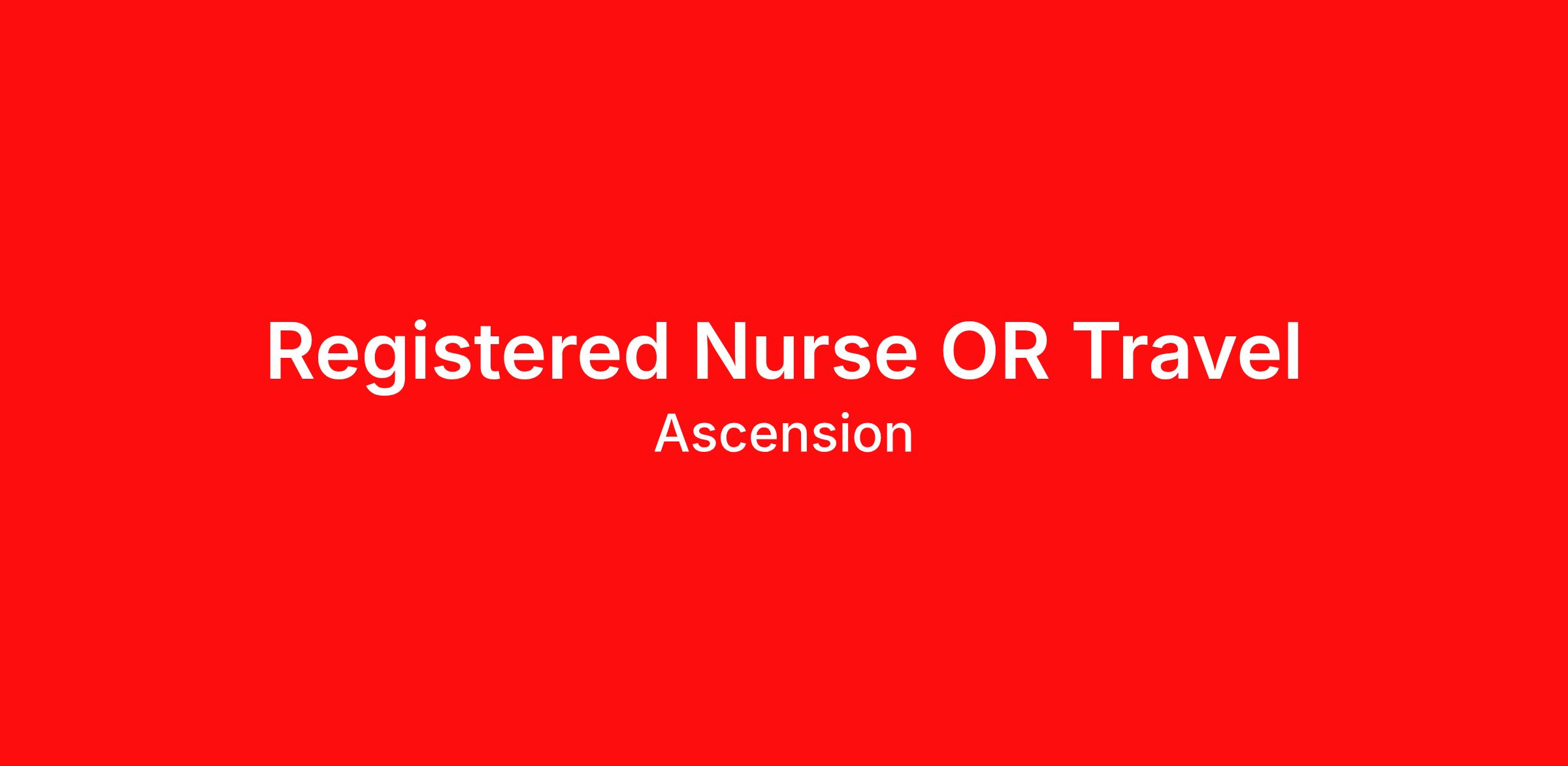 Your future role at a glance Location: Local and national travel options are available dependent on need. Facility: Multiple Ascension acute care hospitals Department: Associate Travel Program - Surgical Services Schedule: Multiple shifts available | 40 hours per week Gross Rate up to $2,620 per week ATP Life at Ascension: Where purpose meets opportunity Ascension is a leading nonprofit Catholic health system with a culture and associate experience grounded in service, growth, care and connection. We empower our 99,000 associates to bring their skills and expertise every day to reimagining healthcare, together. Recognized as one of the Best 150 Places to Work in Healthcare and a Military-Friendly Gold Employer, you’ll find an inclusive and supportive environment where your contributions truly matter. Benefits that help you thrive Comprehensive health coverage: medical, dental, vision, prescription coverage and HSA/FSA options Financial security & retirement: employer-matched 403(b), planning and hardship resources, disability and life insurance Time to recharge: pro-rated paid time off (PTO) and holidays Career growth: Ascension-paid tuition (Vocare), reimbursement, ongoing professional development and online learning Emotional well-being: Employee Assistance Program , counseling and peer support, spiritual care and stress management resources Family support: parental leave, adoption assistance and family benefits Other benefits: optional legal and pet insurance, transportation savings and more Benefit options and eligibility vary by position, scheduled hours and location. Benefits are subject to change at any time. Your recruiter will provide the most up-to-date details during the hiring process. How you’ll make an impact in this role Proficiently serve as Circulator or Scrub Nurse across multiple specialties, including cardiac, ortho, and trauma surgery. Maintain strict aseptic technique and oversee surgical counts to prevent retained foreign objects. Lead "Time-Out" protocols, ensure correct patient positioning to prevent nerve injury, and monitor for skin breakdown. Rapidly respond to intraoperative crises such as malignant hyperthermia, massive hemorrhage, or cardiac arrest. What minimum requirements you’ll need Licensure / Certification / Registration: BLS Provider obtained within 1 Month (30 days) of hire date or job transfer date required. American Heart Association or American Red Cross accepted. Registered Nurse obtained prior to hire date or job transfer date required. Must have compact RN license or state RN license relevant to travel assignment location prior to start of assignment. Education: Diploma from an accredited school/college of nursing required. Work Experience: One year of RN experience in an acute care setting required. What additional preferences we're seeking 1 year of acute care experience Applicable license and/or certification per contract requirements required Equal employment opportunity employer Ascension provides Equal Employment Opportunities (EEO) to all associates and applicants for employment without regard to race, color, religion, sex/gender, sexual orientation, gender identity or expression, pregnancy, childbirth, and related medical conditions, lactation, breastfeeding, national origin, citizenship, age, disability, genetic information, veteran status, marital status, all as defined by applicable law, and any other legally protected status or characteristic in accordance with applicable federal, state and local laws. For further information, view the EEO Know Your Rights (English) poster or EEO Know Your Rights (Spanish) poster. Fraud prevention notice Prospective applicants should be vigilant against fraudulent job offers and interview requests. Scammers may use sophisticated tactics to impersonate Ascension employees. To ensure your safety, please remember: Ascension will never ask for payment or to provide banking or financial information as part of the job application or hiring process. Our legitimate email communications will always come from an @ascension.org email address; do not trust other domains, and an official offer will only be extended to candidates who have completed a job application through our authorized applicant tracking system. E-Verify statement Employer participates in the Electronic Employment Verification Program. Please click here for more information.