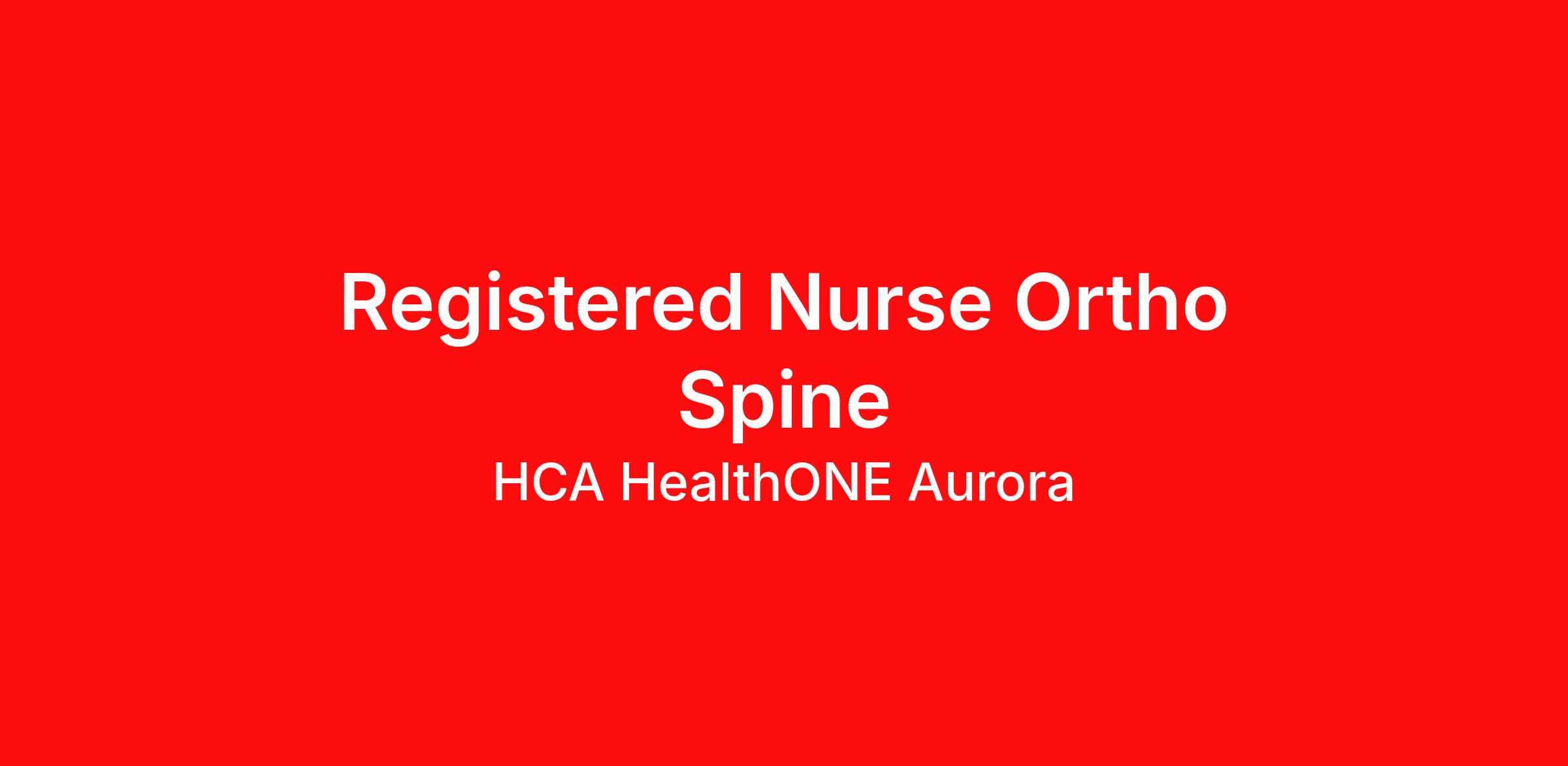 Hourly Wage Estimate: $36.50 - $53.25 / hour Learn more about the benefits offered for this job. The estimate displayed represents the typical wage range of candidates hired. Factors that may be used to determine your actual salary may include your specific skills, how many years of experience you have and comparison to other employees already in this role. The typical candidate is hired below midpoint of the range. As a Registered Nurse Ortho Spine , your voice to influence patient care is valued and empowered at every turn –whether through open, collaborative relationships with your direct manager or more formal opportunities through hospital councils and national nursing initiatives. You'll help shape decisions that elevate both patient outcomes and the future of nursing. Do you want to work where you have a voice? Nurses are at the forefront of our commitment to the care and improvement of human life. At HCA Healthcare, there are many ways for nurses to have a voice through professional practice councils, advisory councils, vital voices surveys, and units of distinction. We learn from our multi-generational nursing family. We partner with our Nurses at HCA HealthONE Aurora! Job Summary and Qualifications As a Registered Nurse, you will be responsible for delivering high-quality, patient-centered care in line with the requirements of the department and the standards of practice for the relevant state and specialty. Collaborating with medical providers and the care team, you will provide personalized, comprehensive, and compassionate care, following established nursing models such as "Assess, Perform, Teach, and Manage." You will also act as an advocate for patients, families, and caregivers, embodying the organization's vision, mission, and values to ensure an outstanding patient experience and positive clinical outcomes. What you will do in this role: Assess the patient's condition during admission and each scheduled shift, promptly identifying and reporting any changes in patient status. Perform procedures, monitoring, or other functions as ordered by the medical provider(s), and ensure thorough and timely documentation of care administration in the patient's medical record. - Administer prescribed medications, monitor the patient for therapeutic response, and take appropriate action in the event of an unintended response to the medication. Provide exceptional care by responding promptly to patient requests, proactively anticipating patient needs, and resolving them. Educate patients, families, and caregivers about the patient's medical condition, treatment plan, medications, possible side effects, and follow-up measures, ensuring complete understanding by translating complex medical terminology. What qualifications you will need: Basic Cardiac Life Support must be obtained within 30 days of employment start date (RN) Registered Nurse Associate Degree Benefits HCA HealthONE Aurora, offers a total rewards package that supports the health, life, career and retirement of our colleagues. The available plans and programs include: Comprehensive benefits for medical, prescription drug, dental, vision, behavioral health and telemedicine services Wellbeing support, including free counseling and referral services Time away from work programs for paid time off, paid family leave, long- and short-term disability coverage and leaves of absence Savings and retirement resources , including a 401(k) Plan with a 100% match on 3% to 9% of pay (based on years of service), Employee Stock Purchase Plan, flexible spending accounts, preferred banking partnerships, retirement readiness tools, rollover support and financial wellbeing counseling Education support through tuition assistance, student loan assistance, certification support, dependent scholarships and a partnership with Galen College of Nursing Additional benefits for fertility and family building, adoption assistance, life insurance, supplemental health protection plans, auto and home insurance, legal counseling, identity theft protection and consumer discounts Learn more about Employee Benefits Note: Eligibility for benefits may vary by location. "Nurses play a pivotal role and are the backbone of healthcare delivery. At HCA Healthcare, we are dedicated to ensuring nurses have necessary tools and resources to provide world-class patient care, advocating for the profession and helping to shape the future of nursing." Sammie Mosier, DHA, MA, BSN, NE-BC Senior Vice President and Chief Nursing Executive, HCA Healthcare HCA HealthONE, one of the largest and most comprehensive healthcare systems in the Rocky Mountain region, offers more than 170 care sites in the Denver metro area. Offering services across the continuum of care to meet patients’ total healthcare needs, HCA HealthONE includes seven acute care hospitals, a dedicated flagship pediatric hospital, a rehabilitation hospital, CareNow® urgent care clinics, mental health campuses, imaging and surgery centers, physician practices, home and hospice care, and AirLife Denver, which provides regional critical care air and ground transportation. Among HCA HealthONE’s acute care hospitals in Aurora, offering more than 60 medical specialties, including a Level II Trauma Center with Primary Stroke Certification and Chest Pain Center accreditation and a full-service mental health campus. HCA HealthONE Aurora is the first hospital in the Denver metro area to receive a three-time Magnet designation for nursing excellence by the American Nurses Credentialing Center. Consistently among the Denver Business Journals’ list of top corporate philanthropists in the Denver-metro area, HCA HealthONE was named as one of the most community-minded organizations by The Civic 50 and contributed more than $1 million through cash and in-kind donations last year alone, along with more than $400M in federal, state and local taxes. HCA Healthcare has been recognized as one of the World’s Most Ethical Companies®