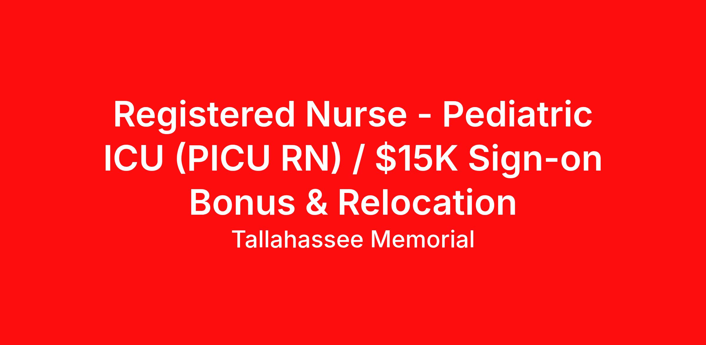 Tallahassee Memorial Healthcare (TMH) is a private, nonprofit community-based healthcare system that provides care to a 22-county region in North Florida and South Georgia. We are a career destination with over 6,000 colleagues who reflect the diversity of our community. TMH is the region's healthcare leader and top provider of advanced care with a 772-bed acute care hospital and the region's only: Level II Trauma Center Primary Stroke Center Level III Neonatal Intensive Care Pediatric Intensive Care The most advanced cancer, heart and vascular, orthopedic & surgery programs in the Panhandle. Our system also includes a psychiatric hospital, multiple specialty care centers, six residency programs and more than 50 affiliated physician practices. Qualifications Required Education: Associates in Nursing Preferred: Bachelor's Degree in Nursing Required Experience: No previous experience required Preferred: 2-5 years’ experience as RN Required Certification/License/Registry: Current license to practice as an RN in Florida Must have a current Basic Life Support (BLS) or Cardiopulmonary Resuscitation (CPR) certification from an accredited instructor from the American Heart Association (AHA) and/or other specialized life support requirements designated by work area If you are interested in becoming a part of TMH’s legacy of quality & compassionate healthcare, we want to know you. Please submit your application & resume TODAY! We look forward to speaking with you. Tallahassee Memorial HealthCare is an equal opportunity employer and drug-free workplace. All employment is contingent upon successful completion of a drug screen, background check, reference verification, health assessment, and credential/license verification. Responsibilities Job Summary: The Registered Clinical Nurse (RN) is fundamental in achieving recognized world-class health care Assumes direct and indirect responsibility for the patient's care environment The primary responsibility is providing care through collaboration with health care team members and the autonomous application of the nursing process Also provides leadership, mentoring and role modeling for other members of the health care team Responsibilities include, but are not limited to, coordination and delegation of care in a safe, secure and clean environment Care provided displays respect for the patient’s rights, dignity, values, confidentiality and expressed needs Adaptable, using evidenced based practice and information technologies while maintaining focus on providing comfort, relieving pain and alleviating anxiety. Reports: Nurse Manager Supervises: Nurse Extern, Graduate/Licensed Practical Nurse, Nursing Technician/Specialty Technician, Unit Secretary, Patient Care Assistant