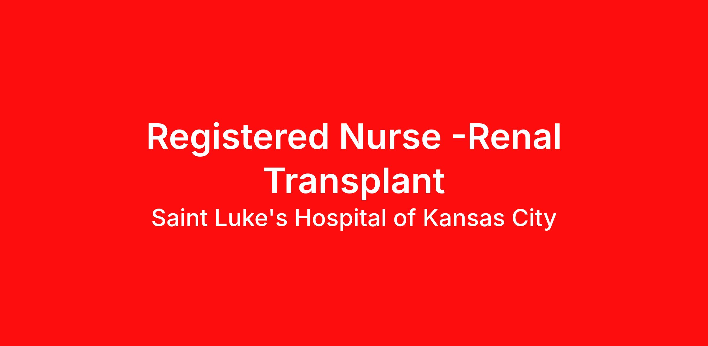 Job Description As a Registered Nurse on our Renal Transplant Unit, you will provide care to chronically ill patients recovering from kidney transplant procedures and other complex conditions and treatment plans. This is a fast-paced high acuity unit that is growing due to continued success of our Kidney Transplant Services that continues to increase our number of kidney transplants each year. Shift: Full Time Nights, 12 hour shifts, this position has weekend shift differentail. Responsibilities: Accountable for utilizing the nursing process. Responsible for performing patient care, delegating patient care tasks and for supervision of other patient care staff. Responsible for coordinating the plan of care for a group of assigned patients and consulting with other members of the health care team when indicated to ensure optimal patient outcomes. This clinical nurse demonstrates proficiency and abides by policies, rules, guidelines and procedures. Job Requirements Applicable Experience: Less than 1 year Basic Life Support - American Heart Association or Red Cross, Registered Nurse (MO) - National Council of State Boards of Nursing (NURSYS) Associate Degree - Nursing Job Details Full Time Night (United States of America) The best place to get care. The best place to give care . Saint Luke's 12,000 employees strive toward that vision every day. Our employees are proud to work for the only faith-based, nonprofit, locally owned health system in Kansas City. Joining Saint Luke's means joining a team of exceptional professionals who strive for excellence in patient care. Do the best work of your career within a highly diverse and inclusive workspace where all voices matter. Join the Kansas City region's premiere provider of health services. Equal Opportunity Employer.