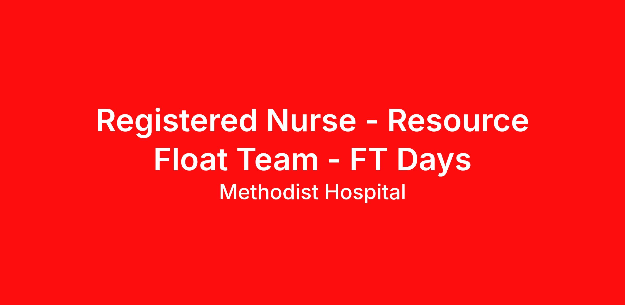 Registered Nurse - Resource Float Team - FT Days