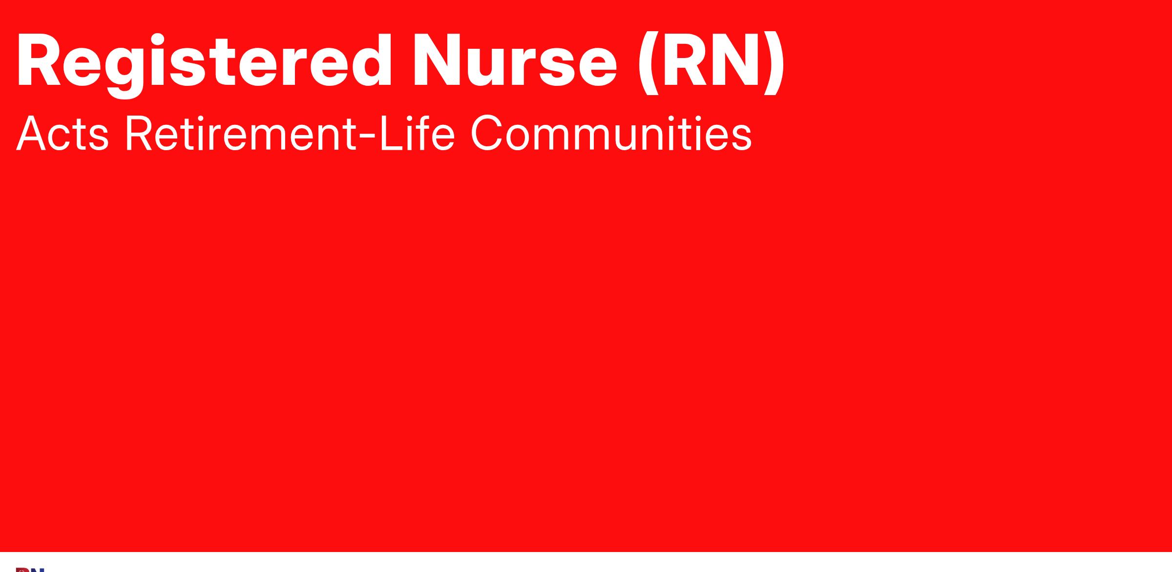 Acts is currently seeking qualified candidates for the role of Registered Nurse (RN) in our skilled nursing neighborhood.