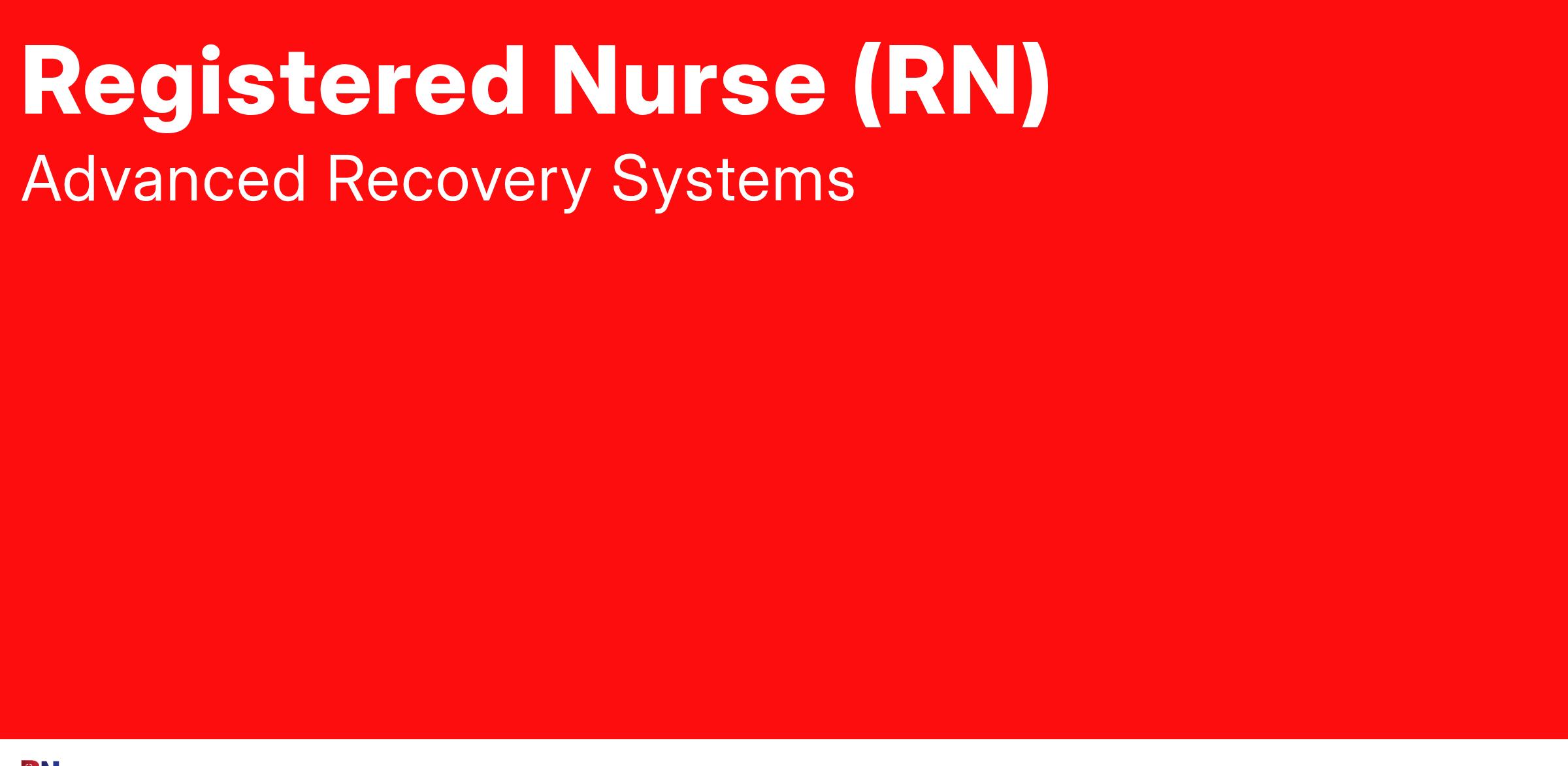 Advanced Recovery Systems complies with state and federal nondiscrimination laws and policies that prohibit discrimination based on age, color, disability, national origin, race, religion, or sex. It is unlawful to retaliate against individuals or groups based on the basis of their participation in a complaint of discrimination or on the basis of their opposition to discriminatory practices/EEO. We are proud to be a drug-free workplace. Other Titles: Detox RN, Addiction Recovery RN, Substance Abuse RN, Psych RN, Mental Health RN, Behavioral Health RN, Chemical Dependency RN..