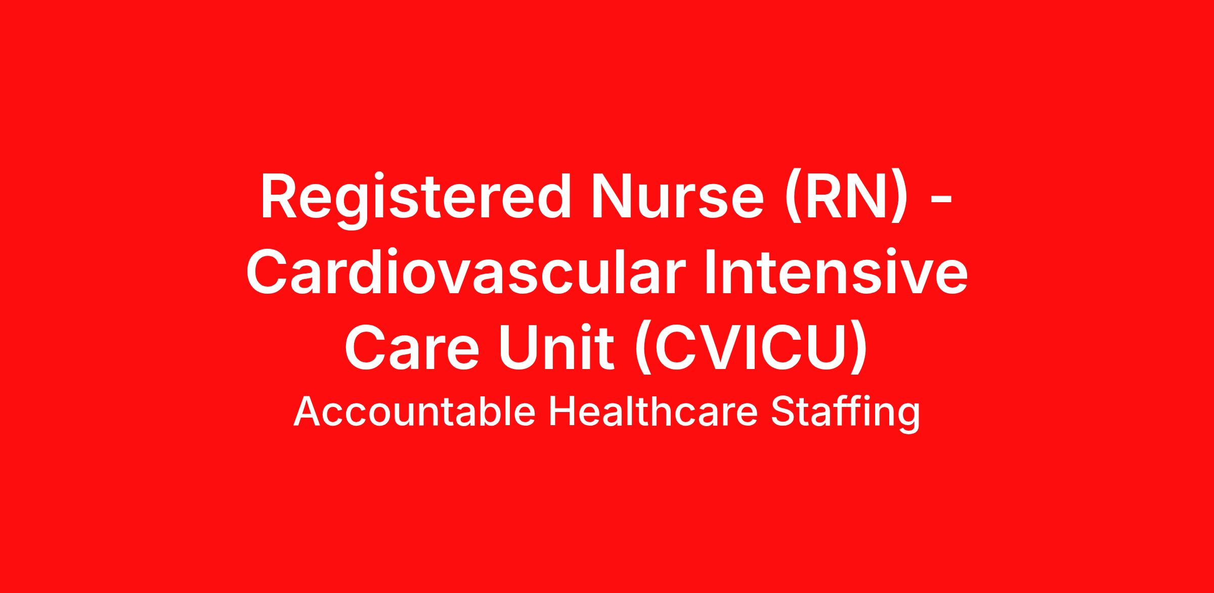 A Registered Nurse (RN) needed in a Cardiovascular Intensive Care Unit (CVICU) setting. Job Type: Local or Travel Contract. Shift: Nights, 36hr Week (3x12). Location: Flagstaff, AZ. Requirements: Must have 2yrs CVICU experience during the past 3yrs. Updated resume, Basic Life Support (BLS - AHA or Red Cross), Advanced Cardiac Life Support (ACLS - AHA or Red Cross), current drivers license (DL), and an active Arizona or Compact RN license. Benefits: Medical, Dental, Voluntary Vision, Flexible Spending, Pet Insurance, Short Term Disability Insurance, Matching 401k, and more. We can help you achieve your career goals by connecting you to our diverse healthcare clients close to home or in desirable locations throughout the United States. Choose to serve patients in major medical centers, community-based hospitals, outpatient clinics, sub-acute care & rehab hospitals, correctional and long-term care facilities, and more. Our team members will match you with the facility that corresponds to your personal and professional goals. Accountable Benefits include Medical, Dental, Voluntary Vision, Life and ADD, Critical Illness, Hospital Indemnity, Flexible Spending, Legal Services, Voluntary Accident Insurance, Pet Insurance, Short Term Disability Insurance and Matching 401K EEO/Minority/Female/Individuals with Disabilities/Sexual Orientation/Gender Identity/Veteran Yep, we're Accountable! Quick Apply in seconds