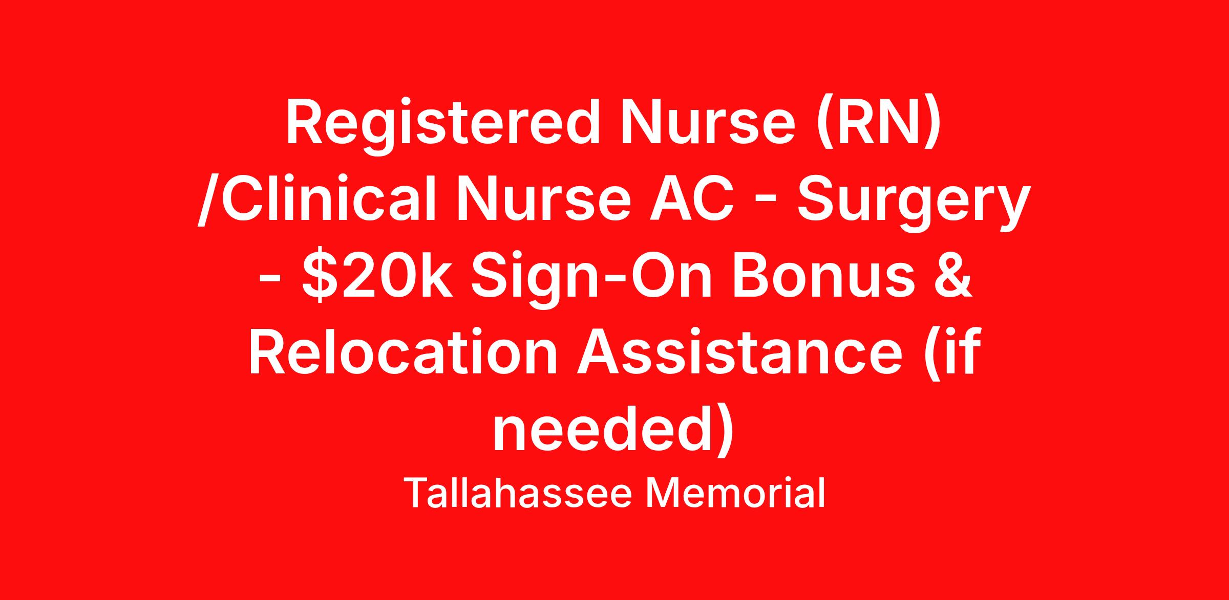 Registered Nurse (RN) /Clinical Nurse AC - Surgery - $20k Sign-On Bonus & Relocation Assistance (if needed)
