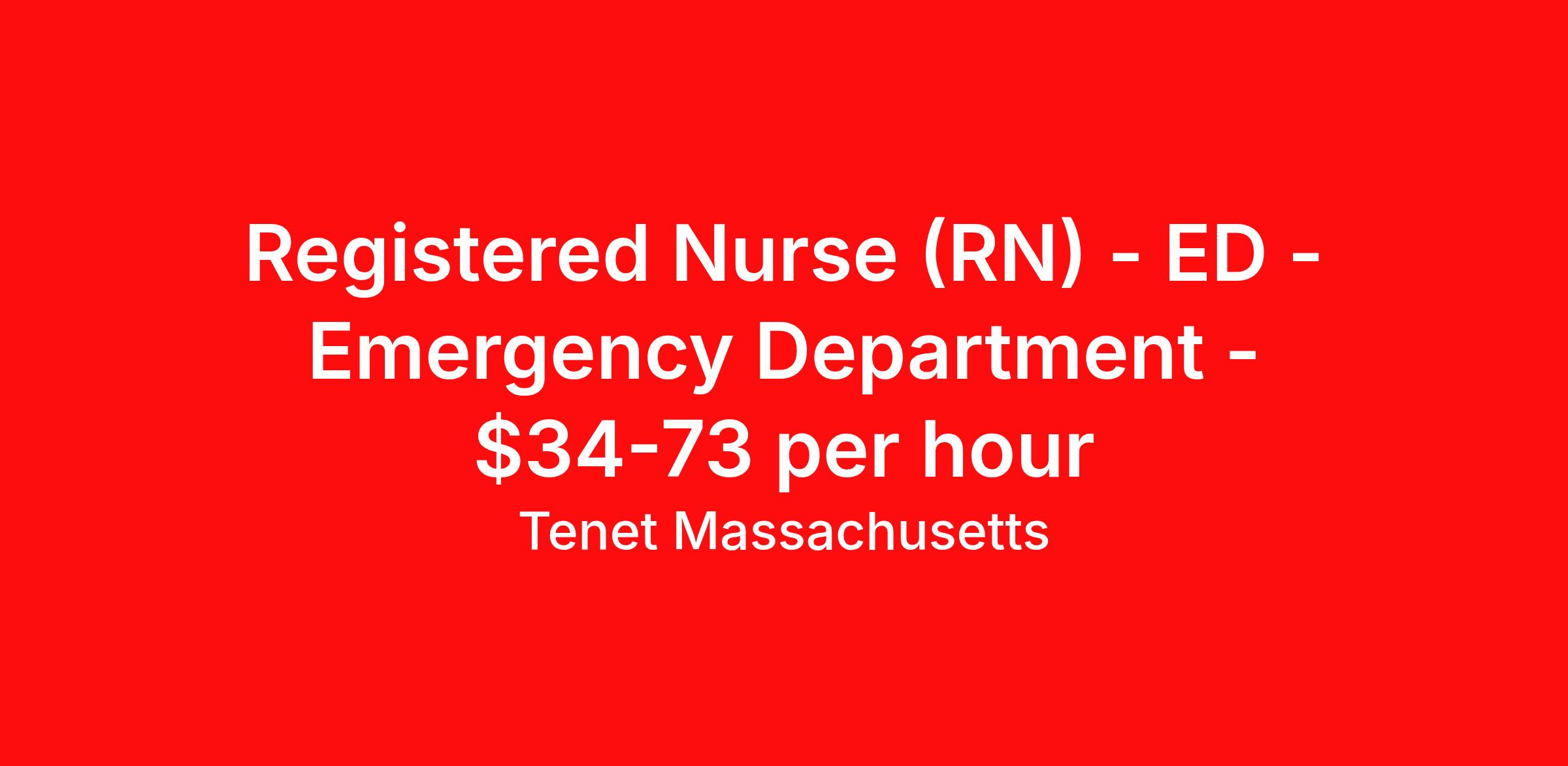 Tenet Massachusetts is seeking a Registered Nurse (RN) ED - Emergency Department for a nursing job in Natick, Massachusetts. Job Description & Requirements Specialty: ED - Emergency Department Discipline: RN Duration: Ongoing 36 hours per week Shift: 12 hours, nights Employment Type: Staff Up to $20,000 Sign-on Bonus Based on Eligibility MetroWest Medical Center is the largest community health care system between Worcester and Boston. MetroWest Medical Center is committed to providing high quality, comprehensive care, at a location close to home. The 307-bed regional healthcare system includes Framingham Union Hospital, Leonard Morse Hospital in Natick and the MetroWest Wellness Center. MetroWest Medical Center has been named to the 2019 America’s 100 Best Hospitals List by Healthgrades. Onboarding Process: Please be advised that candidates must successfully complete a background check and pre-employment health screening which includes a drug screen. Position Summary: This role provides direct clinical patient care. The role will assume responsibility for assessing, planning, implementing direct clinical care to assigned patients on a per shift basis, and unit level. The role is responsible for supervision of staff to which appropriate care is delegated. The role is accountable to support CNO to ensure high quality, safe and appropriate nursing care, competency of clinical staff, and appropriate resource management related to patient care. Has effective interpersonal and communication skills and ability to serve as role model and advocate for the professional discipline of nursing. Qualifications: Education: Required: Graduated from a state approved school of nursing or an accredited school. Preferred: Academic degree in nursing (bachelor's or master's degree). Certifications: Required: Currently licensed, certified, or registered to practice profession as required by law, regulation in state of practice or policy; CPR. Tenet complies with federal, state, and/or local laws regarding mandatory vaccination of its workforce. If you are offered this position and must be vaccinated under any applicable law, you will be required to show proof of full vaccination or obtain an approval of a religious or medical exemption prior to your start date. If you receive an exemption from the vaccination requirement, you will be required to submit to regular testing in accordance with the law. Tenet Mass Job ID 2503019153. Posted job title: Registered Nurse (RN) - ER About Tenet Massachusetts Facilities: Saint Vincent Hospital – Worcester, MA MetroWest Medical Center – Framingham, MA Leonard Morse Hospital – Natick, MA (part of MWMC) MA - SVH Tenet’s Saint Vincent Hospital has been providing high-quality health care to Worcester and the surrounding communities for more than 125 years. At Saint Vincent Hospital, we believe you should have access to the treatments you need without having to travel far from home. We are proud to have been the first hospital in central Massachusetts to offer robotically assisted surgical procedures and minimally invasive, computer-assisted joint replacements. Among the distinctions that we have received include our designations as a Blue Distinction Center for Cardiac Services, Bariatric Surgery, and both Knee and Hip Replacement. We continue to be leaders in state-of-the-art treatments like our CyberKnife Radiosurgery, and our Cardiac Rehabilitation Program which offers a unique, specialized approach to overcoming heart health challenges. Healthgrades awarded Saint Vincent Hospital 1 in Cardiology in the state and one of America’s 100 Best Hospitals for Coronary Intervention in 2023 and 2024, which puts Saint Vincent Hospital in the top 5% of hospitals nationwide for coronary intervention. At Saint Vincent Hospital, you can grow your career skills through a wide range of specialties, and help support the overall health of our community. MA - MWMC Tenet’s MetroWest Medical Center has been serving the community since we opened as the first public medical facility in Framingham in 1893. MetroWest Medical Center is comprised of Framingham Union Hospital and Leonard Morse Hospital, a unique behavioral health specialty center located in Natick dedicated to the mental health of our community. At Framingham Union Hospital, you’ll find comprehensive health care services for your entire family including 24-hour emergency care, advanced cardiac care, high-tech cancer treatments, and advanced maternity care including our Special Care Level IIB nursery and high risky pregnancy care. MetroWest Medical Center was recognized by the Joint Commission with a Gold Seal of Approval, a symbol of quality that reflects our commitment to meeting performance standards and providing safe and effective patient care. Our skilled cardiac team has been recognized as one of Healthgrades’ America’s 100 best hospitals for Coronary Intervention and ranked among the top 5% in the nation for coronary interventional procedures in 2023. At MetroWest Medical Center, you can grow your career skills and be a vital member of our team dedicated to improving the health of our community. Benefits Medical benefits Dental benefits 401k retirement plan Sign-On bonus