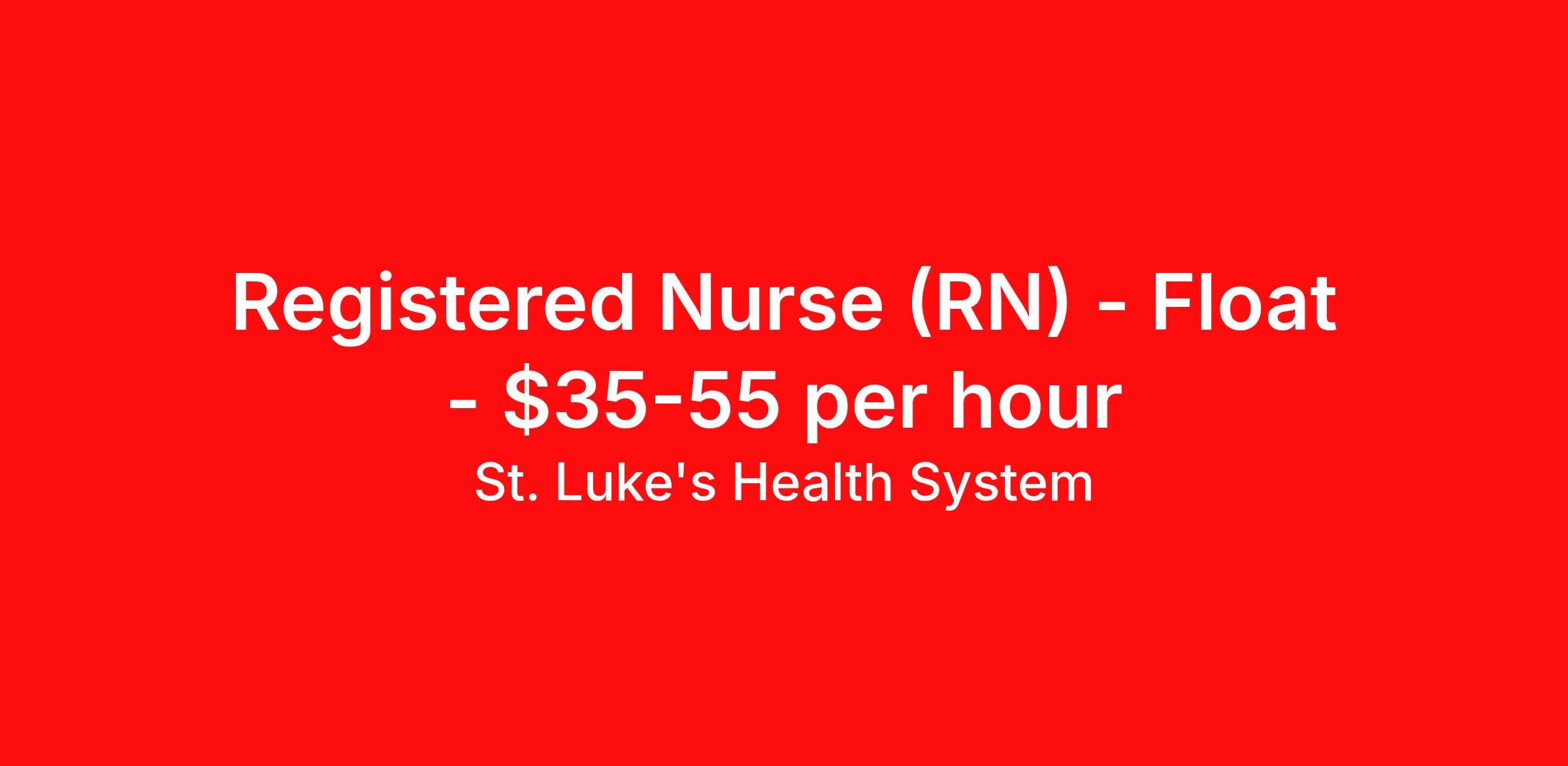 St. Luke's Health System is seeking a Registered Nurse (RN) Float for a nursing job in Boise, Idaho. Job Description & Requirements Specialty: Float Discipline: RN Duration: Ongoing 36 hours per week Shift: 12 hours, nights Employment Type: Staff Float Position Opportunity Overview Additional 10% differential in addition to the base after orientation St. Luke’s Health System in the Treasure Valley is seeking a night shift RN to join our Clinical Support Unit (Float Pool)-Critical Care service line. Unit/Position Summary St. Luke's Clinical Support Unit (Internal Float Pool) is searching for experienced RNs who are looking to expand their skills by supporting our Critical Care service line for our Treasure Valley hospitals- Boise, Meridian & Nampa. The Clinical Support Unit (CSU) is a dynamic department that provides a high quality float experience to the departments and patients we serve. This requires nurses that are energetic, flexible and willing to support the mission of the organization. CSU float pool RNs maintain competencies for each unit supported, typically 3 skill sets are supported within one service line. Inter-facility floating is expected (Boise, Meridian, and Nampa). Below is an example of the service line structure and the skill sets CSU RN's typically work within, but your time working in the float pool can open up opportunities to expand your skills into any of these areas: Medical Surgical/Telemetry: Medical/Surgical, Telemetry, Mother/Baby, Pediatrics, Emergency Departments Women's Center: Antepartum, Labor & Delivery, Mother/Baby, NICU Critical Care:Critical Care, Emergency Departments, PICU, NICU, Telemetry Children's Center:Mother/Baby, Pediatrics, PICU, NICU Other:Chemotherapy, Resource RN, Infusion Center Once orientation concludes, our Clinical Support Unit offers a 10% differential in addition to the base rate! SIGN ON BONUS AVAILABLE FOR EXTERNAL CANDIDATES! Responsibilities Identifies patient needs and determines priorities for care through assessment, planning, intervention, and evaluation. Develops, implements and coordinates individualized plan of care for patients assigned through initial and on-going assessments. Initiates assessment based on the patient's problems or needs, the physician's medical diagnosis, and the functional health framework. Performs therapeutic nursing interventions. Manages care of patients. Documents care based on standards of care and practice, patient acuity, and/or clinical priorities Advocates for evidence-based practice care standards and supports adoption of evidence-based practices and innovations in care delivery. Provides patient centric care in alignment with professional nursing practice model. Other duties and responsibilities as assigned. Qualifications Education: Bachelor's of Nursing Degree Experience: 1 years of experience Licenses/Certifications: Current RN licensure from the State of Practice Please note – This Registered Nurse position is for nurses with 1 years of RN experience. We currently have our “STAR Nurse Residency New Grad RN ( Why St. Luke's A strong, talented staff is at the heart of St. Luke’s Health System. We are the state’s largest employer with more than 15,000 employees and a medical staff of more than 1,800 physicians and advanced practice providers. We’re proud of our people who deliver skilled, compassionate care every day, and are looking to add dedicated individuals who will continue this same tradition of excellence. About Treasure Valley Known as the "City of Trees," Boise is Idaho's capital city—both a cultural center and a playground for those who love the outdoors. A vibrant downtown area affords fine dining, theatre, music, and college and semi-professional sports. Downtown Boise's main attractions include the Idaho State Capitol, the classic Egyptian Theatre, the Boise Art Museum, Julia Davis Park and Zoo Boise. The Greenbelt follows the beautiful Boise River corridor for more than 30 miles, and the Boise foothills are home to miles of hiking and biking trails. St. Luke's Health System Job ID RDR2022-53446-1. About St. Luke's Health System A strong, talented staff is at the heart of St. Luke’s Health System . We are Idaho's largest employer with more than 15,000 employees and a medical staff of more than 1,800 physicians and advanced practice providers. We’re proud of our people who deliver skilled, compassionate care every day, and are looking to add dedicated individuals who will continue this same tradition of excellence. Benefits Wellness and fitness programs Discount program Mileage reimbursement Life insurance Holiday Pay Guaranteed Hours Employee assistance programs Continuing Education Medical benefits 403b retirement plan Dental benefits Sick pay Vision benefits
