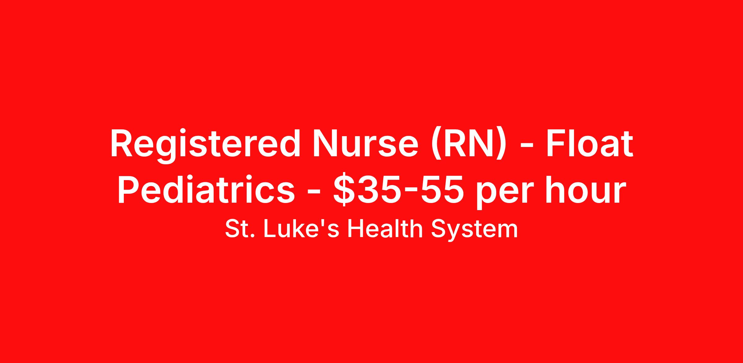 St. Luke's Health System is seeking a Registered Nurse (RN) Float Pediatrics for a nursing job in Boise, Idaho. Job Description & Requirements Specialty: Pediatrics Discipline: RN Duration: Ongoing 36 hours per week Shift: 12 hours, days, nights Employment Type: Staff Float Position Opportunity Overview Additional 10% differential in addition to the base after orientation St. Luke’s Health System in the Treasure Valley is seeking a night shift RN to join our Clinical Support Unit (Float Pool) Unit/Position Summary St. Luke's Clinical Support Unit (Internal Float Pool) is searching for experienced RNs who are looking to expand their skills by supporting our Critical Care service line for our Treasure Valley hospitals- Boise, Meridian & Nampa. The Clinical Support Unit (CSU) is a dynamic department that provides a high quality float experience to the departments and patients we serve. This requires nurses that are energetic, flexible and willing to support the mission of the organization. CSU float pool RNs maintain competencies for each unit supported, typically 3 skill sets are supported within one service line. Inter-facility floating is expected (Boise, Meridian, and Nampa). Below is an example of the service line structure and the skill sets CSU RN's typically work within, but your time working in the float pool can open up opportunities to expand your skills into any of these areas: Medical Surgical/Telemetry: Medical/Surgical, Telemetry, Mother/Baby, Pediatrics, Emergency Departments Women's Center: Antepartum, Labor & Delivery, Mother/Baby, NICU Critical Care:Critical Care, Emergency Departments, PICU, NICU, Telemetry Children's Center:Mother/Baby, Pediatrics, PICU, NICU Other:Chemotherapy, Resource RN, Infusion Center Once orientation concludes, our Clinical Support Unit offers a 10% differential in addition to the base rate! SIGN ON BONUS AVAILABLE FOR EXTERNAL CANDIDATES! Responsibilities Identifies patient needs and determines priorities for care through assessment, planning, intervention, and evaluation. Develops, implements and coordinates individualized plan of care for patients assigned through initial and on-going assessments. Initiates assessment based on the patient's problems or needs, the physician's medical diagnosis, and the functional health framework. Performs therapeutic nursing interventions. Manages care of patients. Documents care based on standards of care and practice, patient acuity, and/or clinical priorities Advocates for evidence-based practice care standards and supports adoption of evidence-based practices and innovations in care delivery. Provides patient centric care in alignment with professional nursing practice model. Other duties and responsibilities as assigned. Qualifications Education: Bachelor's of Nursing Degree Experience: 1 years of experience Licenses/Certifications: Current RN licensure from the State of Practice Please note – This Registered Nurse position is for nurses with 1 years of RN experience. We currently have our “STAR Nurse Residency New Grad RN ( Why St. Luke's A strong, talented staff is at the heart of St. Luke’s Health System. We are the state’s largest employer with more than 15,000 employees and a medical staff of more than 1,800 physicians and advanced practice providers. We’re proud of our people who deliver skilled, compassionate care every day, and are looking to add dedicated individuals who will continue this same tradition of excellence. About Treasure Valley Known as the "City of Trees," Boise is Idaho's capital city—both a cultural center and a playground for those who love the outdoors. A vibrant downtown area affords fine dining, theatre, music, and college and semi-professional sports. Downtown Boise's main attractions include the Idaho State Capitol, the classic Egyptian Theatre, the Boise Art Museum, Julia Davis Park and Zoo Boise. The Greenbelt follows the beautiful Boise River corridor for more than 30 miles, and the Boise foothills are home to miles of hiking and biking trails. St. Luke's Health System Job ID RDR2022-53446-9. About St. Luke's Health System A strong, talented staff is at the heart of St. Luke’s Health System . We are Idaho's largest employer with more than 15,000 employees and a medical staff of more than 1,800 physicians and advanced practice providers. We’re proud of our people who deliver skilled, compassionate care every day, and are looking to add dedicated individuals who will continue this same tradition of excellence. Benefits Wellness and fitness programs Discount program Mileage reimbursement Life insurance Holiday Pay Guaranteed Hours Employee assistance programs Continuing Education Medical benefits 403b retirement plan Dental benefits Sick pay Vision benefits