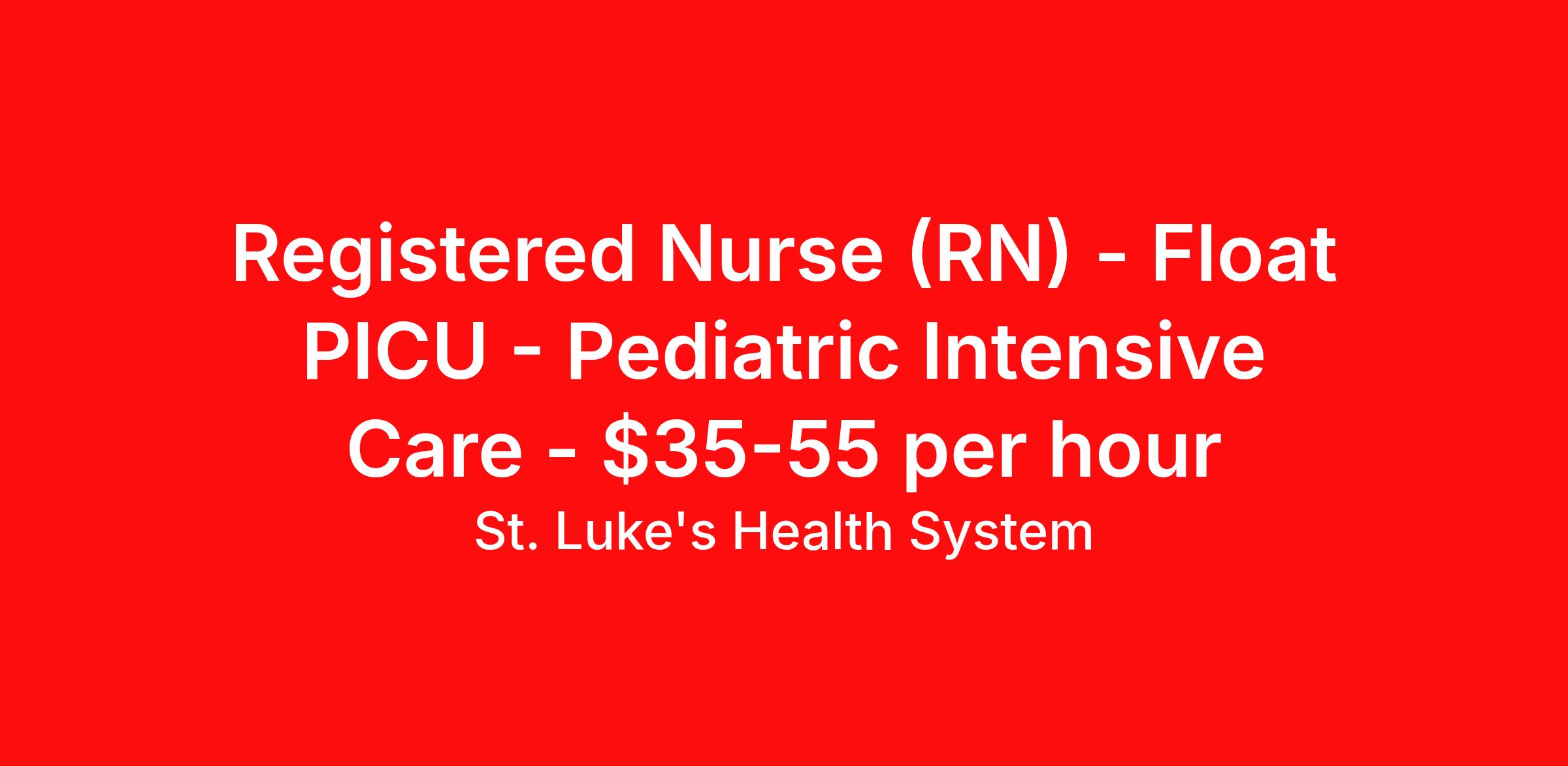 St. Luke's Health System is seeking a Registered Nurse (RN) Float PICU - Pediatric Intensive Care for a nursing job in Boise, Idaho. Job Description & Requirements Specialty: PICU - Pediatric Intensive Care Discipline: RN Duration: Ongoing 36 hours per week Shift: 12 hours, nights Employment Type: Staff Float Position Opportunity Overview Additional 10% differential in addition to the base after orientation St. Luke’s Health System in the Treasure Valley is seeking a night shift RN to join our Clinical Support Unit (Float Pool)-Critical Care service line. Unit/Position Summary St. Luke's Clinical Support Unit (Internal Float Pool) is searching for experienced RNs who are looking to expand their skills by supporting our Critical Care service line for our Treasure Valley hospitals- Boise, Meridian & Nampa. The Clinical Support Unit (CSU) is a dynamic department that provides a high quality float experience to the departments and patients we serve. This requires nurses that are energetic, flexible and willing to support the mission of the organization. CSU float pool RNs maintain competencies for each unit supported, typically 3 skill sets are supported within one service line. Inter-facility floating is expected (Boise, Meridian, and Nampa). Below is an example of the service line structure and the skill sets CSU RN's typically work within, but your time working in the float pool can open up opportunities to expand your skills into any of these areas: Medical Surgical/Telemetry: Medical/Surgical, Telemetry, Mother/Baby, Pediatrics, Emergency Departments Women's Center: Antepartum, Labor & Delivery, Mother/Baby, NICU Critical Care:Critical Care, Emergency Departments, PICU, NICU, Telemetry Children's Center:Mother/Baby, Pediatrics, PICU, NICU Other:Chemotherapy, Resource RN, Infusion Center Once orientation concludes, our Clinical Support Unit offers a 10% differential in addition to the base rate! SIGN ON BONUS AVAILABLE FOR EXTERNAL CANDIDATES! Responsibilities Identifies patient needs and determines priorities for care through assessment, planning, intervention, and evaluation. Develops, implements and coordinates individualized plan of care for patients assigned through initial and on-going assessments. Initiates assessment based on the patient's problems or needs, the physician's medical diagnosis, and the functional health framework. Performs therapeutic nursing interventions. Manages care of patients. Documents care based on standards of care and practice, patient acuity, and/or clinical priorities Advocates for evidence-based practice care standards and supports adoption of evidence-based practices and innovations in care delivery. Provides patient centric care in alignment with professional nursing practice model. Other duties and responsibilities as assigned. Qualifications Education: Bachelor's of Nursing Degree Experience: 1 years of experience Licenses/Certifications: Current RN licensure from the State of Practice Please note – This Registered Nurse position is for nurses with 1 years of RN experience. We currently have our “STAR Nurse Residency New Grad RN ( Why St. Luke's A strong, talented staff is at the heart of St. Luke’s Health System. We are the state’s largest employer with more than 15,000 employees and a medical staff of more than 1,800 physicians and advanced practice providers. We’re proud of our people who deliver skilled, compassionate care every day, and are looking to add dedicated individuals who will continue this same tradition of excellence. About Treasure Valley Known as the "City of Trees," Boise is Idaho's capital city—both a cultural center and a playground for those who love the outdoors. A vibrant downtown area affords fine dining, theatre, music, and college and semi-professional sports. Downtown Boise's main attractions include the Idaho State Capitol, the classic Egyptian Theatre, the Boise Art Museum, Julia Davis Park and Zoo Boise. The Greenbelt follows the beautiful Boise River corridor for more than 30 miles, and the Boise foothills are home to miles of hiking and biking trails. St. Luke's Health System Job ID RDR2022-56110-41. About St. Luke's Health System A strong, talented staff is at the heart of St. Luke’s Health System . We are Idaho's largest employer with more than 15,000 employees and a medical staff of more than 1,800 physicians and advanced practice providers. We’re proud of our people who deliver skilled, compassionate care every day, and are looking to add dedicated individuals who will continue this same tradition of excellence. Benefits Wellness and fitness programs Discount program Mileage reimbursement Life insurance Holiday Pay Guaranteed Hours Employee assistance programs Continuing Education Medical benefits 403b retirement plan Dental benefits Sick pay Vision benefits