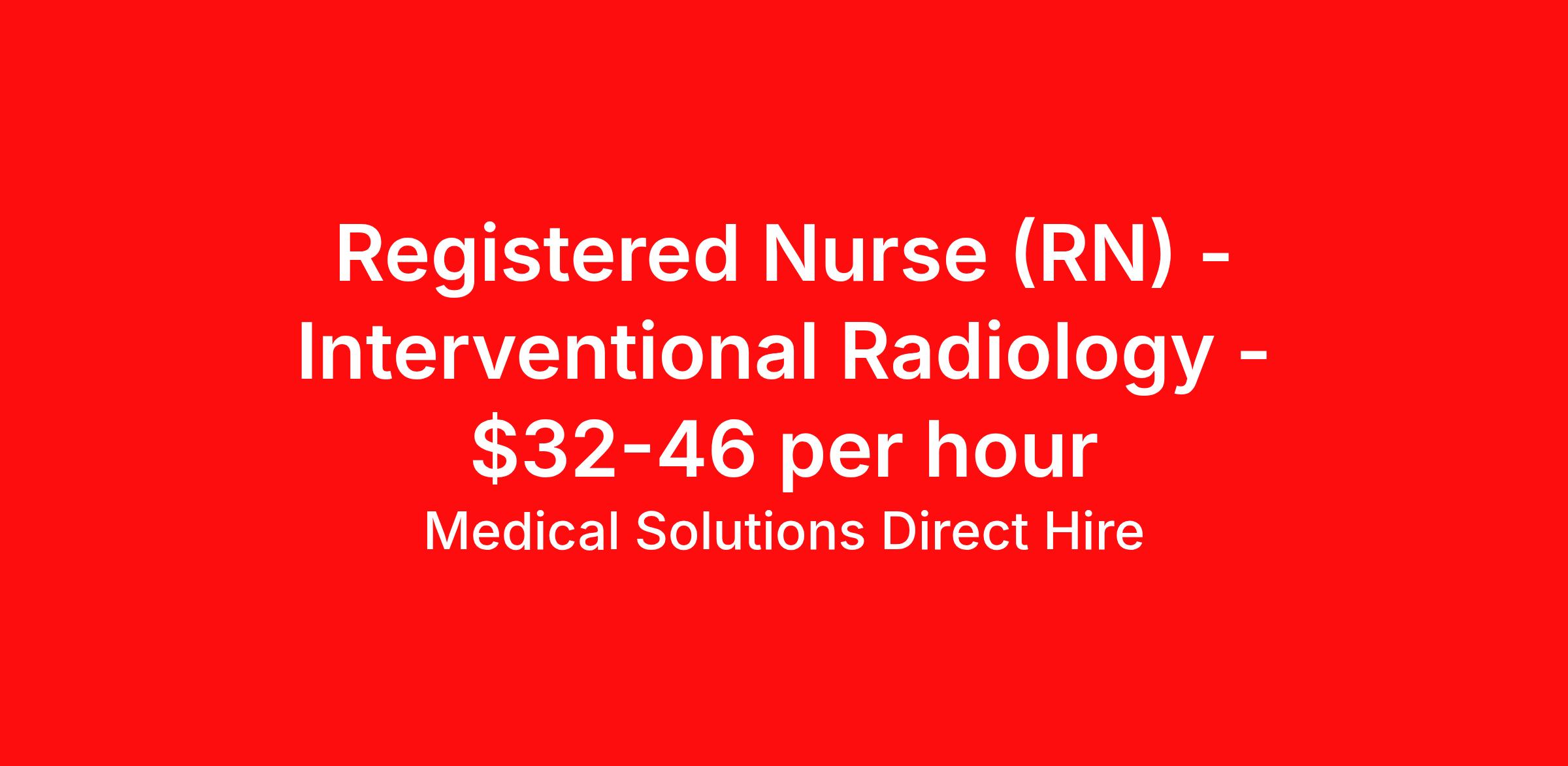 Medical Solutions Direct Hire is seeking a Registered Nurse (RN) Interventional Radiology for a nursing job in Kingman, Arizona. Job Description & Requirements Specialty: Interventional Radiology Discipline: RN Duration: Ongoing 40 hours per week Shift: 10 hours, days Employment Type: Staff Date posted: January 28, 2026 Pay: $66,560 – $95,035 per year Job Description Interventional Radiology Registered Nurse Opportunity – Kingman, Arizona Direct Hire | Full-Time | Day Shift A patient-centered healthcare organization in Kingman, Arizona is hiring an Interventional Radiology (IR) Registered Nurse for a permanent, full-time role. This position offers consistent daytime hours, strong compensation, and the opportunity to work in a specialized procedural environment with a collaborative clinical team. A $15,000 sign-on bonus and $4,000 relocation assistance are included. Position Overview · Permanent, full-time role · 40 hours per week · Day shift · MEDITECH electronic medical record system · Interventional Radiology department Shift Details · 4 shifts per week · 10-hour shifts · 7:00a – 5:30p Compensation & Incentives · Salary range: $66,560 – $95,035 annually (based on experience) · $15,000 sign-on bonus · $4,000 relocation assistance · Comprehensive benefits package Key Responsibilities · Provide nursing care for patients undergoing interventional radiology procedures · Prepare patients for procedures and assist during interventions · Monitor patients pre-, intra-, and post-procedure · Administer medications and IV therapies as ordered · Accurately document patient care in MEDITECH · Collaborate with radiologists and interdisciplinary care teams · Ensure patient safety, comfort, and adherence to procedural protocols Requirements · Active Registered Nurse (RN) license (Required) · BLS Certification (Required) · Minimum 1 year of nursing experience (Required) Why This Opportunity This role is ideal for an RN seeking a procedural setting with stable daytime hours and strong compensation. The organization values teamwork, clinical excellence, and supports ongoing professional growth in a specialized department. Why Kingman, Arizona : · Affordable cost of living · Scenic desert landscapes and outdoor recreation · Easy access to Las Vegas, Phoenix, and Flagstaff · Relaxed lifestyle with a strong community feel Job Type: Full-time Benefits : · Health insurance · Dental insurance · Vision insurance · Paid time off · Retirement plan · Sign-on bonus · Relocation assistance · Career advancement opportunities Work Location: In person Selected candidates will be contacted directly to discuss experience, background, and next steps in the interview process. Please contact Joseph Hojecki, Direct Hire Recruiter, with any questions at About Medical Solutions Direct Hire At Medical Solutions, we’re people who care, helping people who care. No matter how you look at it, there’s a whole lot of care going on in our world and that’s just the way we like it. What do we do? Medical Solutions is one of the nation’s largest providers of total workforce solutions in the healthcare industry, connecting nurses and allied health clinicians with hospitals and healthcare systems across the country and around the corner. Through our family of brands, we also serve a segment of clients outside of the healthcare space. And we’re the very best at what we do. You’ll love our culture that’s filled with heart and soul. As a company and employer, we’re sincerely and unabashedly us. We lead as humans first and believe the unique qualities of each team member make us better together. We share a purpose for helping others and the drive to make a difference. And we offer endless opportunities for personal and professional growth, throughout your career. At Medical Solutions, you’ll find a great place to work and a career home. We’ve received Best Places to Work awards, landed top industry awards, and received accolades for the impact we’ve made in business and within our community. But the only way to really get to know us, is to join us. We think you’ll fit right in.
