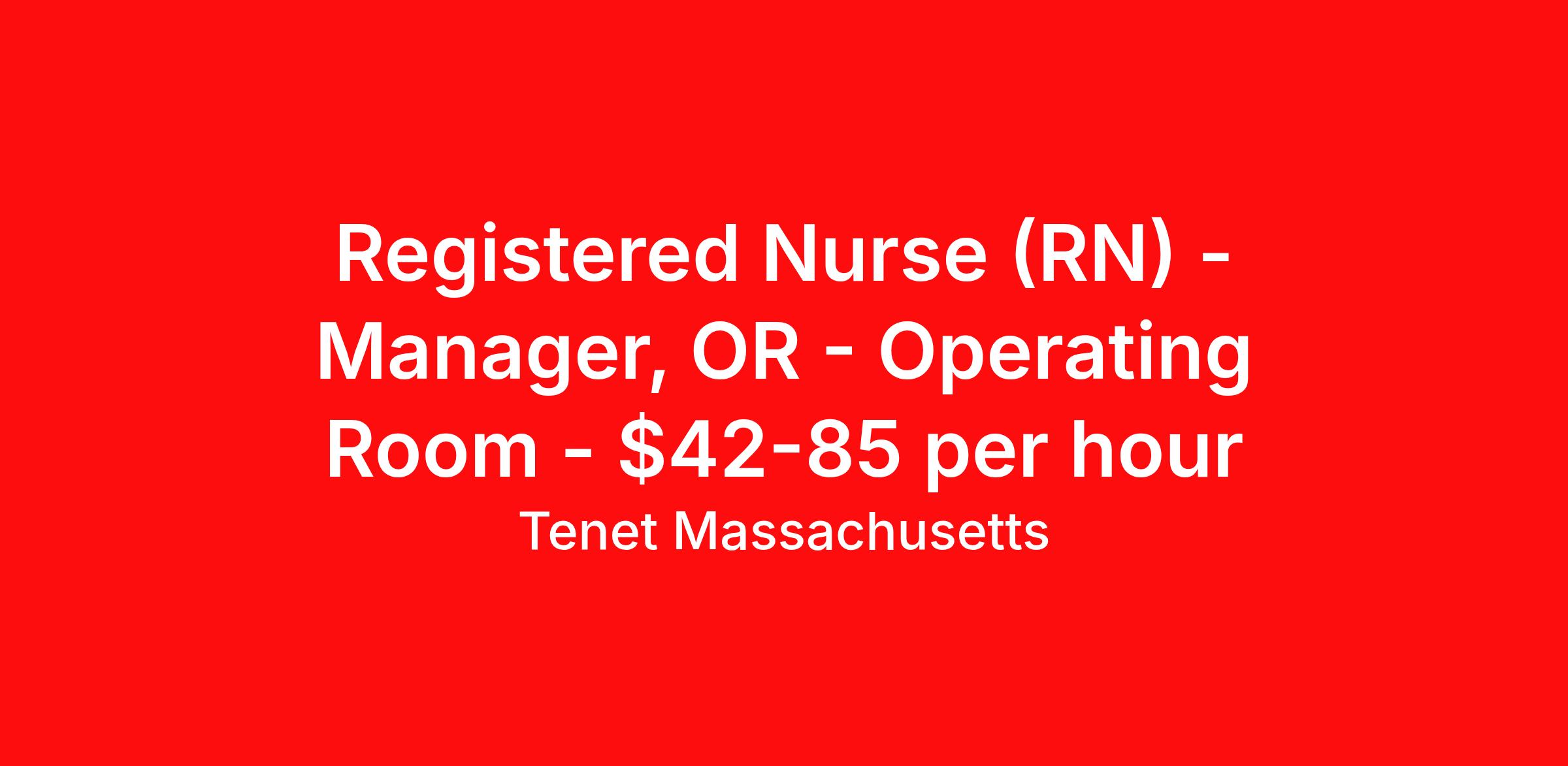 Tenet Massachusetts is seeking a Registered Nurse (RN) Manager, OR - Operating Room for a nursing job in Ashland, Massachusetts. Job Description & Requirements Specialty: OR - Operating Room Discipline: RN Duration: Ongoing 36 hours per week Shift: 12 hours, days Employment Type: Staff This role provides leadership and support to the senior executive position (CNO) responsible for all nursing and other designated patient care functions/services within the hospital organization. The role will assume responsibility for assisting in assessing, planning, coordinating, implementing, and evaluating nursing practice on a unit level. Role assumes 24/7 responsibility of manager’s assigned areas. The role is accountable to support CNO to ensure high quality, safe and appropriate nursing care, competency of clinical staff, and appropriate resource management related to patient care. Active and current registered nurse license in the state of residence/practice. Has highly effective interpersonal and communication skills, proven leadership ability and hospital operational ability, and ability to serve as role model and advocate for the professional discipline of nursing. Performs related duties as required Required Minimum Education : Academic degree in nursing. Minimum Experience: 2 years of progressive management experience in a hospital environment as a manager or full-time charge nurse/related position. Preferred Education: Bachelor's or master's degree. Tenet Mass Job ID 2603002195. Posted job title: Registered Nurse Manager (RN) - Operating Room About Tenet Massachusetts Facilities: Saint Vincent Hospital – Worcester, MA MetroWest Medical Center – Framingham, MA Leonard Morse Hospital – Natick, MA (part of MWMC) MA - SVH Tenet’s Saint Vincent Hospital has been providing high-quality health care to Worcester and the surrounding communities for more than 125 years. At Saint Vincent Hospital, we believe you should have access to the treatments you need without having to travel far from home. We are proud to have been the first hospital in central Massachusetts to offer robotically assisted surgical procedures and minimally invasive, computer-assisted joint replacements. Among the distinctions that we have received include our designations as a Blue Distinction Center for Cardiac Services, Bariatric Surgery, and both Knee and Hip Replacement. We continue to be leaders in state-of-the-art treatments like our CyberKnife Radiosurgery, and our Cardiac Rehabilitation Program which offers a unique, specialized approach to overcoming heart health challenges. Healthgrades awarded Saint Vincent Hospital 1 in Cardiology in the state and one of America’s 100 Best Hospitals for Coronary Intervention in 2023 and 2024, which puts Saint Vincent Hospital in the top 5% of hospitals nationwide for coronary intervention. At Saint Vincent Hospital, you can grow your career skills through a wide range of specialties, and help support the overall health of our community. MA - MWMC Tenet’s MetroWest Medical Center has been serving the community since we opened as the first public medical facility in Framingham in 1893. MetroWest Medical Center is comprised of Framingham Union Hospital and Leonard Morse Hospital, a unique behavioral health specialty center located in Natick dedicated to the mental health of our community. At Framingham Union Hospital, you’ll find comprehensive health care services for your entire family including 24-hour emergency care, advanced cardiac care, high-tech cancer treatments, and advanced maternity care including our Special Care Level IIB nursery and high risky pregnancy care. MetroWest Medical Center was recognized by the Joint Commission with a Gold Seal of Approval, a symbol of quality that reflects our commitment to meeting performance standards and providing safe and effective patient care. Our skilled cardiac team has been recognized as one of Healthgrades’ America’s 100 best hospitals for Coronary Intervention and ranked among the top 5% in the nation for coronary interventional procedures in 2023. At MetroWest Medical Center, you can grow your career skills and be a vital member of our team dedicated to improving the health of our community. Benefits Medical benefits Dental benefits 401k retirement plan