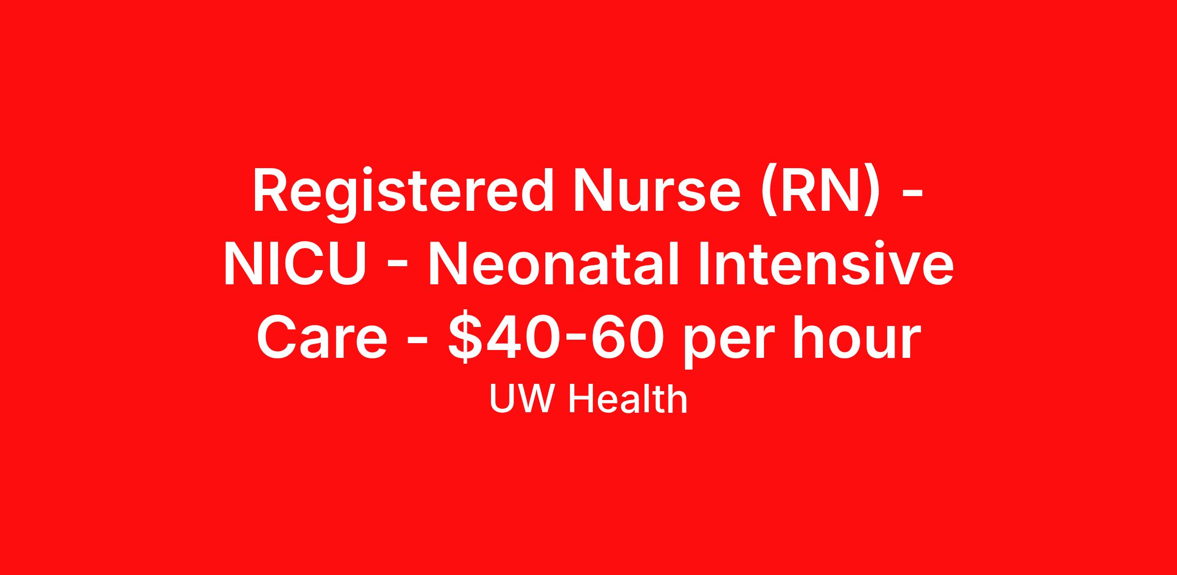 Registered Nurse (RN) - NICU - Neonatal Intensive Care - $40-60 per hour