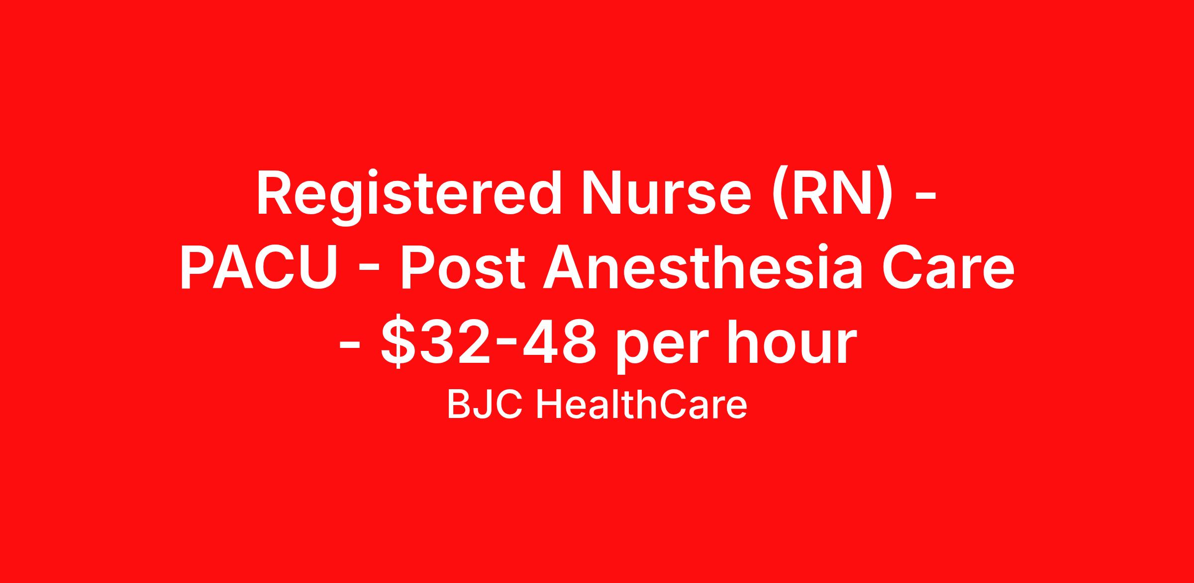 Registered Nurse (RN) - PACU - Post Anesthesia Care - $32-48 per hour