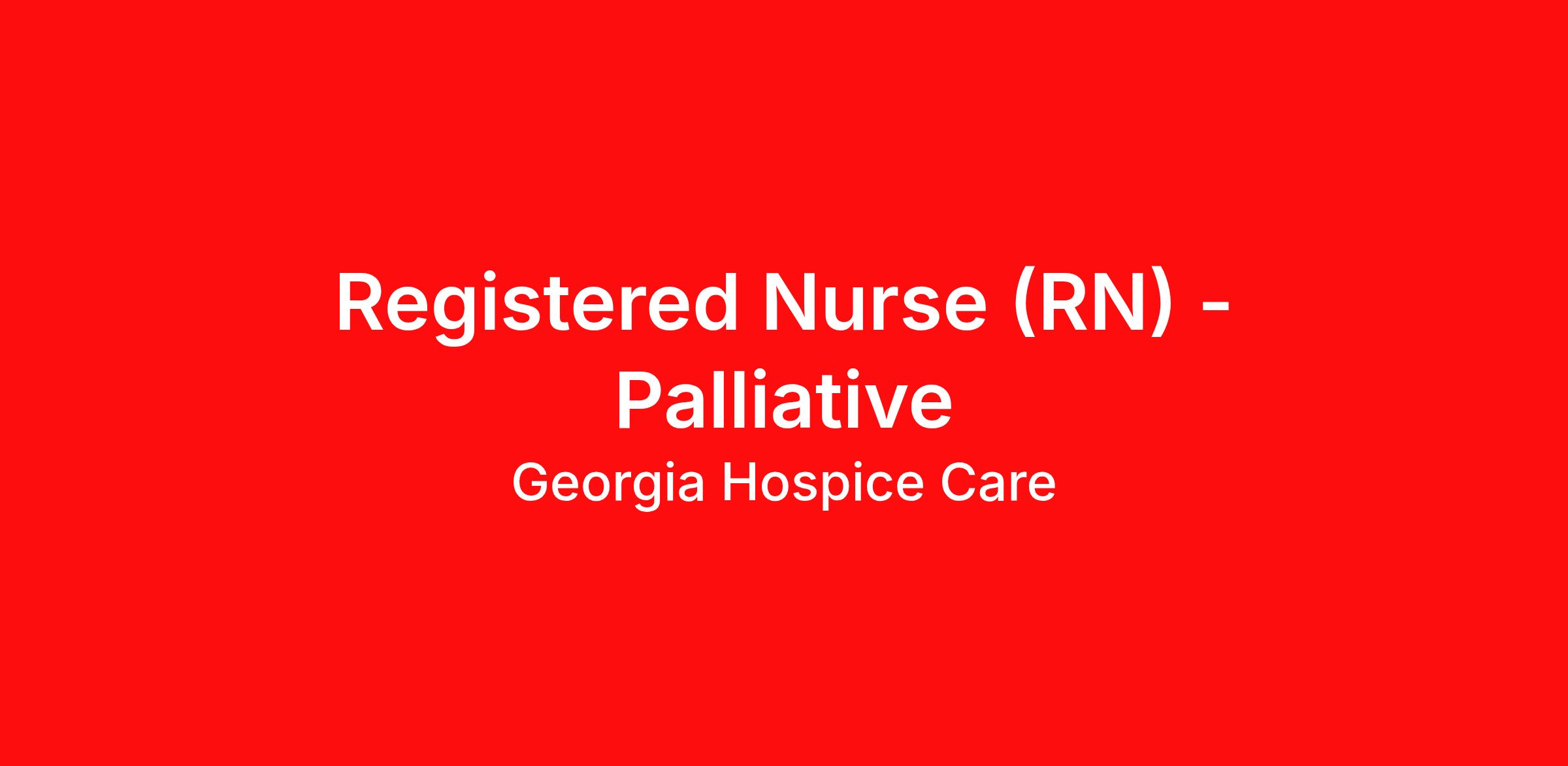 Overview: Become a Registered Nurse with Georgia Hospice Care (PRN) Do you value the time you spend with your patients? Is it important to you that your patients and their families know and feel that you are with them? As a registered nurse at Georgia Hospice Care, you’ll evaluate patients and create care plans, all while communicating with everyone involved — the patient, the patient’s family, and the care team. You’ll serve as the driver of our care team to ensure every patient receives quality care. And just like all of our team members, our RNs have access to Georgia Hospice Care’s supportive leadership team and professional development opportunities with plenty of room for advancement. There are Benefits to Joining the Georgia Hospice Care Team! Tuition Reimbursement Immediate Access to Paid Time Off Employee Referral Program Bonus Eligibility Matching 401K Annual Merit Increases Years of Service Award Bonuses Pet Insurance Financial and Legal Assistance Program Mental Health and Counseling Programs Dental and Orthodontic Coverage Vision Insurance Health Care with Low Premiums $500 Matching Health Savings Account Short-term and Long-term Disability Virgin Pulse Wellness Program Fertility Assistance Program About Georgia Hospice Care A leading hospice and palliative care provider in Georgia, Georgia Hospice Care is dedicated to serving patients and families with love and delivering the highest quality care. With a career at Georgia Hospice Care, you’ll not only have the opportunity to use your skills to make a real difference, but you’ll also be part of an inclusive, respectful work environment filled with peers who have answered the call to care for others. Our Company Mission Georgia Hospice Care’s mission is to serve with love, providing comfort and support through compassionate care and meaningful experiences. For our team members, these aren’t empty words. In every interaction, no matter how big or small, we’re dedicated to providing a superior experience for patients facing life-limiting illnesses and their families. Qualifications: A heart to serve patients and families and a passion for providing the best possible care Education: Graduate of an accredited school of nursing with a current state license as a registered nurse Experience: 2 years of nursing experience in a clinical care setting (hospice experience preferred) Required: Reliable transportation. Ability to sit, stand, bend, move intermittently and lift at least 80-100 lbs and bear the weight of an average adult effectively We’ve worked hard to build a caring culture of integrity, communication, diversity and positive experiences, and we’d love for you to join our team. *Pay is determined by years of experience and location. Appcast Apply Goal Priority: Hot