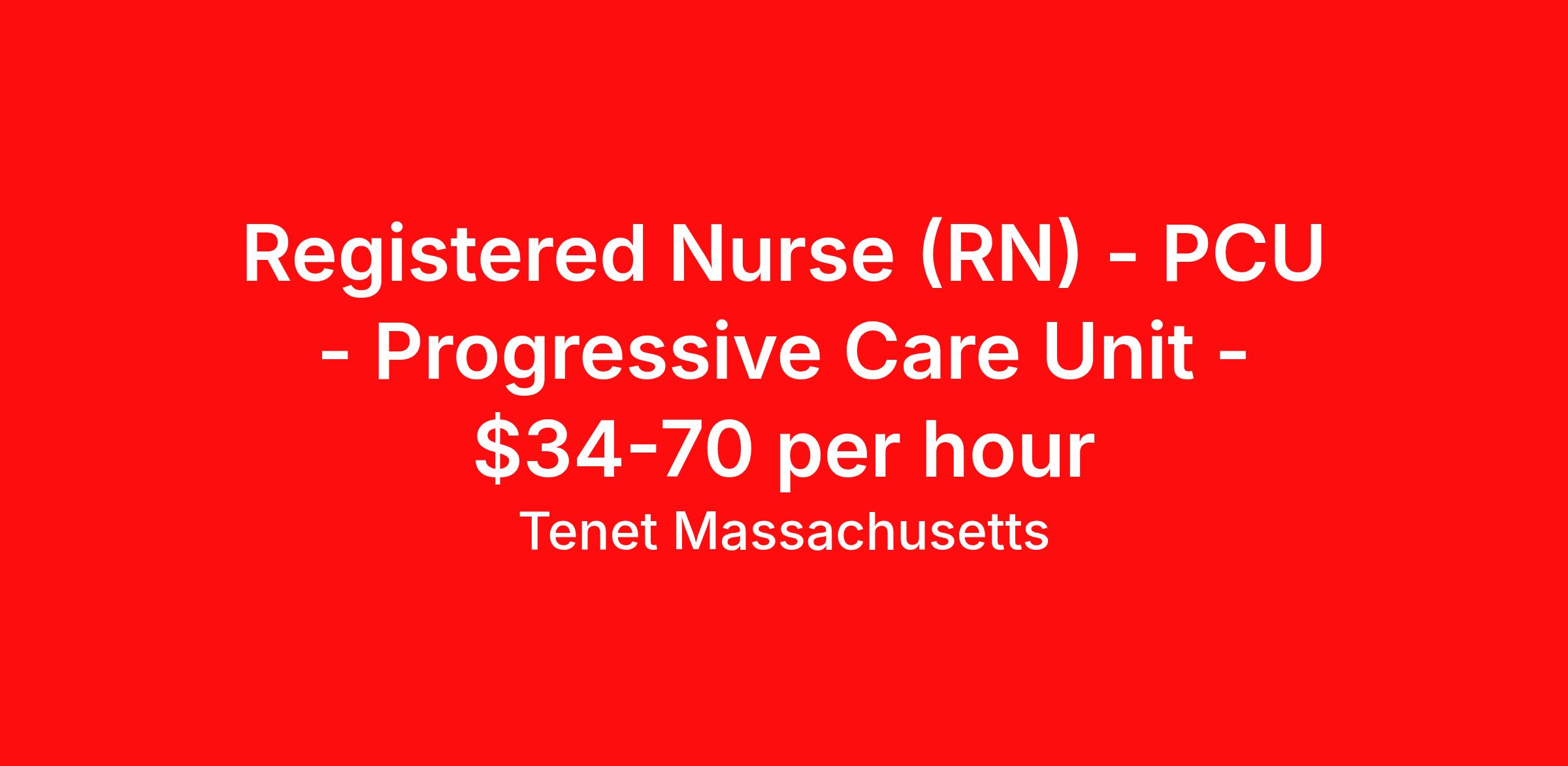 Tenet Massachusetts is seeking a Registered Nurse (RN) PCU - Progressive Care Unit for a nursing job in Worcester, Massachusetts. Job Description & Requirements Specialty: PCU - Progressive Care Unit Discipline: RN Duration: Ongoing 36 hours per week Shift: 12 hours, nights Employment Type: Staff Up to $ 12,500 Sign-on Bonus Based on Eligibility Saint Vincent Hospital offers a whole new experience in health care. By combining our advanced, state-of-the-art facility with our commitment to providing the best quality of life to the many members of our Worcester community. Saint Vincent Hospital excels at offering the best care in a friendly atmosphere. From our advanced heart and vascular services, to our comprehensive orthopedics and rehabilitation programs, our robust surgical facility including our Da Vinci robotic surgery and Cyberknife technology, to our comfortable and compassionate women & infants programs - you don't have to travel far for high-quality health care: We're right here, in the heart of Worcester. Onboarding Process: Please be advised that candidates must successfully complete a background check and pre-employment health screening which includes a drug screen. Position Summary: This role provides direct clinical patient care. The role will assume responsibility for assessing, planning, implementing direct clinical care to assigned patients on a per shift basis, and unit level. The role is responsible for supervision of staff to which appropriate care is delegated. The role is accountable to support CNO to ensure high quality, safe and appropriate nursing care, competency of clinical staff, and appropriate resource management related to patient care. Has effective interpersonal and communication skills and ability to serve as role model and advocate for the professional discipline of nursing. Qualifications: Education: Required: Graduated from a state approved school of nursing or an accredited school. Preferred: Academic degree in nursing (bachelor's or master's degree). Certifications: Required: Currently licensed, certified, or registered to practice profession as required by law, regulation in state of practice or policy; CPR. Tenet complies with federal, state, and/or local laws regarding mandatory vaccination of its workforce. If you are offered this position and must be vaccinated under any applicable law, you will be required to show proof of full vaccination or obtain an approval of a religious or medical exemption prior to your start date. If you receive an exemption from the vaccination requirement, you will be required to submit to regular testing in accordance with the law. Tenet Mass Job ID 2403028368. Posted job title: Registered Nurse (RN) - PCU About Tenet Massachusetts Facilities: Saint Vincent Hospital – Worcester, MA MetroWest Medical Center – Framingham, MA Leonard Morse Hospital – Natick, MA (part of MWMC) MA - SVH Tenet’s Saint Vincent Hospital has been providing high-quality health care to Worcester and the surrounding communities for more than 125 years. At Saint Vincent Hospital, we believe you should have access to the treatments you need without having to travel far from home. We are proud to have been the first hospital in central Massachusetts to offer robotically assisted surgical procedures and minimally invasive, computer-assisted joint replacements. Among the distinctions that we have received include our designations as a Blue Distinction Center for Cardiac Services, Bariatric Surgery, and both Knee and Hip Replacement. We continue to be leaders in state-of-the-art treatments like our CyberKnife Radiosurgery, and our Cardiac Rehabilitation Program which offers a unique, specialized approach to overcoming heart health challenges. Healthgrades awarded Saint Vincent Hospital 1 in Cardiology in the state and one of America’s 100 Best Hospitals for Coronary Intervention in 2023 and 2024, which puts Saint Vincent Hospital in the top 5% of hospitals nationwide for coronary intervention. At Saint Vincent Hospital, you can grow your career skills through a wide range of specialties, and help support the overall health of our community. MA - MWMC Tenet’s MetroWest Medical Center has been serving the community since we opened as the first public medical facility in Framingham in 1893. MetroWest Medical Center is comprised of Framingham Union Hospital and Leonard Morse Hospital, a unique behavioral health specialty center located in Natick dedicated to the mental health of our community. At Framingham Union Hospital, you’ll find comprehensive health care services for your entire family including 24-hour emergency care, advanced cardiac care, high-tech cancer treatments, and advanced maternity care including our Special Care Level IIB nursery and high risky pregnancy care. MetroWest Medical Center was recognized by the Joint Commission with a Gold Seal of Approval, a symbol of quality that reflects our commitment to meeting performance standards and providing safe and effective patient care. Our skilled cardiac team has been recognized as one of Healthgrades’ America’s 100 best hospitals for Coronary Intervention and ranked among the top 5% in the nation for coronary interventional procedures in 2023. At MetroWest Medical Center, you can grow your career skills and be a vital member of our team dedicated to improving the health of our community. Benefits Medical benefits Dental benefits 401k retirement plan