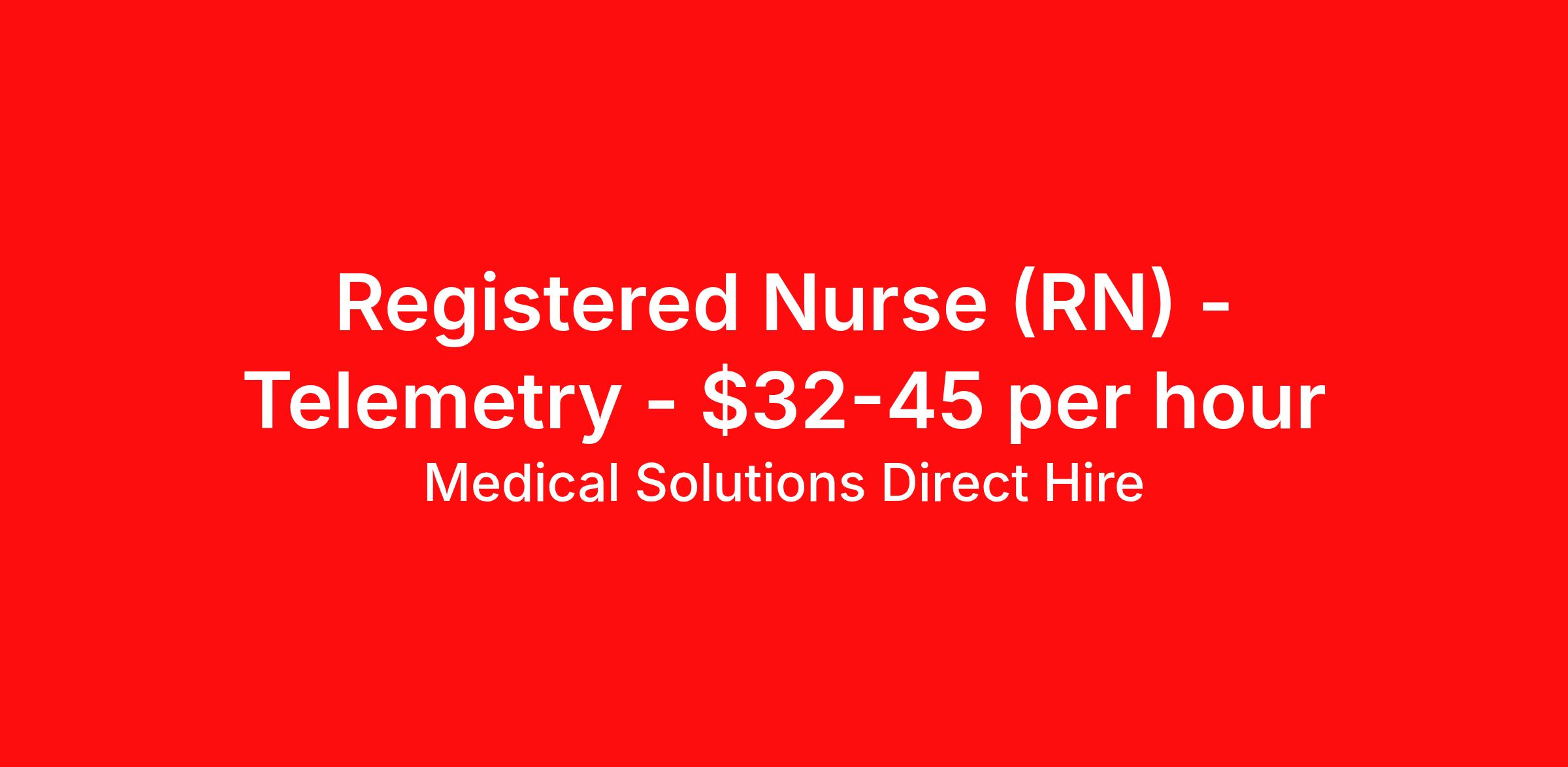 Medical Solutions Direct Hire is seeking a Registered Nurse (RN) Telemetry for a nursing job in Kingman, Arizona. Job Description & Requirements Specialty: Telemetry Discipline: RN Duration: Ongoing 36 hours per week Shift: 12 hours, nights Employment Type: Staff Date posted: January 28, 2026 Pay: $59,904 – $85,532 per year Job Description Med/Tele Float Registered Nurse Opportunity – Kingman, Arizona Direct Hire | Full-Time | Night Shift A patient-centered healthcare organization in Kingman, Arizona is hiring a Med/Tele Float Registered Nurse for a permanent, full-time role. This position offers consistent night shifts, a strong compensation package, modern charting systems, and the opportunity to work across multiple units in a dynamic clinical environment. A $15,000 sign-on bonus and $4,000 relocation assistance are included. Position Overview · Permanent, full-time role · 36 hours per week · Night shift · MEDITECH electronic medical record system · Float between Medical-Surgical and Telemetry units Shift Details · 3 shifts per week · 12-hour night shifts Compensation & Incentives · Salary range: $59,904 – $85,532 annually (based on experience) · $15,000 sign-on bonus · $4,000 relocation assistance · Comprehensive benefits package Key Responsibilities · Provide direct nursing care across Med/Surg and Telemetry units · Monitor cardiac rhythms and respond to patient condition changes · Administer medications, treatments, and IV therapies · Accurately document patient care in MEDITECH · Collaborate with physicians and interdisciplinary care teams · Educate patients and families on care plans and discharge instructions · Maintain patient safety and quality care standards Requirements · Active Registered Nurse (RN) license (Required) · BLS Certification (Required) · ACLS Certification (Required) · Minimum 1 year of nursing experience (Required) Why This Opportunity This role is ideal for an adaptable RN who enjoys variety, building strong clinical skills, and working in a fast-paced hospital setting. The organization values teamwork, professional growth, and provides strong financial incentives alongside a supportive culture. Why Kingman, Arizona : · Affordable cost of living · Scenic desert landscapes and outdoor recreation · Easy access to Las Vegas, Phoenix, and Flagstaff · Relaxed lifestyle with a strong community feel Job Type: Full-time Benefits : · Health insurance · Dental insurance · Vision insurance · Paid time off · Retirement plan · Sign-on bonus · Relocation assistance · Career advancement opportunities Work Location: In person Selected candidates will be contacted directly to discuss experience, background, and next steps in the interview process. Please contact Joseph Hojecki, Direct Hire Recruiter, with any questions at About Medical Solutions Direct Hire At Medical Solutions, we’re people who care, helping people who care. No matter how you look at it, there’s a whole lot of care going on in our world and that’s just the way we like it. What do we do? Medical Solutions is one of the nation’s largest providers of total workforce solutions in the healthcare industry, connecting nurses and allied health clinicians with hospitals and healthcare systems across the country and around the corner. Through our family of brands, we also serve a segment of clients outside of the healthcare space. And we’re the very best at what we do. You’ll love our culture that’s filled with heart and soul. As a company and employer, we’re sincerely and unabashedly us. We lead as humans first and believe the unique qualities of each team member make us better together. We share a purpose for helping others and the drive to make a difference. And we offer endless opportunities for personal and professional growth, throughout your career. At Medical Solutions, you’ll find a great place to work and a career home. We’ve received Best Places to Work awards, landed top industry awards, and received accolades for the impact we’ve made in business and within our community. But the only way to really get to know us, is to join us. We think you’ll fit right in.