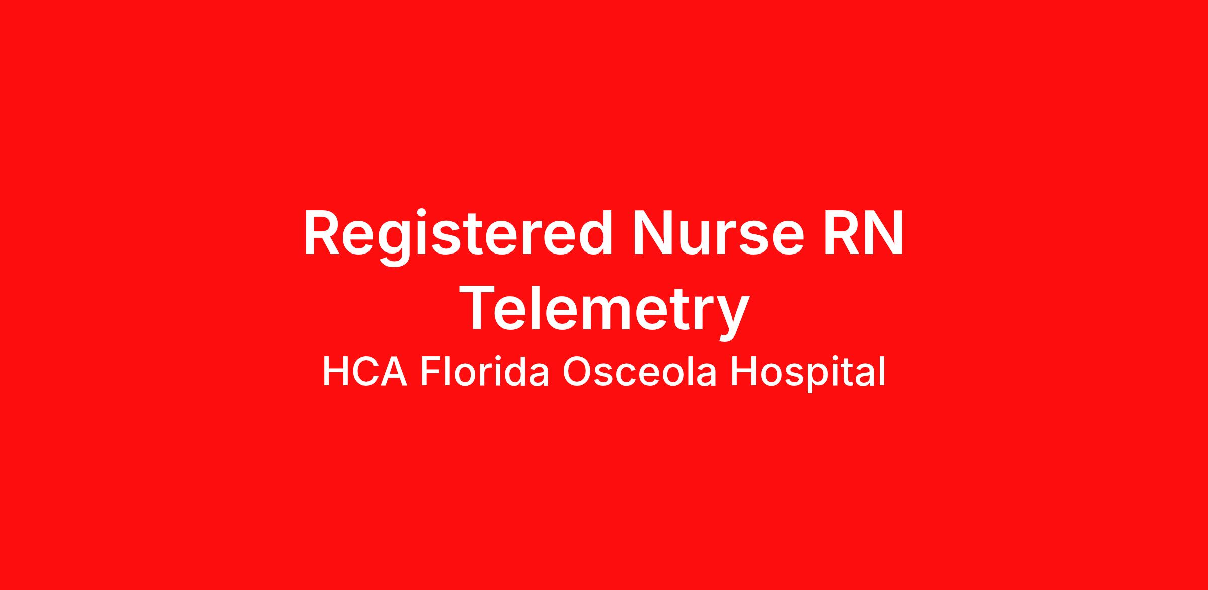 Introduction Are you passionate about the patient experience? At HCA Healthcare, we are committed to caring for patients with purpose and integrity. We care like family! Jump-start your career as a(an) Registered Nurse RN Telemetry today with HCA Florida Osceola Hospital. Benefits HCA Florida Osceola Hospital offers a total rewards package that supports the health, life, career and retirement of our colleagues. The available plans and programs include: Comprehensive medical coverage that covers many common services at no cost or for a low copay. Plans include prescription drug and behavioral health coverage as well as free telemedicine services and free AirMed medical transportation. Additional options for dental and vision benefits, life and disability coverage, flexible spending accounts, supplemental health protection plans (accident, critical illness, hospital indemnity), auto and home insurance, identity theft protection, legal counseling, long-term care coverage, moving assistance, pet insurance and more. Free counseling services and resources for emotional, physical and financial wellbeing 401(k) Plan with a 100% match on 3% to 9% of pay (based on years of service) Employee Stock Purchase Plan with 10% off HCA Healthcare stock Family support through fertility and family building benefits with Progyny and adoption assistance. Referral services for child, elder and pet care, home and auto repair, event planning and more Consumer discounts through Abenity and Consumer Discounts Retirement readiness, rollover assistance services and preferred banking partnerships Education assistance (tuition, student loan, certification support, dependent scholarships) Colleague recognition program Time Away From Work Program (paid time off, paid family leave, long- and short-term disability coverage and leaves of absence) Employee Health Assistance Fund that offers free employee-only coverage to full-time and part-time colleagues based on income. Learn more about Employee Benefits Note: Eligibility for benefits may vary by location. Come join our team as a(an) Registered Nurse RN Telemetry. We care for our community! Just last year, HCA Healthcare and our colleagues donated $13.8 million dollars to charitable organizations. Apply Today! Job Summary and Qualifications Job Summary: We are seeking a dynamic Medical Surgical RN to join our team. We need a compassionate and reliable RN to provide care and treatment to ill, injured, and recovering adults in our patient centered care model. In this role you will be required to make clinical assessments of situations and manage treatment autonomously. You would be part of a phenomenal team that works hard to support each other while providing excellent care to our patients in a collaborative manner. WHAT YOU WILL DO IN THIS ROLE: Collect comprehensive data pertinent to the patient’s health or situation Advocate for patients as part of the interdisciplinary team Analyze the assessment data to determine the diagnosis or issues Identify expected outcomes for a plan individualized to the patient and the situation Act as an advocate for patient safety. Ensure effective care and use of time, supplies, and equipment. Educate patients regarding their medications, procedure and treatments, providing patients and their families with support throughout their stay. Requirements: Florida RN license and/or approved multistate RN license required. Compact license holders have 60 days to obtain the Florida license after relocation. BLS-AHA Provider issued card required within 30 days of start Nursing Diploma or ASN; BSN preferred. 1 year of RN experience in an Acute Care environment preferred NIH Stroke Scale must be obtained within 30 days of employment start date HCA Florida Osceola Hospital is a 404-bed tertiary care hospital. We are accredited by the Joint Commission and are a Level II Trauma Center. We are a teaching hospital in collaboration with UCF College of Medicine. Our hospital is conveniently and centrally located in the Heart of Kissimmee. We are only minutes from Orlando, St. Cloud, Celebration, and Poinciana. We are committed to enhancing the standard of healthcare by providing services including Emergency Care, Trauma Care, Pediatric ER, Heart & Vascular Institute, and Comprehensive Stroke Center. Other services include The Baby Suites Maternity Care, Neonatal Intensive Care Unit Level II, Women’s Services, Behavioral Health, Orthopedics & Spine, and a Graduate Medical Education Program. We expand our care to the community with our freestanding Emergency Department at Hunter’s Creek ER. HCA Healthcare has been recognized as one of the World’s Most Ethical Companies® by the Ethisphere Institute more than ten times. In recent years, HCA Healthcare spent an estimated $3.7 billion in cost for the delivery of charitable care, uninsured discounts, and other uncompensated expenses. "The great hospitals will always put the patient and the patient's family first, and the really great institutions will provide care with warmth, compassion, and dignity for the individual."- Dr. Thomas Frist, Sr. HCA Healthcare Co-Founder If you are looking for an opportunity that provides satisfaction and personal growth, we encourage you to apply for our Registered Nurse RN Telemetry opening. We promptly review all applications. Highly qualified candidates will be contacted for interviews. Unlock the possibilities and apply today! We are an equal opportunity employer. We do not discriminate on the basis of race, religion, color, national origin, gender, sexual orientation, age, marital status, veteran status, or disability status.