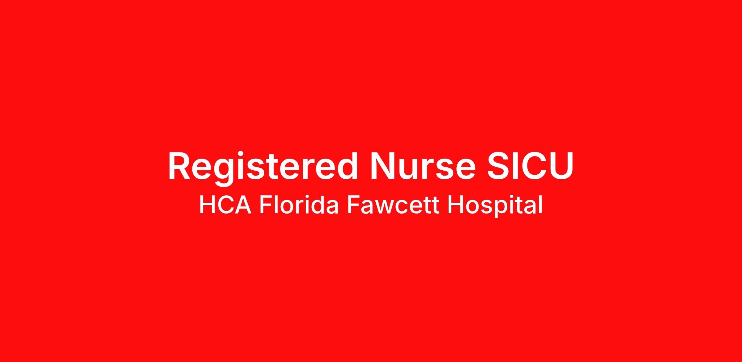 Sign on $15,000 Introduction Last year our HCA Healthcare colleagues invested over 156,000 hours volunteering in our communities. As a Registered Nurse SICU with HCA Florida Fawcett Hospital you can be a part of an organization that is devoted to giving back! Benefits HCA Florida Fawcett Hospital offers a total rewards package that supports the health, life, career and retirement of our colleagues. The available plans and programs include: Comprehensive medical coverage that covers many common services at no cost or for a low copay. Plans include prescription drug and behavioral health coverage as well as free telemedicine services and free AirMed medical transportation. Additional options for dental and vision benefits, life and disability coverage, flexible spending accounts, supplemental health protection plans (accident, critical illness, hospital indemnity), auto and home insurance, identity theft protection, legal counseling, long-term care coverage, moving assistance, pet insurance and more. Free counseling services and resources for emotional, physical and financial wellbeing 401(k) Plan with a 100% match on 3% to 9% of pay (based on years of service) Employee Stock Purchase Plan with 10% off HCA Healthcare stock Family support through fertility and family building benefits with Progyny and adoption assistance. Referral services for child, elder and pet care, home and auto repair, event planning and more Consumer discounts through Abenity and Consumer Discounts Retirement readiness, rollover assistance services and preferred banking partnerships Education assistance (tuition, student loan, certification support, dependent scholarships) Colleague recognition program Time Away From Work Program (paid time off, paid family leave, long- and short-term disability coverage and leaves of absence) Employee Health Assistance Fund that offers free employee-only coverage to full-time and part-time colleagues based on income. Learn more about Employee Benefits Note: Eligibility for benefits may vary by location. Would you like to unlock your potential with a leading healthcare provider dedicated to the growth and development of our colleagues? Join the HCA Florida Fawcett Hospital family! We will give you the tools and resources you need to succeed in our organization. We are looking for an enthusiastic Registered Nurse SICU to help us reach our goals. Unlock your potential! Job Summary and Qualifications The Registered Nurse coordinates and delivers high quality, patient-centered care in accordance with the nature and specific requirements of the department, and consistent with the scope and standards of practice for the relevant state and specialty. In collaboration with medical providers and other members of the care team, the RN provides individualized, comprehensive, and compassionate care using established nursing models such as “Assess, Perform, Teach, and Manage.” The RN serves as an advocate for patients/families/caregivers and models a commitment to the organization’s vision/mission/values to support an unparalleled patient experience and clinical outcomes that contribute to overall departmental performance. Performs procedures, monitoring, or other functions as ordered by the medical provider(s). Documents the administration of care in the patient medical record in a timely and thorough manner. Teaches patients/families/caregivers about patient medical condition, patient status, treatment plan, medications and possible side effects, and follow-up measures. Translates complex medical terminology to ensure complete understanding. Teaches patients/families/caregivers about any non-medicinal follow-up measures, such as healthy diet and exercise, disease prevention, and/or other lifestyle changes. Prepares patients and families/caregivers for future self-management. Manages evidence-based practices and continuous process improvement initiatives to meet and exceed quality measures and enhance the exceptional care provided to patients. Manages the quality of care by collaborating with a multidisciplinary team to coordinate, evaluate, customize, and deliver a holistic patient treatment plan that promotes and supports recovery. What qualifications you will need: Advanced Cardiac Life Spt must be obtained within 6 months of employment start date Basic Cardiac Life Support must be obtained within 30 days of employment start date NIH Stroke Scale must be obtained within 6 months of employment start date (RN) Registered Nurse Associate Degree HCA Florida Fawcett Hospital is a 237 bed acute care hospital. We serve Charlotte County. We have emergency care, an accredited cancer program, a stroke center of excellence and a chest pain center. We have an orthopedic and spine center, wound management and hyperbaric medicine. We have inpatient, outpatient and cardiovascular surgery. We have sports and rehabilitation services and outpatient programs. HCA Florida Fawcett Hospital provides community wellness programs. We have provided healthcare in Charlotte County for 40 years. Our colleagues enjoy our culture of compassion, respect and service. Over 350 area physicians work with us. We have received the America's top 100 hospital recognition. This makes us one of the best hospitals in Charlotte County. We hope you'll consider a career at HCA Florida Fawcett Hospital. HCA Healthcare has been recognized as one of the World's Most Ethical Companies® by the Ethisphere Institute more than ten times. In recent years, HCA Healthcare spent an estimated $3.7 billion in cost for the delivery of charitable care, uninsured discounts, and other uncompensated expenses. "There is so much good to do in the world and so many different ways to do it."- Dr. Thomas Frist, Sr. HCA Healthcare Co-Founder Be a part of an organization that invests in you! We are reviewing applications for our Registered Nurse SICU opening. Qualified candidates will be contacted for interviews. Submit your application and help us raise t