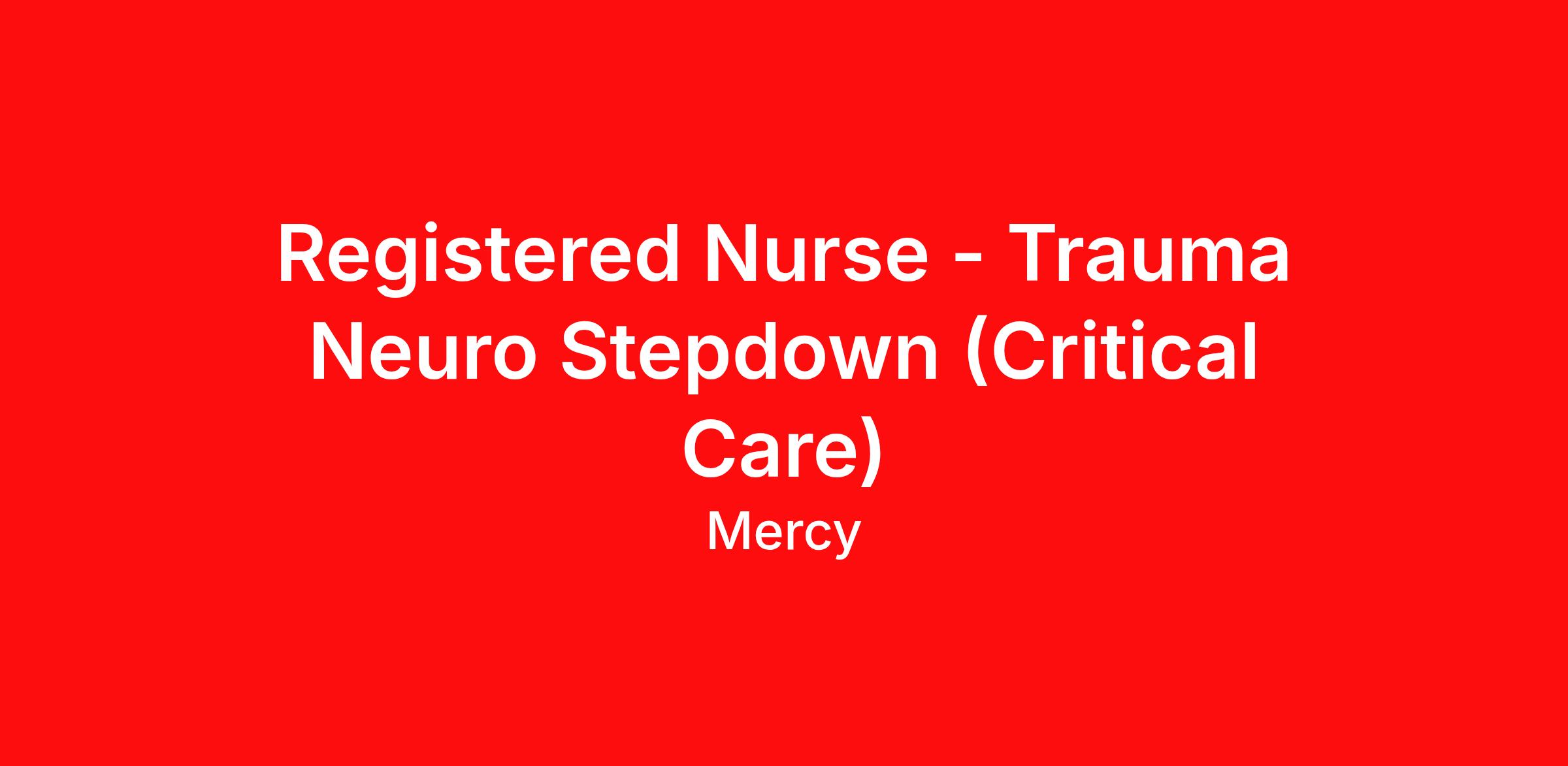 Registered Nurse - Trauma Neuro Stepdown (Critical Care)