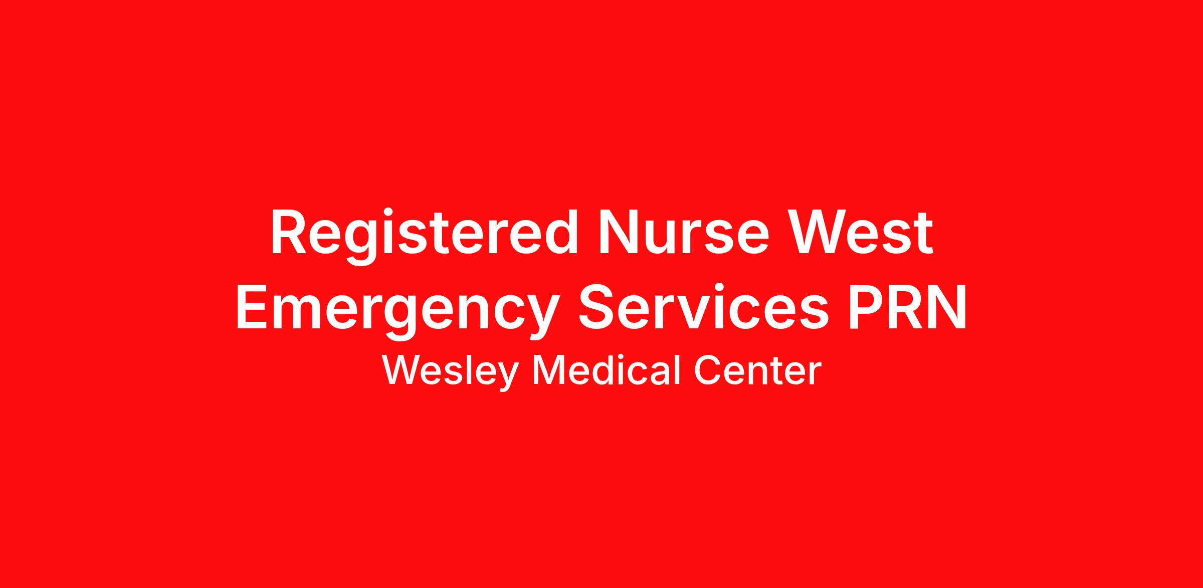 Introduction Wesley Medical Center is committed to investing in the latest technology enabling nurses to work more efficiently. Are you passionate about delivering patient-centered care?Submit your application for Registered Nurse West Emergency Services position and spend more time at the bedside with the patient. Benefits Wesley Medical Center, offers a total rewards package that supports the health, life, career and retirement of our colleagues. The available plans and programs include: Comprehensive medical coverage that covers many common services at no cost or for a low copay. Plans include prescription drug and behavioral health coverage as well as free telemedicine services and free AirMed medical transportation. Additional options for dental and vision benefits, life and disability coverage, flexible spending accounts, supplemental health protection plans (accident, critical illness, hospital indemnity), auto and home insurance, identity theft protection, legal counseling, long-term care coverage, moving assistance, pet insurance and more. Free counseling services and resources for emotional, physical and financial wellbeing 401(k) Plan with a 100% match on 3% to 9% of pay (based on years of service) Employee Stock Purchase Plan with 10% off HCA Healthcare stock Family support through fertility and family building benefits with Progyny and adoption assistance. Referral services for child, elder and pet care, home and auto repair, event planning and more Consumer discounts through Abenity and Consumer Discounts Retirement readiness, rollover assistance services and preferred banking partnerships Education assistance (tuition, student loan, certification support, dependent scholarships) Colleague recognition program Time Away From Work Program (paid time off, paid family leave, long- and short-term disability coverage and leaves of absence) Employee Health Assistance Fund that offers free employee-only coverage to full-time and part-time colleagues based on income. Learn more about Employee Benefits Note: Eligibility for benefits may vary by location. You contribute to our success let us contribute to yours! Whether you choose to focus on bedside care, a leadership or C-suite role, shape business and operational outcomes, or work to deliver clinical excellence behind the scenes in data science, case management or transfer centers. Unlock your potential at Wesley Medical Center! Job Summary and Qualifications Responsible for the delivery of patient care through the nursing process of assessment, diagnosis, planning, implementation and evaluation. Responsible for directing and coordinating all nursing care for the department-specific patient population in accordance with the standards of nursing care and practice as defined by Wesley Medical Center and the Kansas Nurse Practice Act. Collaborates with other professional disciplines to ensure effective and efficient patient care delivery and achievement of desired patient outcomes. Supports the organization vision and mission. Utilizes knowledge of patient's age and culture in the provision patient care. Contributes to the provision of quality nursing care through performance improvement techniques that demonstrate positive outcomes in patient care. Delivers patient-centered nursing care in accordance with standards of care defined by Wesley Medical Center. Systematically evaluates the quality and effectiveness of nursing practice by participation in quality of care activities to initiate, implement, and sustain process improvements. Acquires and maintains current knowledge in nursing practice and education. Monitors the patient’s progress toward the attainment of outcomes. Contributes to the professional development of peers, colleagues and others. Collaborates with the patient, significant others and health care providers in providing and advocating for patient care. Considers safety and cost effectiveness when delivering patient care. Decisions and actions on behalf of patients are determined in an ethical manner. Participates in the improvement of operational functions of the department. Establishes and maintains effective and respectful communication in development of all collaborative relationships. Evaluates and participates in opportunities for outstanding service to all customers and accepts responsibility in partnership that is equally respectful to everyone. Demonstrates the ability to apply knowledge of age-appropriate competencies to department specific population. Ability to utilize critical thinking and problem solving skills to identify, interpret, and access appropriate resources in patient specific scenario(s). Secures, administers and handles medication according to established guidelines. Performs other duties as assigned What qualifications you will need: Advanced Cardiac Life Support must be obtained within 90 days of employment start date Basic Cardiac Life Support must be obtained within 30 days of employment start date Emergency Nurse Pediatric Course must be obtained within 60 months of employment start date Nonviolent Crisis Intervention must be obtained within 90 days of employment start date PALS Pediatric Adv Life Supt must be obtained within 90 days of employment start date Trauma Nursing Core Course must be obtained within 60 months of employment start date (RN) Registered Nurse Registered Nurse Diploma For more than 100 years, Wesley Healthcare has provided exceptional care to thousands of families in Wichita and throughout Kansas and Northern Oklahoma. Wesley Medical Center is a member of the Wesley Healthcare network within Greater Wichita and has been an HCA Healthcare hospital since 1985. Our physicians treat more than24,000 patients annually, making Wesley Medical Center the most preferred hospital in Kansas and northern Oklahoma. Additionally, our obstetricians and childbirth staff deliver more than 6,000 babies each year, more than any hospital in a 13-state region. Home to Wesley Children's H