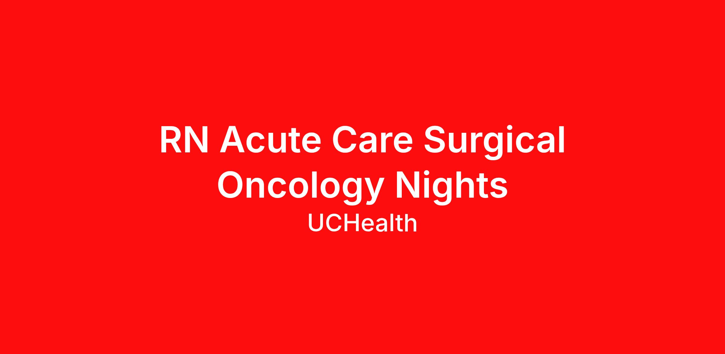 Description Location: UCHealth Anschutz Inpatient Pavilion, US:CO:Aurora Department: Surgical Oncology FTE: Full Time, 0.9, 72.00 hours per pay period (2 weeks) Shift: Nights Pay: $35.29 - $54.71 / hour. Pay is dependent on applicant's relevant experience Minimum Requirements: Graduate of an accredited or state board of nursing approved Registered/Professional Nursing program if less than 3 years' experience. State licensure as a Registered Nurse (RN). 6 months of nursing (RN) experience. BLS through the American Heart Association or the American Red Cross CPR for the Professional Rescuer with card in-hand before start date. BLS or CPR card must be good through sixty days of hire. At UCHealth, We Improve Lives Picture yourself on a dynamic team improving lives in the following way(s): Provides top of scope practice in direct patient care utilizing the nursing process Values a multidisciplinary team approach to achieve exceptional outcomes Prioritizes wellness, a patient perspective and evidence-based practice Models proficiency through precepting those new to healthcare and/or UCHealth Welcomes new knowledge in a fast paced, innovative clinical environment Contributes to secure safety and quality at the point of care Acute Care: Direct care includes specialty Acute Care (Med-Surg) Units of moderate to high patient acuity AMSN's core curriculum and various specialty certification standards are included in evidence based care models for each unit We improve lives. In big ways through learning, healing, and discovery. In small, personal ways through human connection. But in all ways, we improve lives. UCHealth invests in its Workforce. UCHealth offers a Three Year Incentive Bonus to recognize employee's contributions to our success in quality, patient experience, organizational growth, financial goals, and tenure with UCHealth. The bonus accumulates annually each October and is paid out in October following completion of three years' employment. UCHealth offers their employees a competitive and comprehensive total rewards package: Medical, dental and vision coverage including coverage for eligible dependents 403(b) with employer matching contributions Time away from work: paid time off (PTO), paid family and medical leave (inclusive of Colorado FAMLI), leaves of absence; start your employment at UCHealth with PTO in your bank Employer-paid basic life and accidental death and dismemberment coverage with buy-up coverage options Employer paid short term disability and long-term disability with buy-up coverage options Wellness benefits Full suite of voluntary benefits such as flexible spending accounts for health care and dependent care, health savings accounts (available with HD/HSA medical plan only), identity theft protection, pet insurance, and employee discount programs Education benefits for employees, including the opportunity to be eligible for 100% of tuition, books and fees paid for by UCHealth for specific educational degrees. Other programs may qualify for up to $5,250 pre-paid by UCHealth or in the form of tuition reimbursement each calendar year Loan Repayment: UCHealth is a qualifying employer for the federal Public Service Loan Forgiveness (PSLF) program! UCHealth provides employees with free assistance navigating the PSLF program to submit their federal student loans for forgiveness through Savi. UCHealth always welcomes talent. This position will be open for a minimum of three days and until a top applicant is identified. UCHealth recognizes and appreciates the rich array of talents and perspectives that equal employment and diversity can offer our institution. As an equal opportunity employer, UCHealth is committed to making all employment decisions based on valid requirements. No applicant shall be discriminated against in any terms, conditions or privileges of employment or otherwise be discriminated against because of the individual's race, color, national origin, language, culture, ethnicity, age, religion, sex, disability, sexual orientation, gender, veteran status, socioeconomic status, or any other characteristic prohibited by federal, state, or local law. UCHealth does not discriminate against any qualified applicant with a disability as defined under the Americans with Disabilities Act and will make reasonable accommodations, when they do not impose an undue hardship on the organization. Who We Are (uchealth.org)