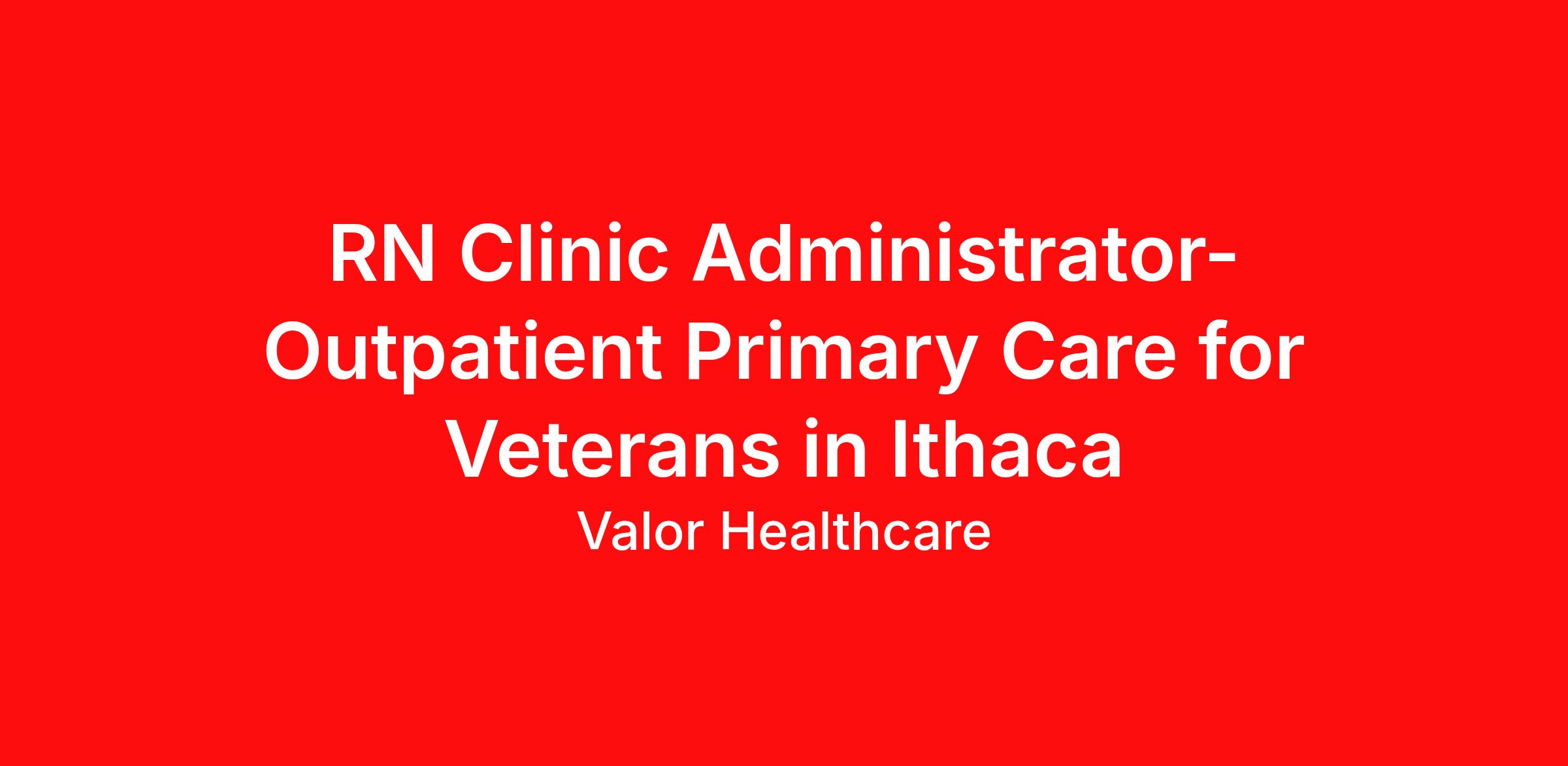 Valor Healthcare is looking for a passionate RN Clinic Administrator to join our team at the Community Based Outpatient Clinic (CBOC) in Ithaca. In exchange for your dedication and experience, we are proud to offer a competitive salary, excellent benefits, three weeks of PTO to start and a weekday schedule.