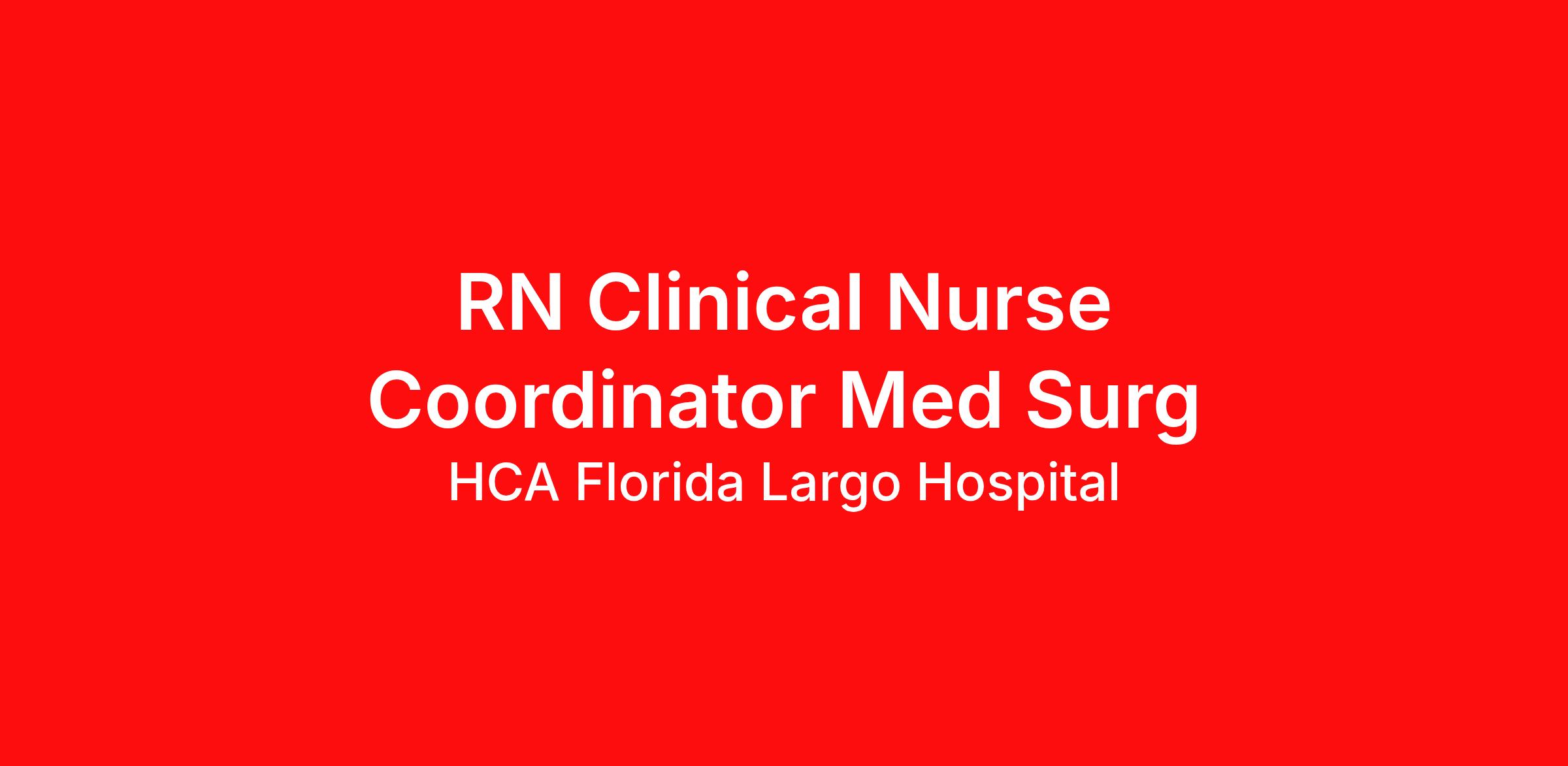 Introduction Do you want to be appreciated daily? Our nurses are celebrated for being on the front line, empathetic for patients. At HCA Florida Largo Hospital our nurses set us apart from any other healthcare provider. We are seeking a(an) RN Clinical Nurse Coordinator Med Surg to join our healthcare family. Benefits HCA Florida Largo Hospital, offers a total rewards package that supports the health, life, career and retirement of our colleagues. The available plans and programs include: Comprehensive medical coverage that covers many common services at no cost or for a low copay. Plans include prescription drug and behavioral health coverage as well as free telemedicine services and free AirMed medical transportation. Additional options for dental and vision benefits, life and disability coverage, flexible spending accounts, supplemental health protection plans (accident, critical illness, hospital indemnity), auto and home insurance, identity theft protection, legal counseling, long-term care coverage, moving assistance, pet insurance and more. Free counseling services and resources for emotional, physical and financial wellbeing 401(k) Plan with a 100% match on 3% to 9% of pay (based on years of service) Employee Stock Purchase Plan with 10% off HCA Healthcare stock Family support through fertility and family building benefits with Progyny and adoption assistance. Referral services for child, elder and pet care, home and auto repair, event planning and more Consumer discounts through Abenity and Consumer Discounts Retirement readiness, rollover assistance services and preferred banking partnerships Education assistance (tuition, student loan, certification support, dependent scholarships) Colleague recognition program Time Away From Work Program (paid time off, paid family leave, long- and short-term disability coverage and leaves of absence) Employee Health Assistance Fund that offers free employee-only coverage to full-time and part-time colleagues based on income. Learn more about Employee Benefits Note: Eligibility for benefits may vary by location. At HCA Florida Largo Hospital, our nurses play a vital part. We know that every nurse’s path and purpose is unique. Do you want to create your own personal career path in nursing? HCA Healthcare is your career destination! Our scale makes it possible for nurses to create the career path that fits their life – for life – and empowers their passion for patient care. Apply today for our RN Clinical Nurse Coordinator Med Surg opportunity. Job Summary and Qualifications The Clinical Nurse Coordinator (CNC) ensures and delivers high quality, patient-centered care and coordination of all functions in the unit/department during the designated shift. In collaboration with other members of the management team, the CNC directs, monitors, and evaluates nursing care in accordance with established policies/procedures, serves as a resource person for staff, and models a commitment to the organization’s vision/mission/values to support an unparalleled patient experience and clinical outcomes that contribute to overall departmental performance. What you will do in this role: Assists with admission and discharge processes to ensure efficient throughput and high quality, patient-centered care. Participates in the ongoing assessment of the quality of patient care services provided in the unit, in collaboration with other members of the management team. Collaborates with subject matter experts and other managers to create an environment of teamwork that supports improved outcomes and service. Supports a patient-first philosophy and engages in service recovery when necessary. Supports the efforts of the facility to improve engagement by operationalizing current nursing strategies, including employee rounding, hourly rounds, and other initiatives. Provides recommendations related to interviewing, selecting, and training new staff. Recommends and implements courses of action, including training and development, conflict resolution, personnel policy compliance, completion of performance evaluations, and/or disciplinary actions to ensure a competitively better organization. Assists with staff scheduling. Manages all practical aspects of staff labor in accordance with patient care needs and established productivity guidelines. Supports proper inventory control and assists with managing supplies and equipment. What qualifications you will need: Basic Cardiac Life Support must be obtained within 30 days of employment start date (RN) Registered Nurse Associate Degree HCA Florida Largo Hospital is the premier healthcare provider in Pinellas County and beyond with 455 beds and is part of HCA Florida Healthcare, the largest healthcare network in Florida. Our hospital offers a wide range of specialty services, including advanced cardiac care, complex GI services, kidney and liver transplantation, weight loss surgery, advanced stroke care, and robotic surgeries. Our Graduate Medical Education program is affiliated with USF Morsani College of Medicine, ensuring that our patients receive the highest quality care from the most skilled and knowledgeable medical professionals. Pick HCA Florida Largo Hospital for all your healthcare needs. HCA Healthcare has been recognized as one of the World's Most Ethical Companies® by the Ethisphere Institute more than ten times. In recent years, HCA Healthcare spent an estimated $3.7 billion in costs for the delivery of charitable care, uninsured discounts, and other uncompensated expenses. "The great hospitals will always put the patient and the patient's family first, and the really great institutions will provide care with warmth, compassion, and dignity for the individual."- Dr. Thomas Frist, Sr. HCA Healthcare Co-Founder Join a family that cares about every stage in your career! We are interviewing candidates for our RN Clinical Nurse Coordinator Med Surg opening. Apply today and a member of our Talent Acquisition team wil