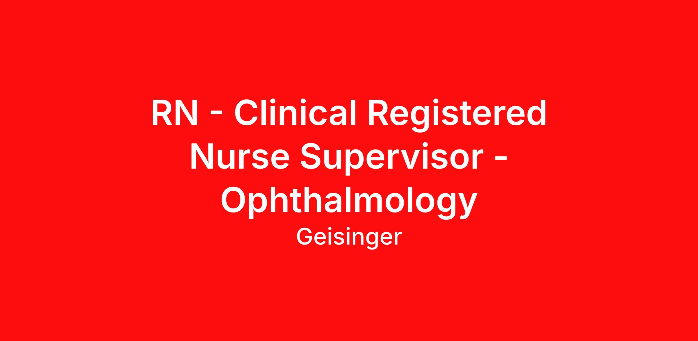 RN - Clinical Registered Nurse Supervisor - Ophthalmology