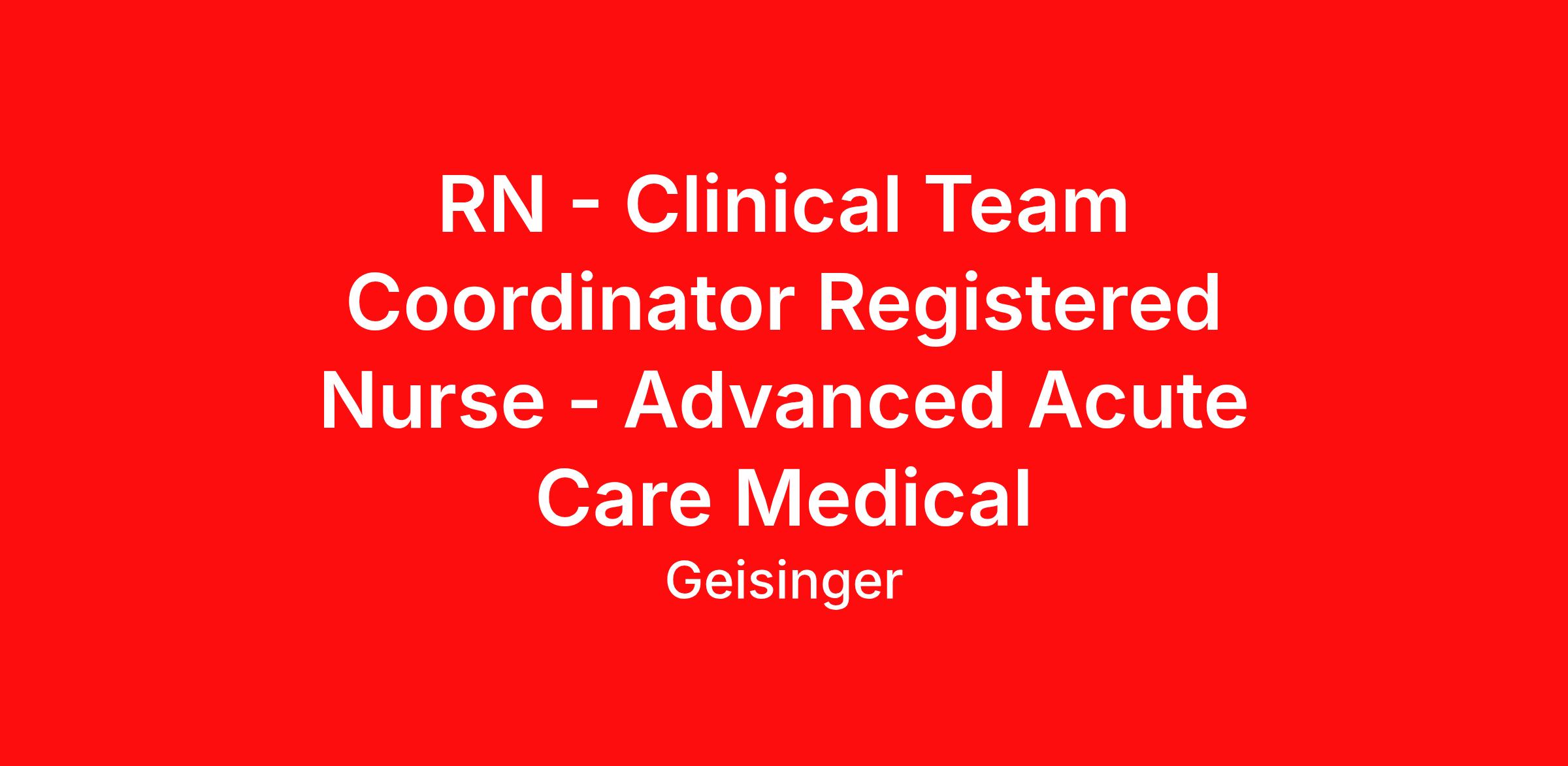 RN - Clinical Team Coordinator Registered Nurse - Advanced Acute Care Medical
