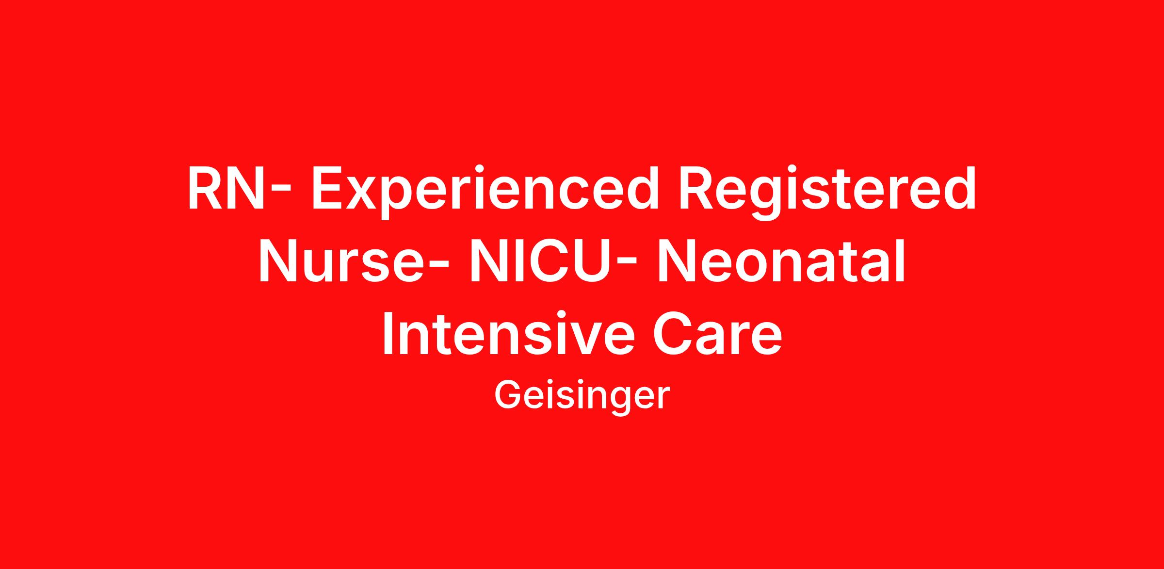 RN- Experienced Registered Nurse- NICU- Neonatal Intensive Care