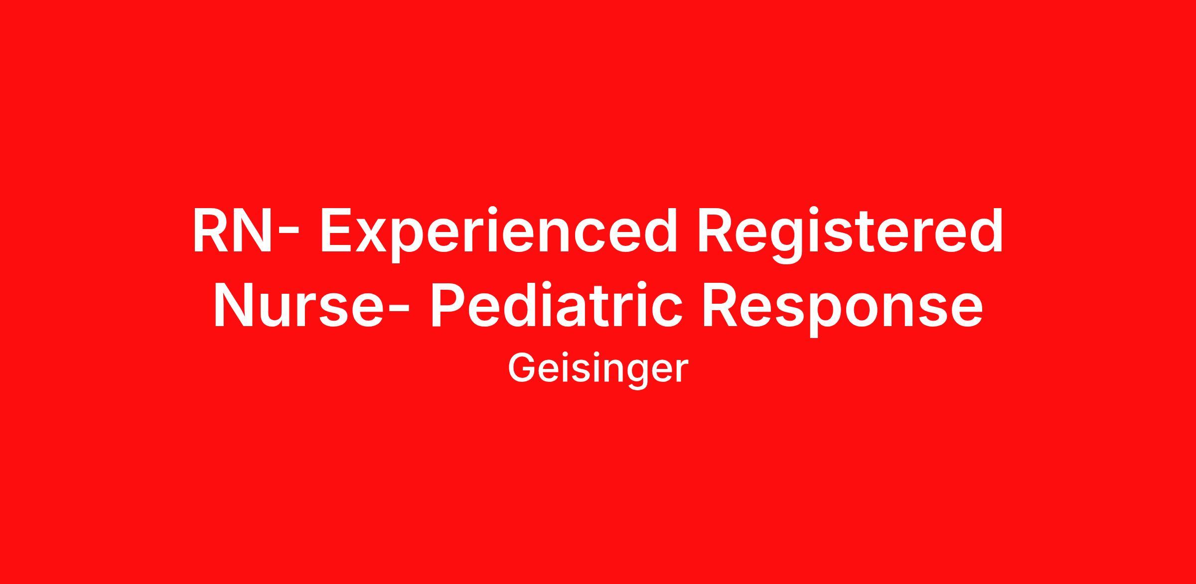 RN- Experienced Registered Nurse- Pediatric Response