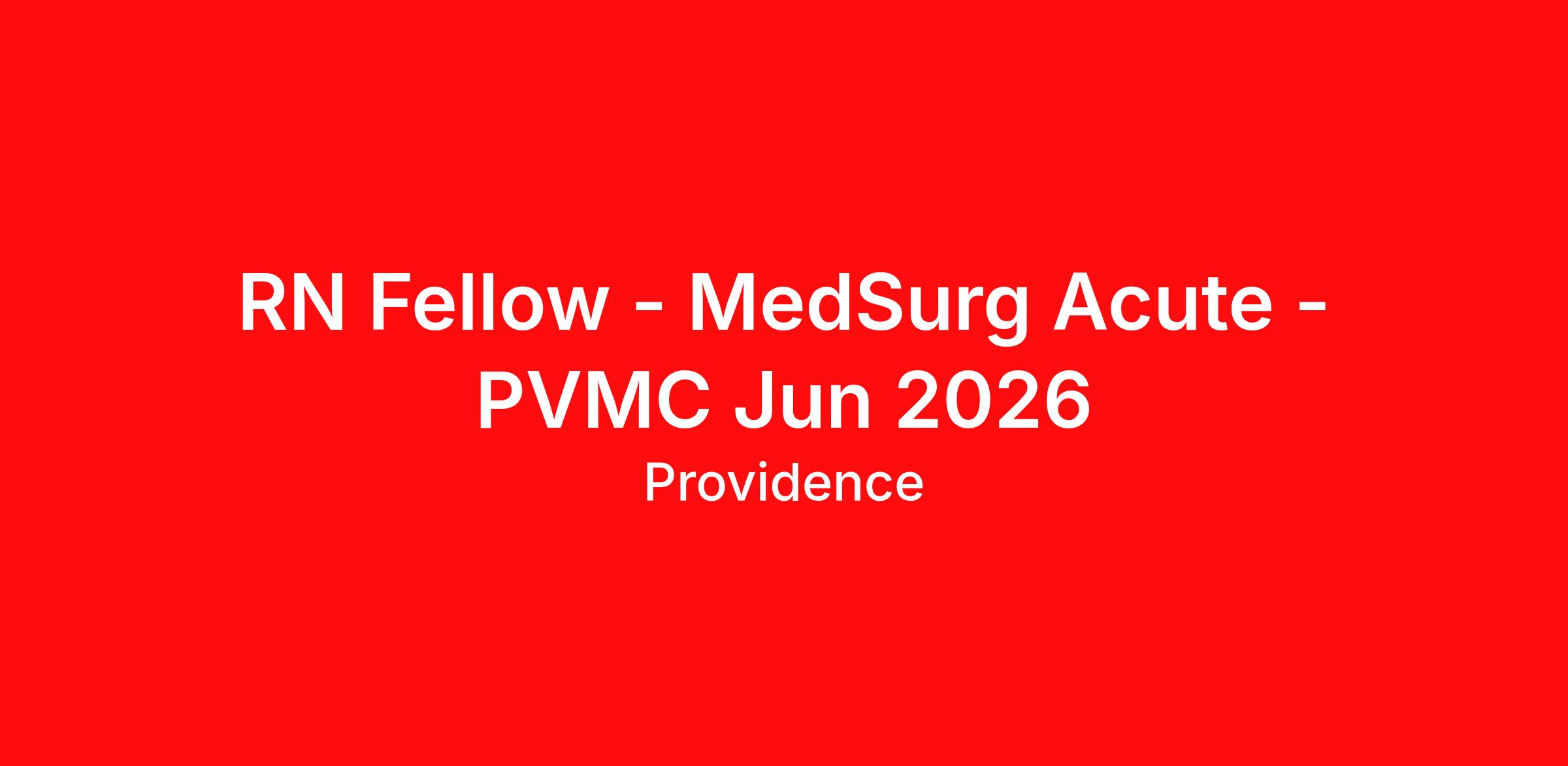 DescriptionProvidence is calling for applications for our June 2026 RN Fellow - MedSurg Acute. An RN Fellow at Providence St. Joseph Health will experience a guided transition into their new specialty through structured curriculum, experienced preceptors and hands-on learning. If you are an RN ready to transition to a new specialty and have more than 12 months of continuous RN work experience, the Providence Clinical Academy is for you. This position starts on June 8, 2026.