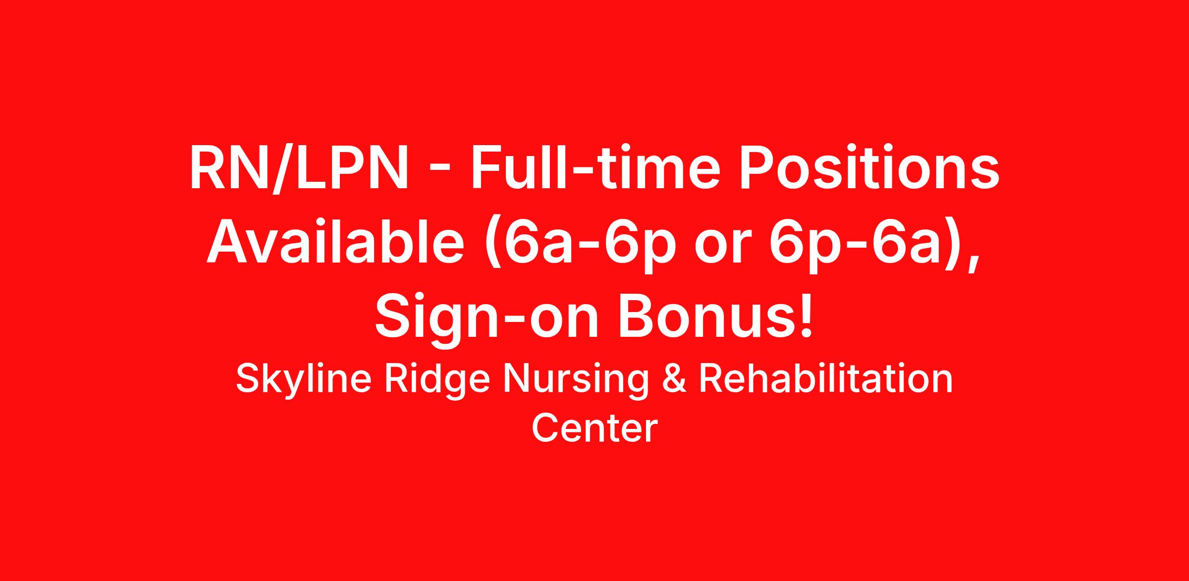 RN/LPN - Full-time Positions Available (6a-6p or 6p-6a), Sign-on Bonus!