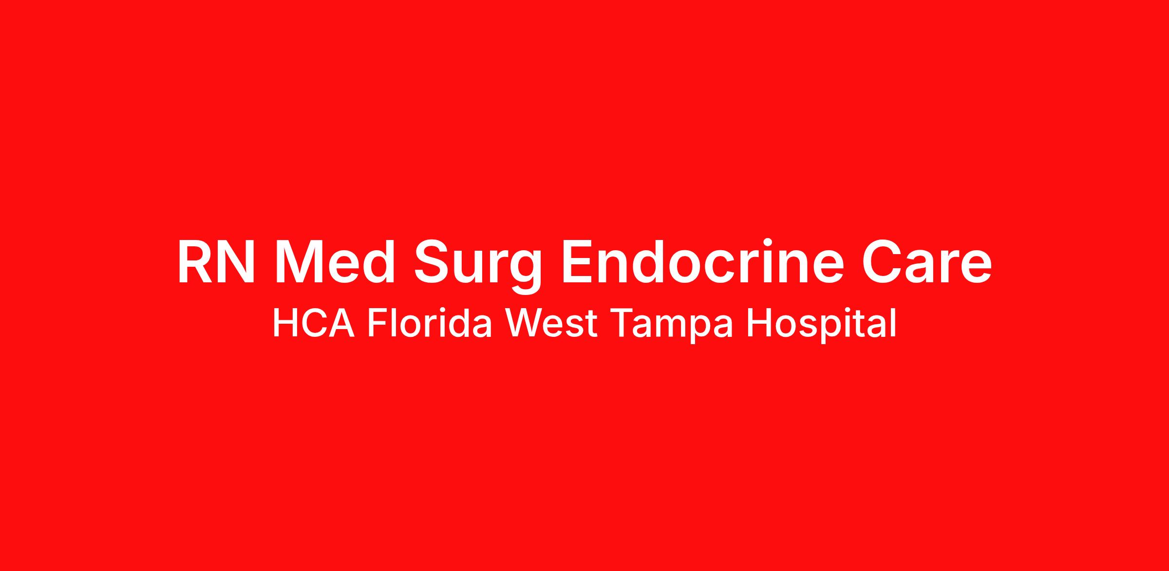 As a RN Med Surg Endocrine Care, your voice to influence patient care is valued and empowered at every turn –whether through open, collaborative relationships with your direct manager or more formal opportunities through hospital councils and national nursing initiatives. You'll help shape decisions that elevate both patient outcomes and the future of nursing. Job Summary and Qualifications We are seeking a Endocrine Care Registered Nurse. You will provide clinical expertise to ensure all patients receive high quality, efficient care in a medical surgical environment. We are an amazing team that works hard to support each other and are seeking a phenomenal addition like you who feels patient care is as meaningful as we do. We want you to apply now. What you will do in this role: You will assess, plan, intervene and evaluate the care of Med/Surg patients. You will instruct patients and families regarding medications and treatment instructions. You will maintain and review patients’ records including posting tests and examination results. You will administer medications in accordance with physician orders. What qualifications you will need: Must be licensed as a Florida Registered Nurse in accordance with state regulations or appropriate compact licensure. If compact license held, active FL RN license required within 60 days of hire. Nursing Diploma or ASN required; BSN preferred. Previous experience in an acute care setting strongly preferred. Current American Heart Association BLS (Basic Life Support) certification required. Critical thinking, service excellence and good interpersonal communication skills, ability to read/comprehend written instructions, ability to follow verbal instructions, PC skills. Benefits HCA Florida West Tampa Hospital, offers a total rewards package that supports the health, life, career and retirement of our colleagues. The available plans and programs include: Comprehensive benefits for medical, prescription drug, dental, vision, behavioral health and telemedicine services Wellbeing support, including free counseling and referral services Time away from work programs for paid time off, paid family leave, long- and short-term disability coverage and leaves of absence Savings and retirement resources , including a 401(k) Plan with a 100% match on 3% to 9% of pay (based on years of service), Employee Stock Purchase Plan, flexible spending accounts, preferred banking partnerships, retirement readiness tools, rollover support and financial wellbeing counseling Education support through tuition assistance, student loan assistance, certification support, dependent scholarships and a partnership with Galen College of Nursing Additional benefits for fertility and family building, adoption assistance, life insurance, supplemental health protection plans, auto and home insurance, legal counseling, identity theft protection and consumer discounts Learn more about Employee Benefits Note: Eligibility for benefits may vary by location. "Nurses play a pivotal role and are the backbone of healthcare delivery. At HCA Healthcare, we are dedicated to ensuring nurses have necessary tools and resources to provide world-class patient care, advocating for the profession and helping to shape the future of nursing." Sammie Mosier, DHA, MA, BSN, NE-BC Senior Vice President and Chief Nursing Executive, HCA Healthcare For over 40 years, HCA Florida South Tampa Hospital has been providing comprehensive healthcare services. We provide high-quality medical care. We also provide surgery, outpatient therapies, and acute care. With a team of skilled colleagues, it’s no wonder we have a reputation for excellence. The over 180-bed acute care hospital is accredited by the Joint Commission. We provide 24-hour Emergency Care, Behavioral Healthcare, and Cardiovascular Services. We also provide General Surgery and Imaging & Diagnostic Services. As South Tampa Hospital and ER, we provide high quality, advanced care. We are one of the best-performing hospitals in the Tampa Bay area. We believe excellent people make excellence happen. If this sounds like the type of meaningful work you’d like to be a part of, we hope you’ll consider our careers at South Tampa Hospital. HCA Healthcare has been named one of the World’s Most Ethical Companies by Ethisphere Institute for ten consecutive years (2010-2019). In 2019, HCA Healthcare spent an estimated $3.7 billion in cost for the delivery of charitable care, uninsured discounts, and other uncompensated expenses. If this opportunity is your next step in your career path, we encourage you to apply for our RN Med Surg Endocrine Care opening. We review all applications. Qualified candidates will be contacted by a member of our team. We are interviewing, apply today! We are an equal opportunity employer. We do not discriminate on the basis of race, religion, color, national origin, gender, sexual orientation, age, marital status, veteran status, or disability status.