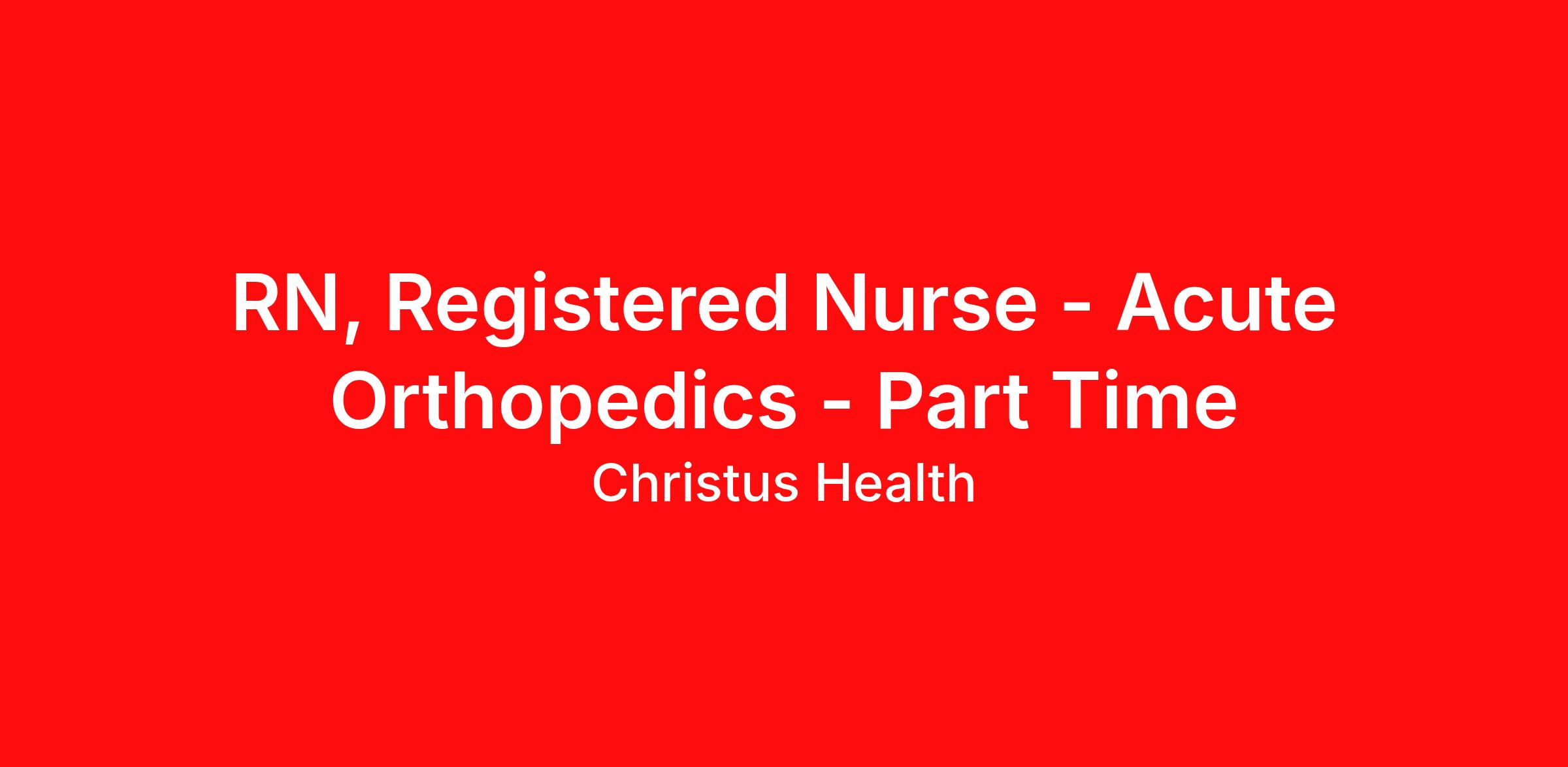 RN, Registered Nurse - Acute Orthopedics - Part Time