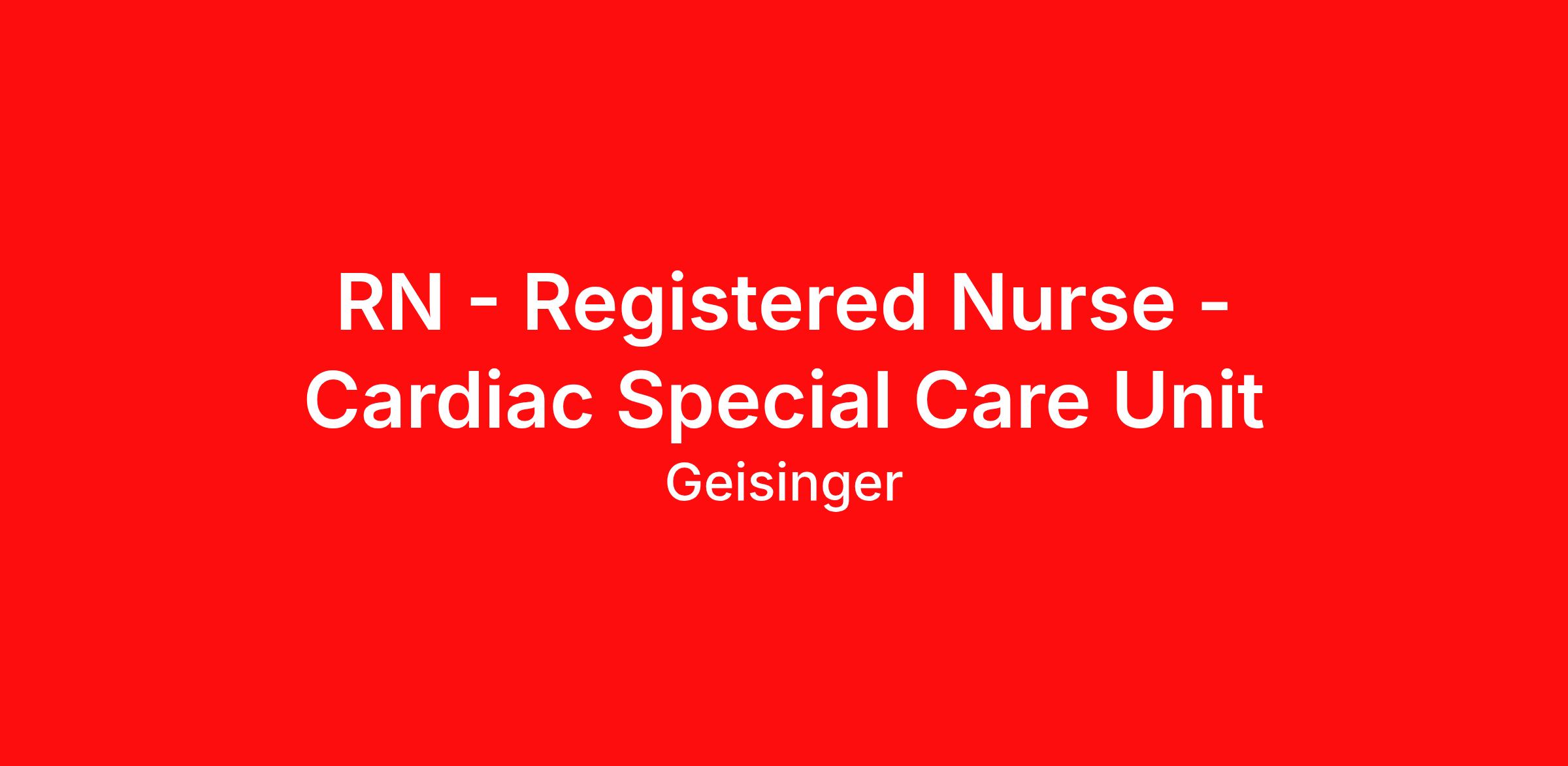 RN - Registered Nurse - Cardiac Special Care Unit