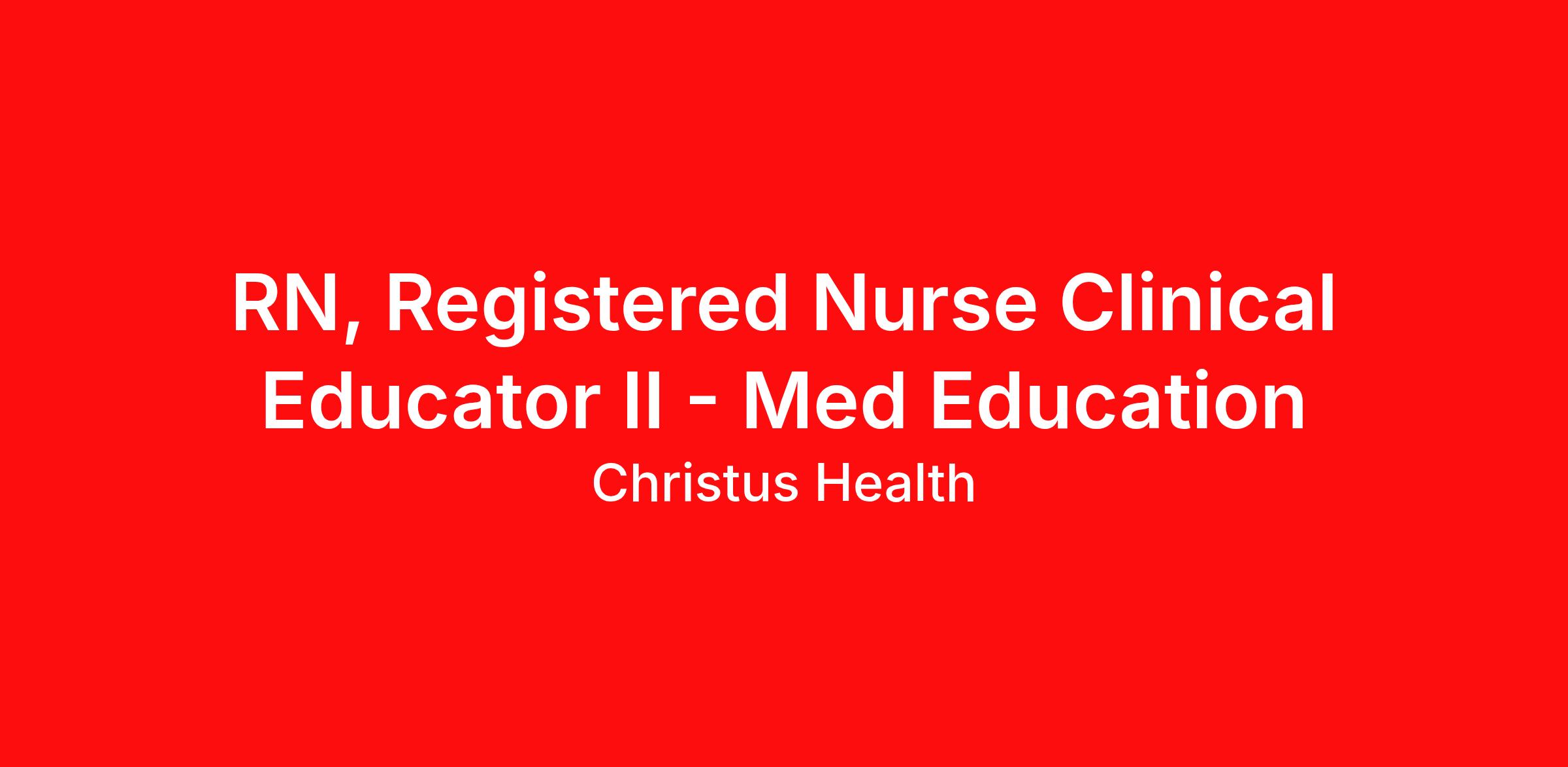 Description Summary: The Clinical Educator II plays a vital role in advancing clinical excellence through the design, delivery, and evaluation of clinical education and competency development. This role leads and supports onboarding, orientation, and ongoing professional development for clinical staff across diverse specialties. The educator applies adult learning principles, evidence-based practices, and innovative modalities - including simulation, eLearning, and microlearning - to foster a culture of continuous learning and clinical proficiency. The Clinical Educator II collaborates with clinical teams to ensure education initiatives meet regulatory standards, support safe patient care, and align with organizational goals. Serves as a subject matter expert and mentor to Clinical Educator I and other staff. Participates in and supports the strategic planning and quality improvement efforts of the education team. Responsibilities: Meets expectations of the applicable OneCHRISTUS Competencies: Leader of Self, Leader of Others, or Leader of Leaders. Conducts learning needs assessments to identify gaps in clinical knowledge, skills, and practice. Designs, develops, and leads education programs using contemporary teaching strategies and technologies. Facilitates onboarding and orientation for new clinical staff, ensuring smooth integration into practice environments. Coordinates and validate clinical competencies for new hires and existing staff, including annual skills assessments and regulatory requirements. Integrates simulation-based learning, case-based scenarios, and hands-on training to enhance clinical decision-making and critical thinking. Serves as a resource and mentor for preceptors, supporting their development and effectiveness in staff training. Promotes evidence-based practice and support staff in translating research into clinical application. Collaborates with interdisciplinary teams to support interprofessional education and shared learning experiences. Maintains documentation of educational activities, competency validations, and outcomes for compliance and quality improvement. Participates in committees and initiatives focused on clinical education, safety, and performance improvement. Evaluates program effectiveness and implements improvements. Serves as a resource for evidence-based practice and clinical standards. Responsible for other related duties as assigned. Job Requirements: Education/Skills Bachelor's of Science in Nursing (BSN) required; current enrollment considered with an expectation of completion within a defined timeframe Knowledge of adult learning principles, instructional design, and technology-enhanced learning tools (simulation, LMS, eLearning platforms) Experience 2 years of clinical experience required Experience in education, preceptorship, or staff development preferred Licenses, Registrations, or Certifications RN licensure in the state of employment or compact required ANCC Nursing Professional Development Certification (NPD-BC) preferred BLS required within 30 days of hire In accordance with the CHRISTUS Health License, Certification and Registration Verification Policy, all Associates are required to obtain the required certifications for their respective positions within the designated time frame. Work Schedule: MULTIPLE SHIFTS AVAILABLE Work Type: Full Time